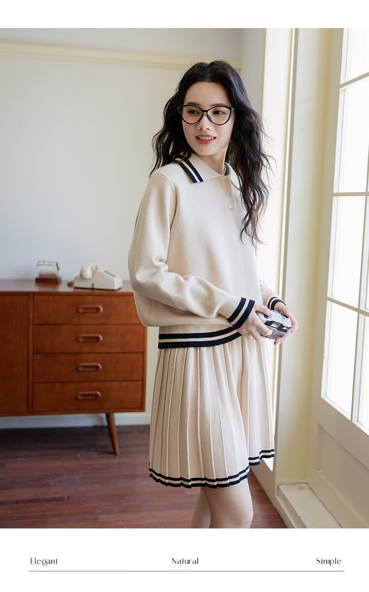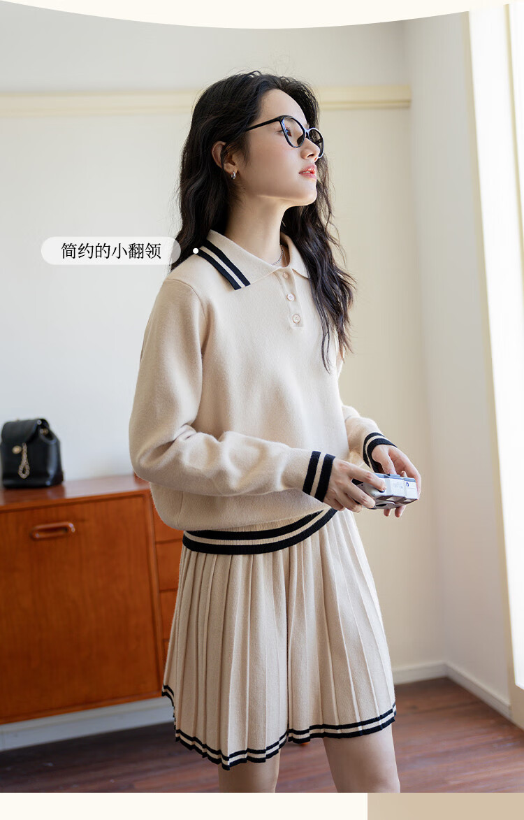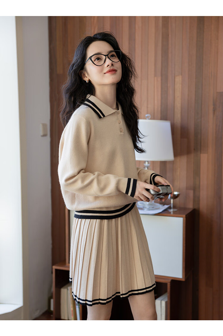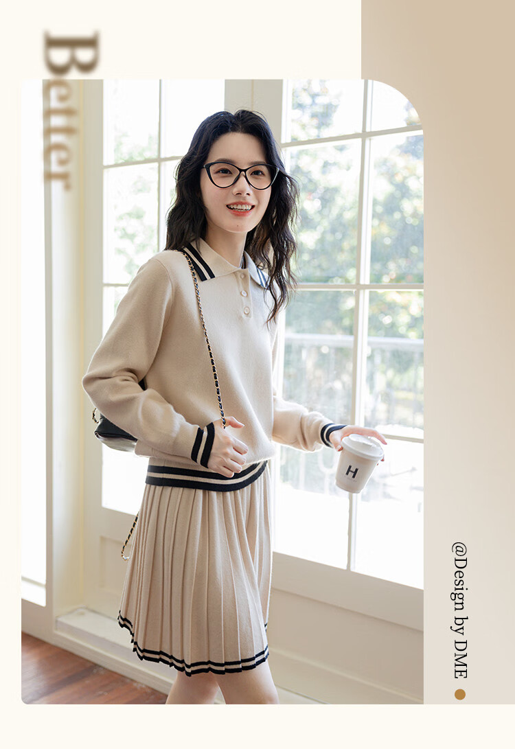 Demana campus retro style college style age-reducing short skirt two-piece lapel slim casual striped knitted suit for women