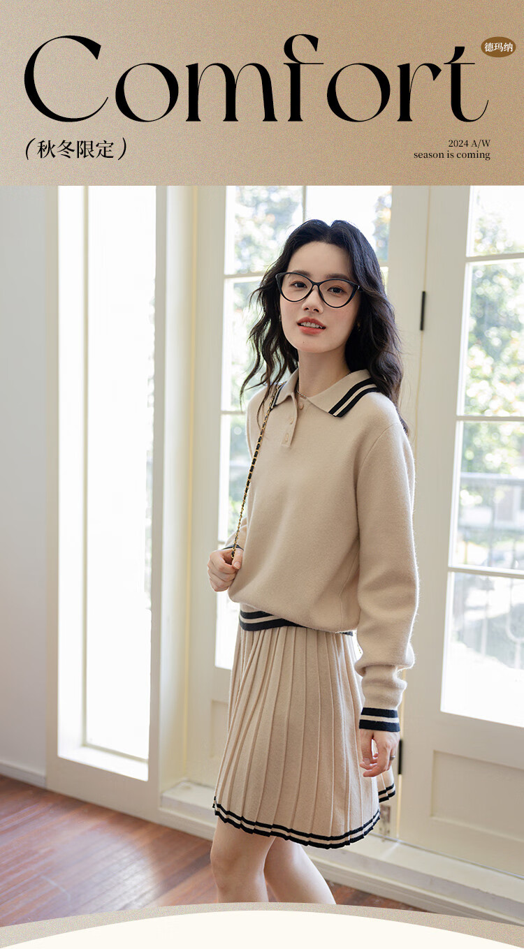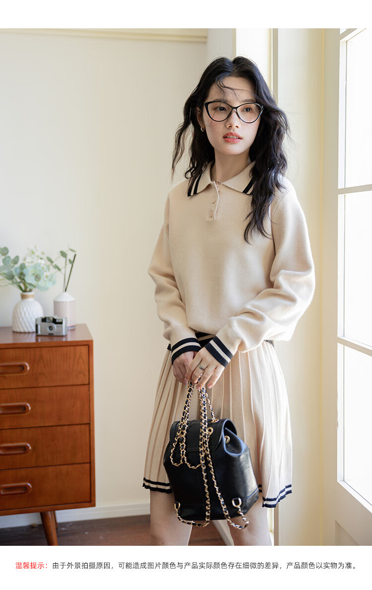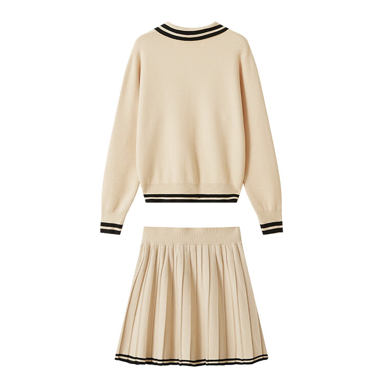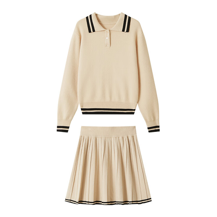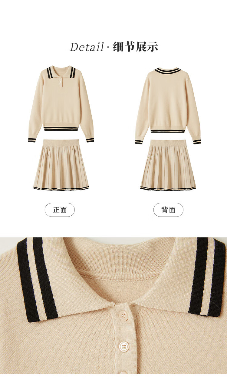 Demana campus retro style college style age-reducing short skirt two-piece lapel slim casual striped knitted suit for women