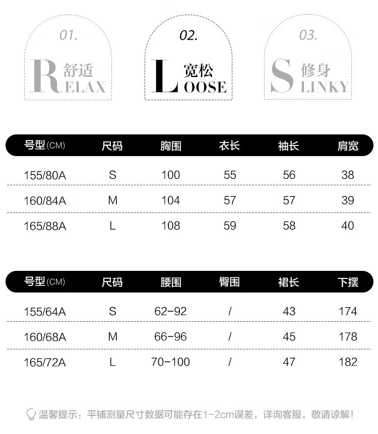 China (cm) 160-165/84-86 165-170 / 88-90 167-172 / 92-96 168-173 / 98-102 170-176 / 106-110