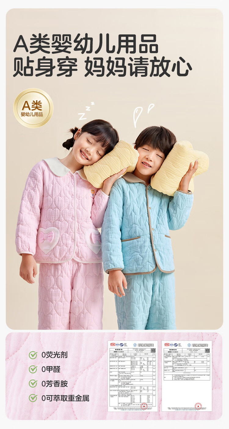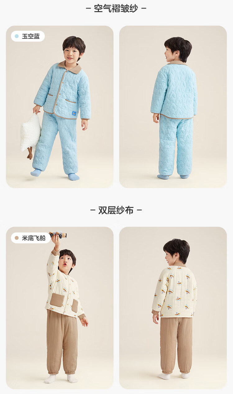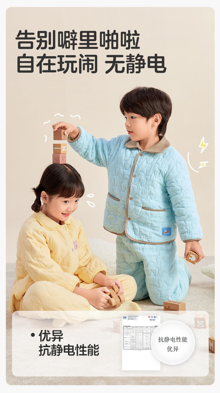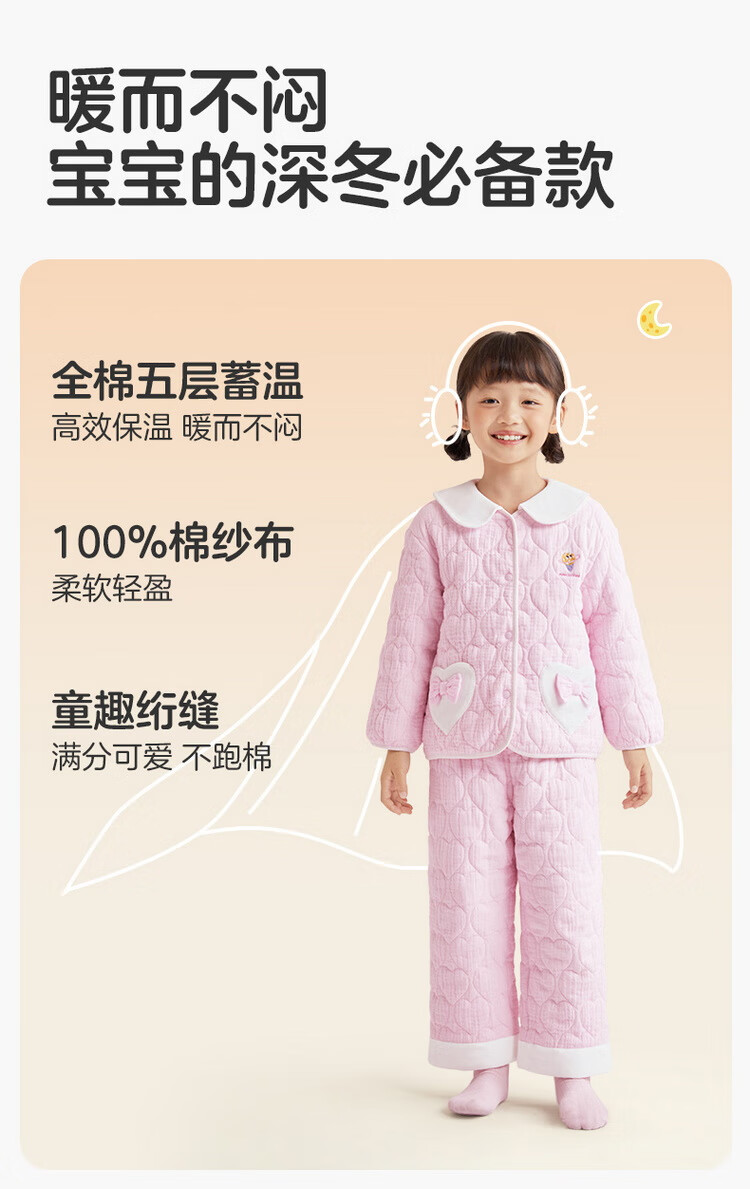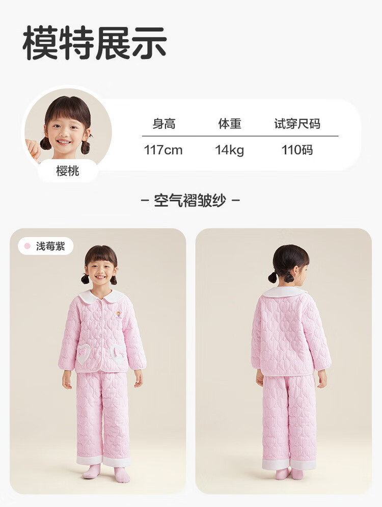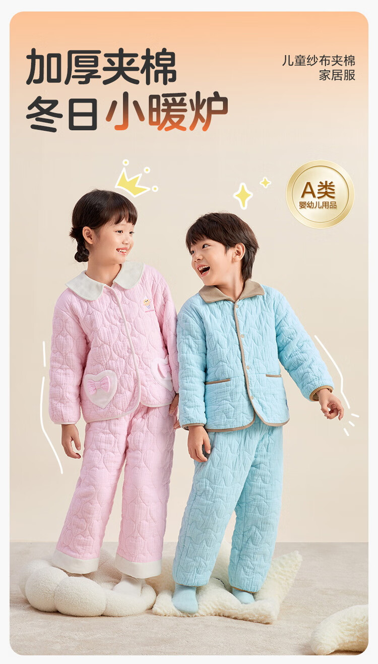 Cotton era 24 autumn and winter new children's warm home set air pleated yarn quilted thickened warm but not stuffy Category A