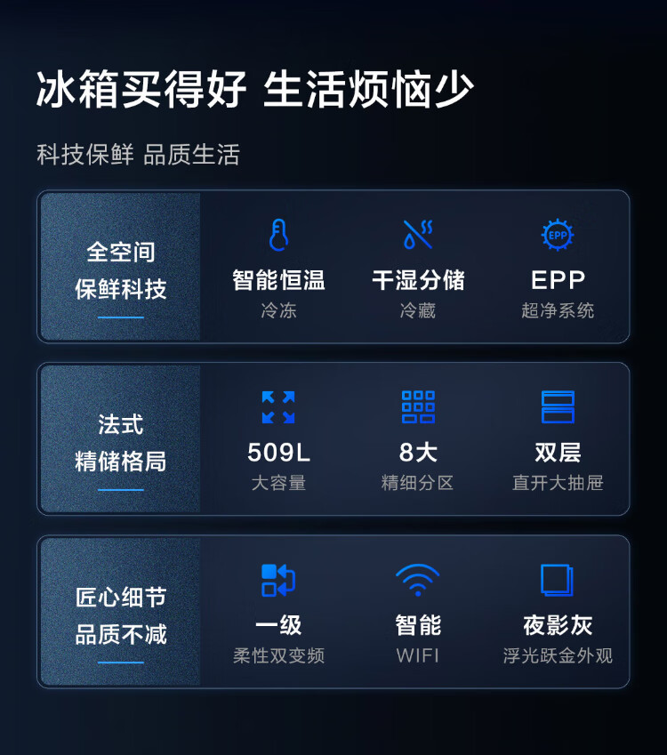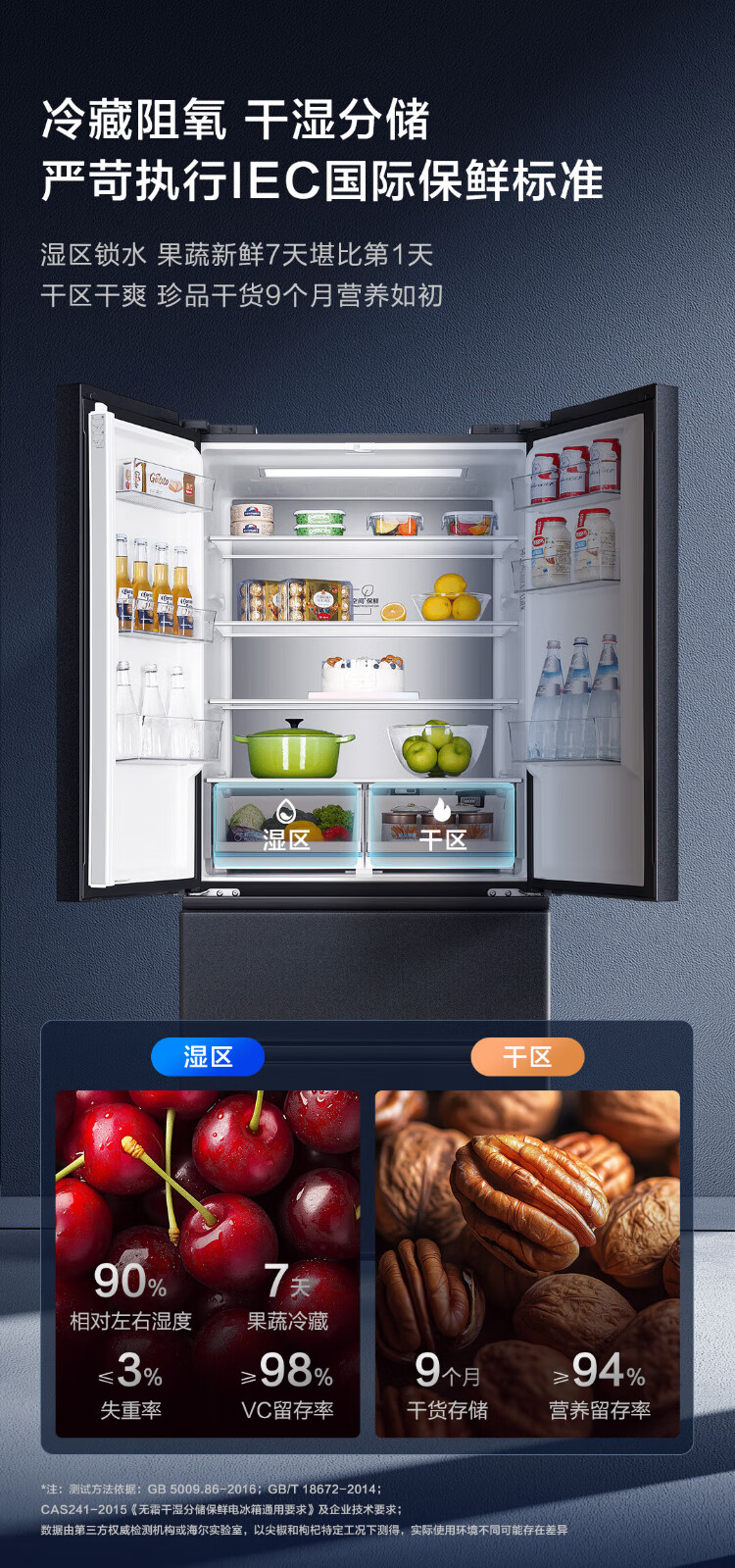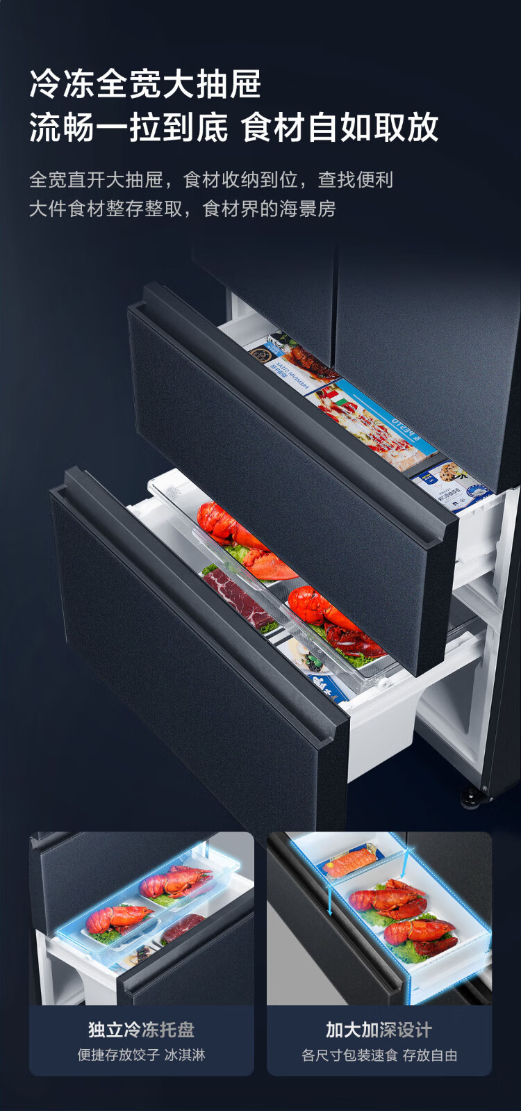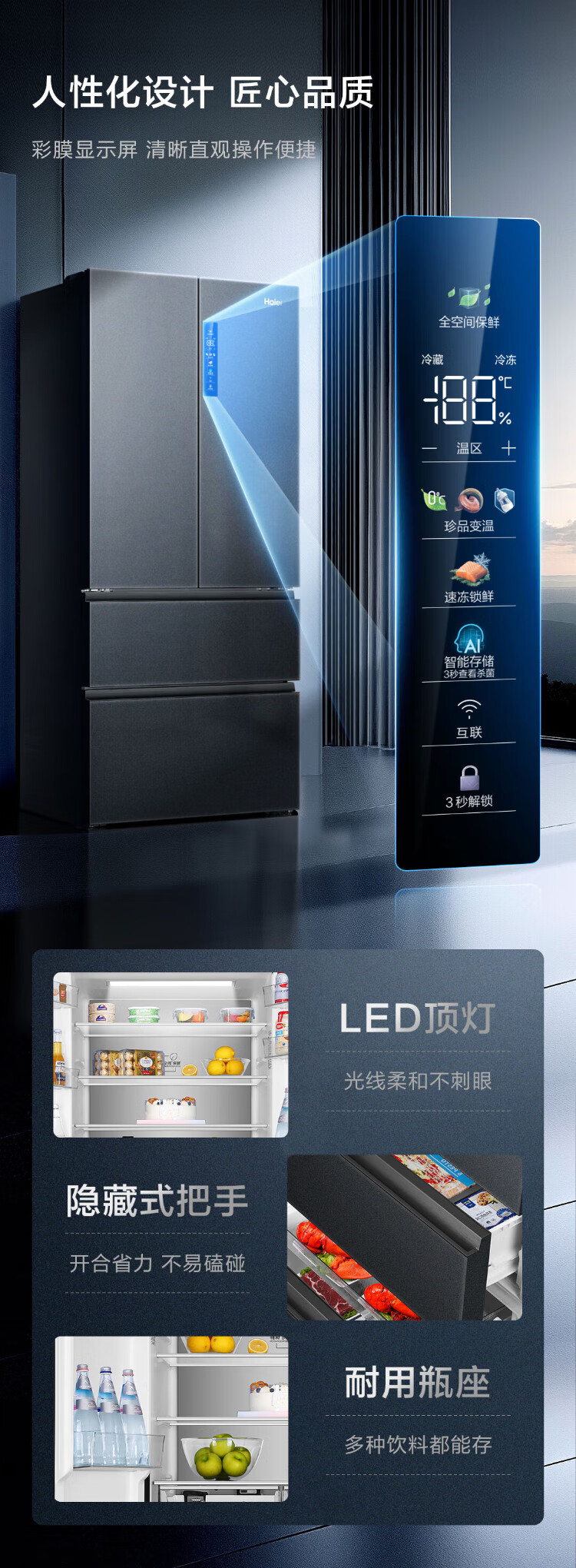Haier Family Banquet 509-liter full-space fresh-keeping French multi-door four-door refrigerator household air-cooled frost-free first-class energy efficiency frequency conversion BCD-509WGHFD19X8U1 20% national subsidy