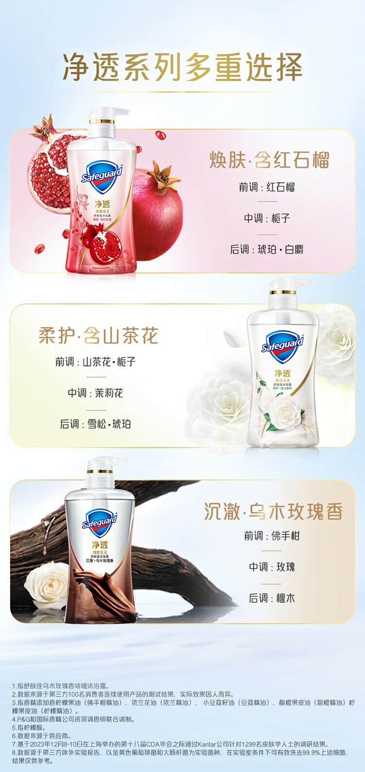 Safeguard Clarifying Shower Gel Red Pomegranate 570g + Ebony Rose 570g Long lasting fragrance Same style as Wang Chuqin