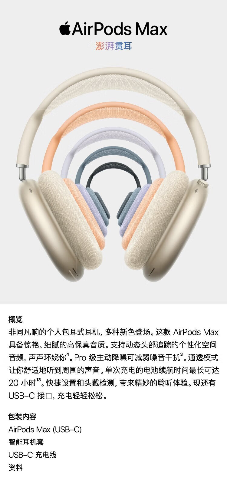 Apple/Apple AirPods Max (USB-C) Starlight Color Wireless Bluetooth Headphones Active Noise Canceling Headphones Headphones
