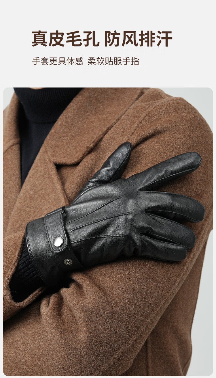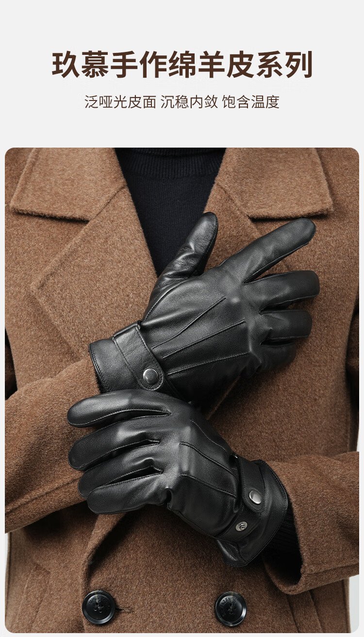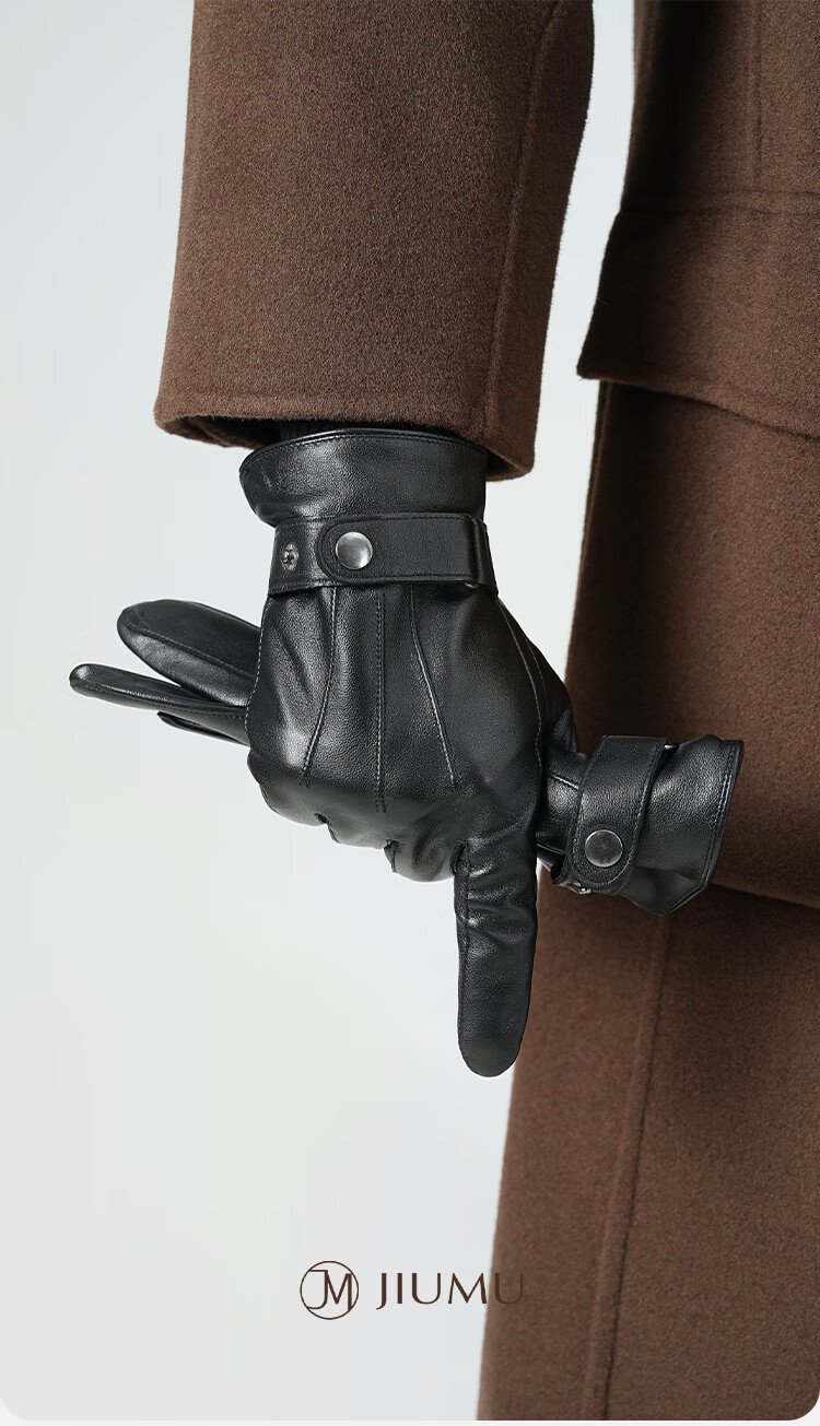 JIUMU sheepskin warm leather gloves men's winter velvet outdoor driving and riding motorcycle windproof and cold-proof gloves