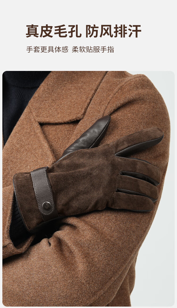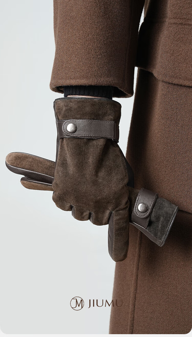 JIUMU warm leather gloves men's autumn and winter windproof and coldproof plus velvet riding and driving electric motorcycle and bicycle touch screen gloves