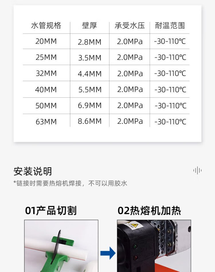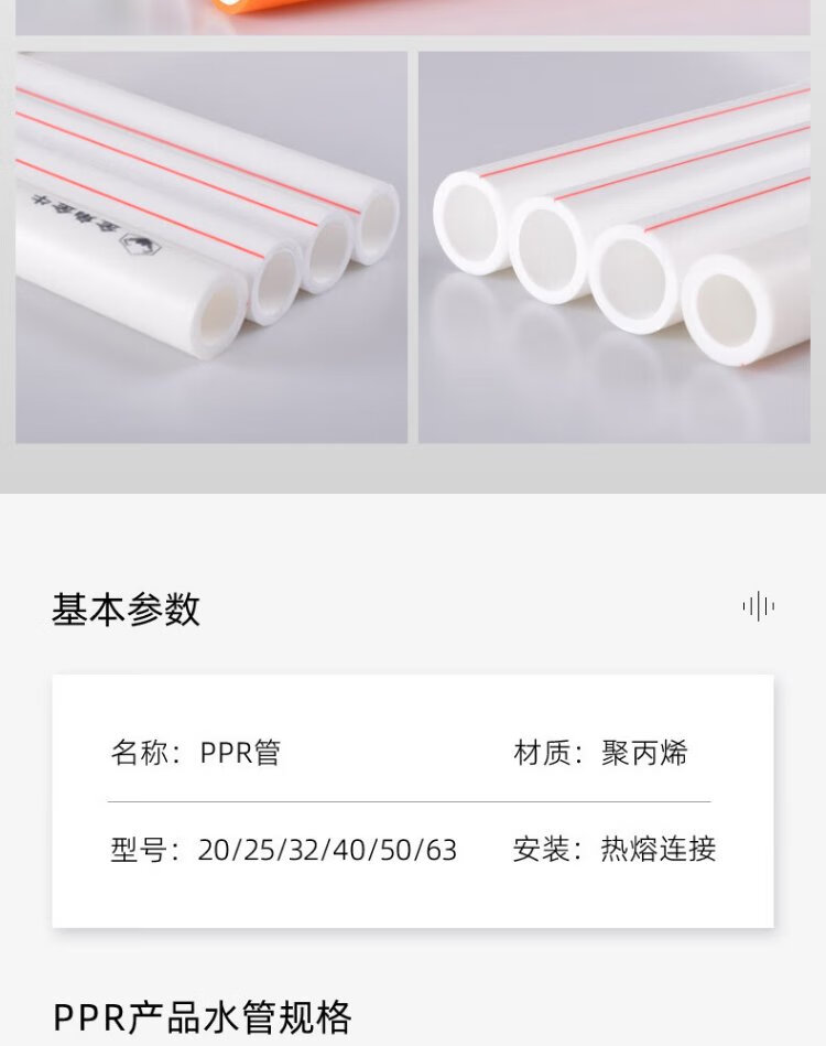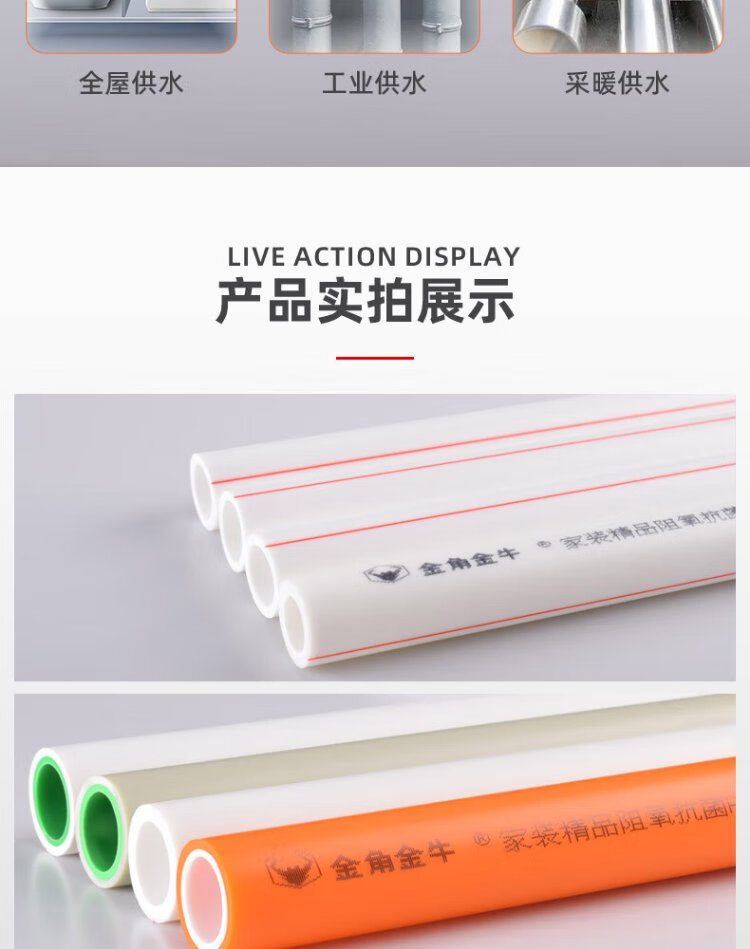 Golden Horn Taurus PPR water pipe hot melt pipe 4 points hot water pipe 20x2.8MM white 10 meters (2 meters / root x 5)