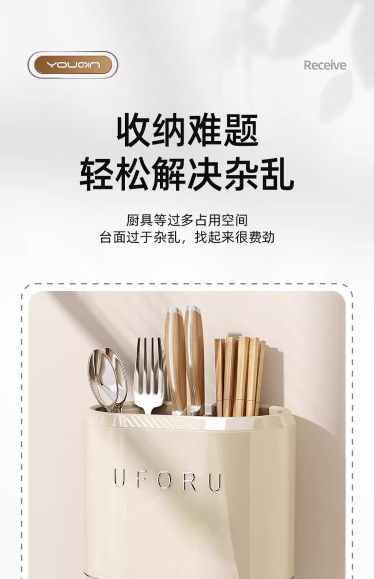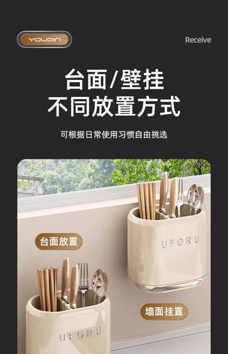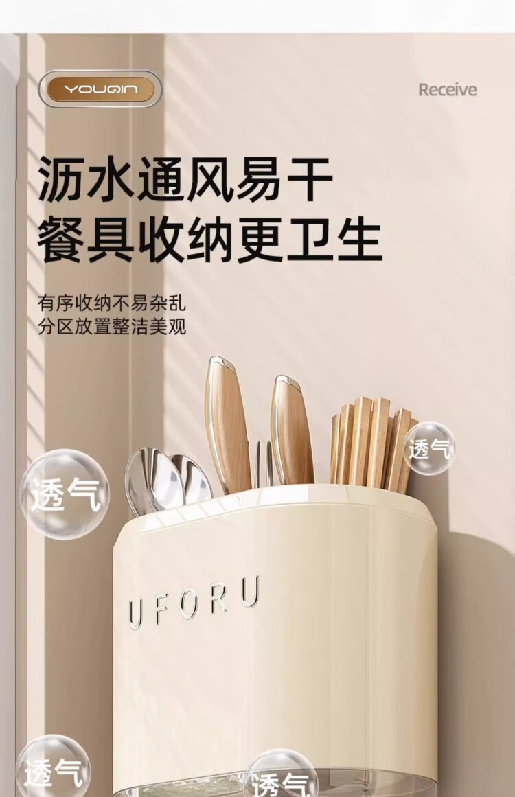 MUYA chopstick storage box wall-mounted kitchen storage rack without punching knife holder chopstick cage integrated storage hanging shelf