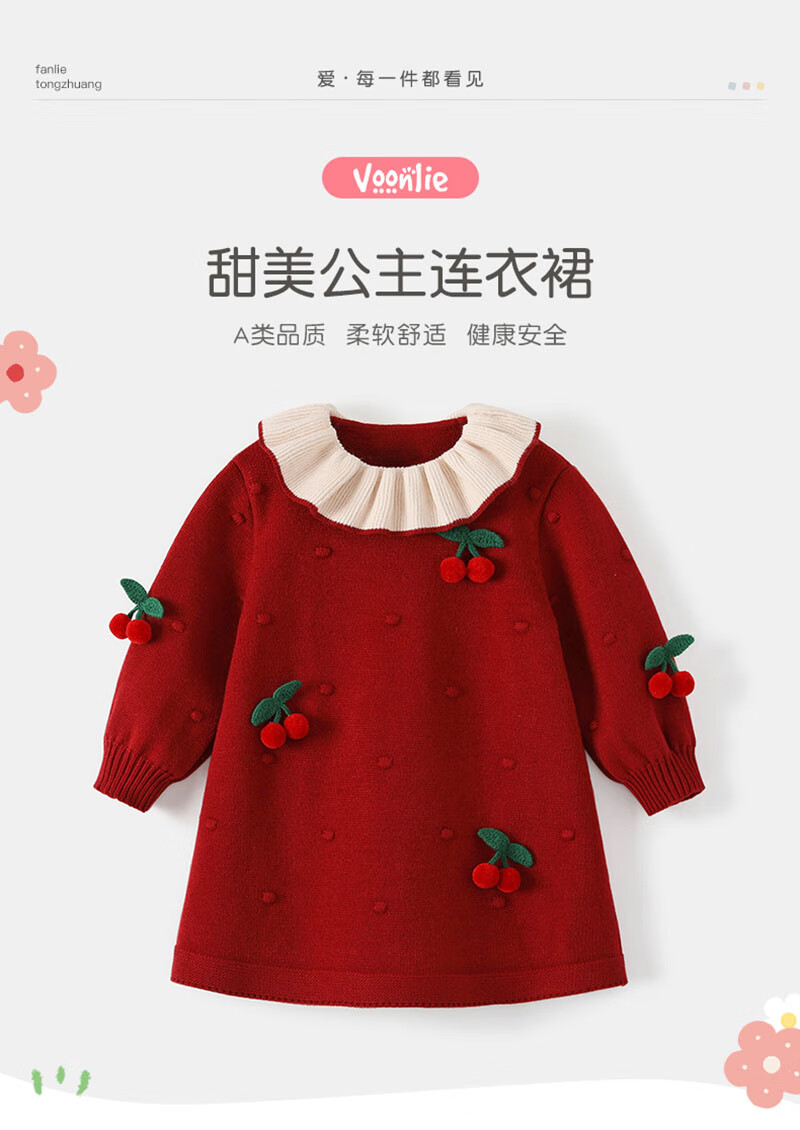 Fanhunting girls' dress, autumn and winter style children's princess dress, little girl's baby's one-year-old dress birthday, New Year's greetings