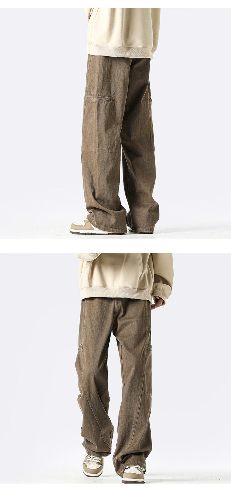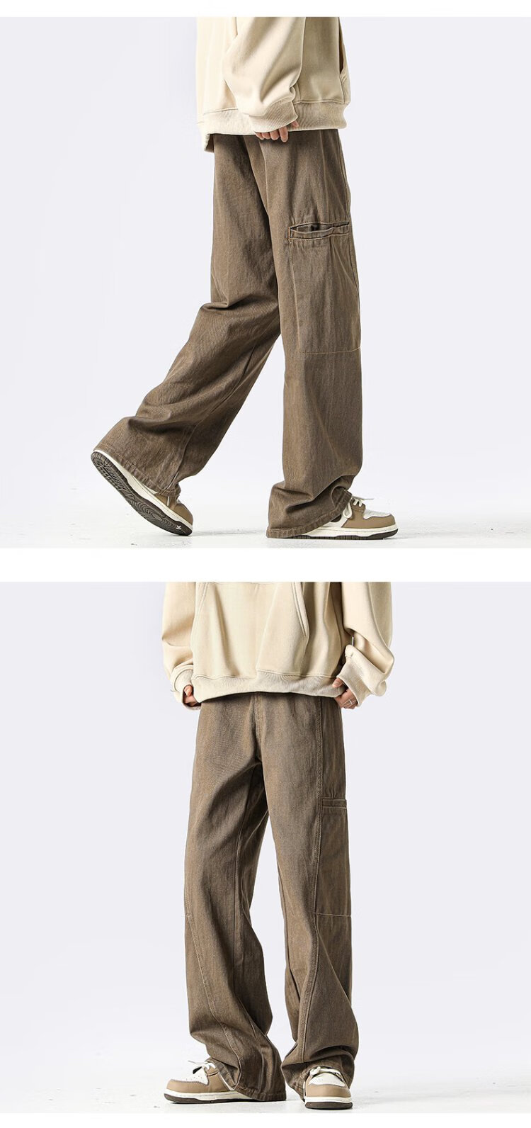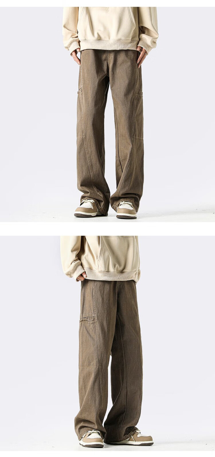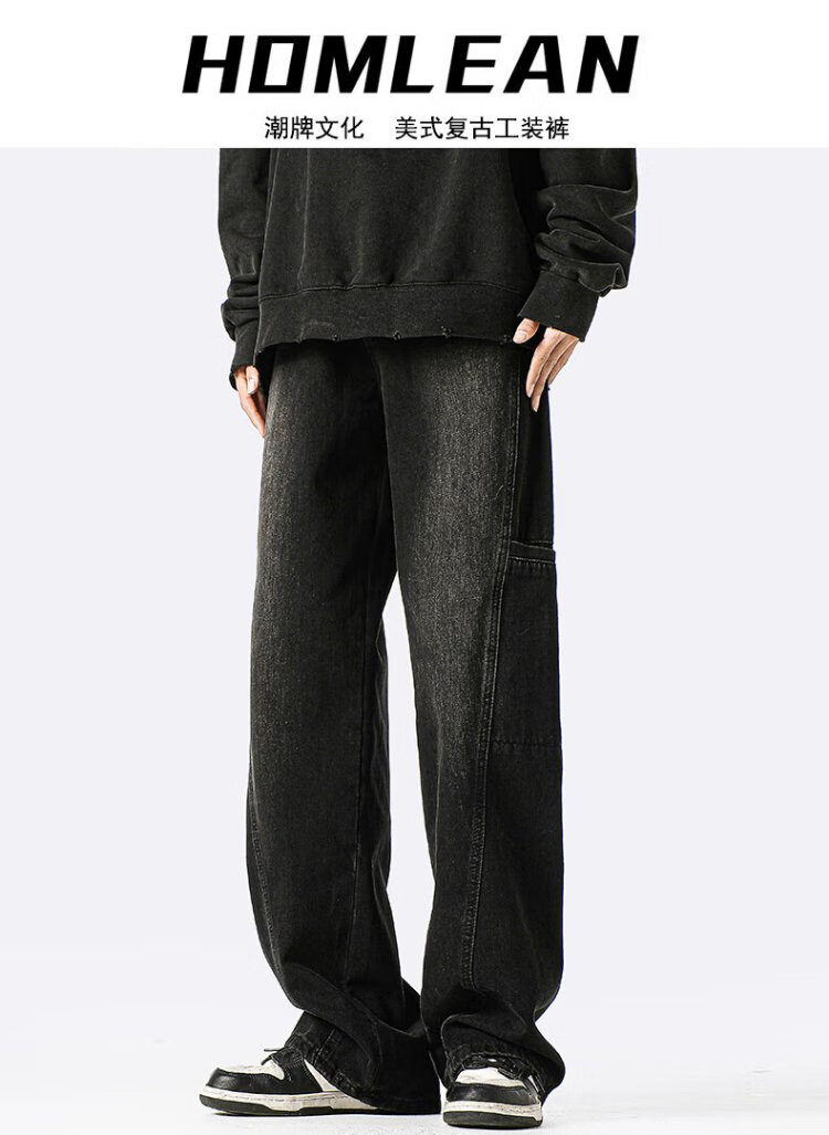 Homlean American jeans men's autumn niche fashion brand street loose casual workwear long pants LB03 coffee color XL