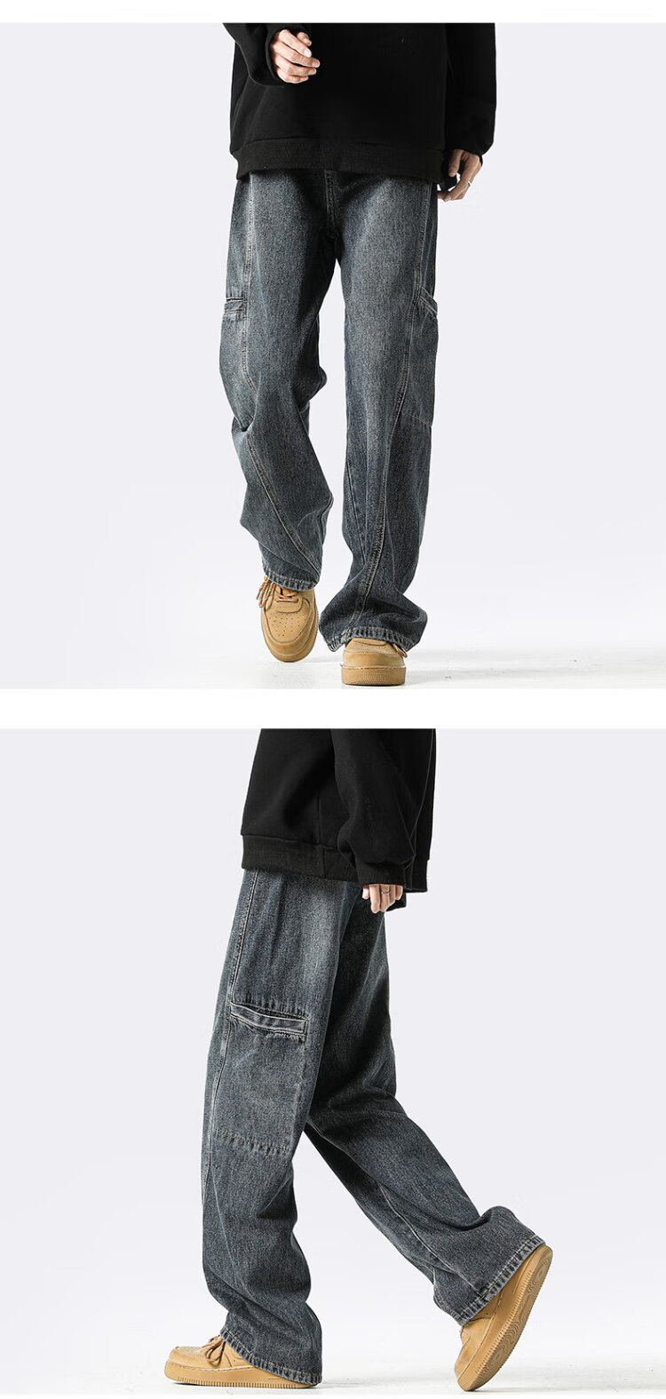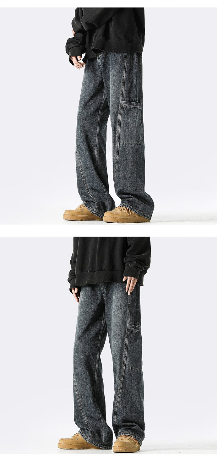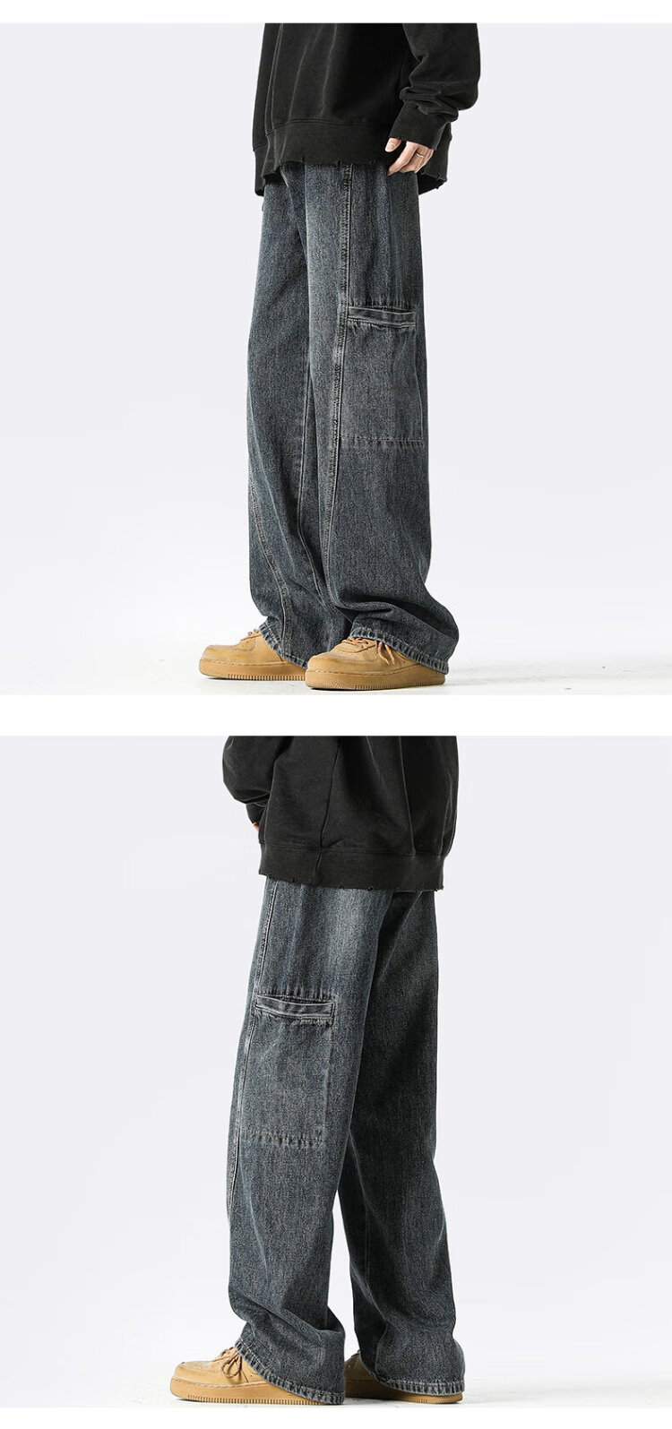 Homlean American jeans men's autumn niche fashion brand street loose casual workwear long pants LB03 coffee color XL