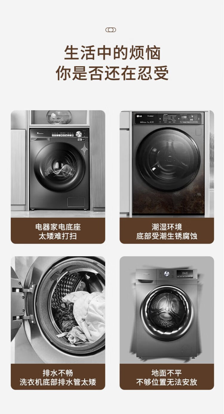 Jiangwutong washing machine base refrigerator base pulsator drum washing machine base heightening bracket anti-slip shock absorption suitable for Midea Little Swan Hisense heightening bracket