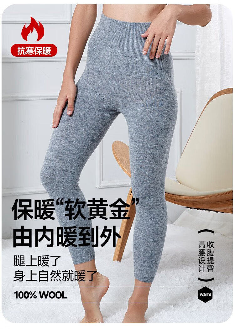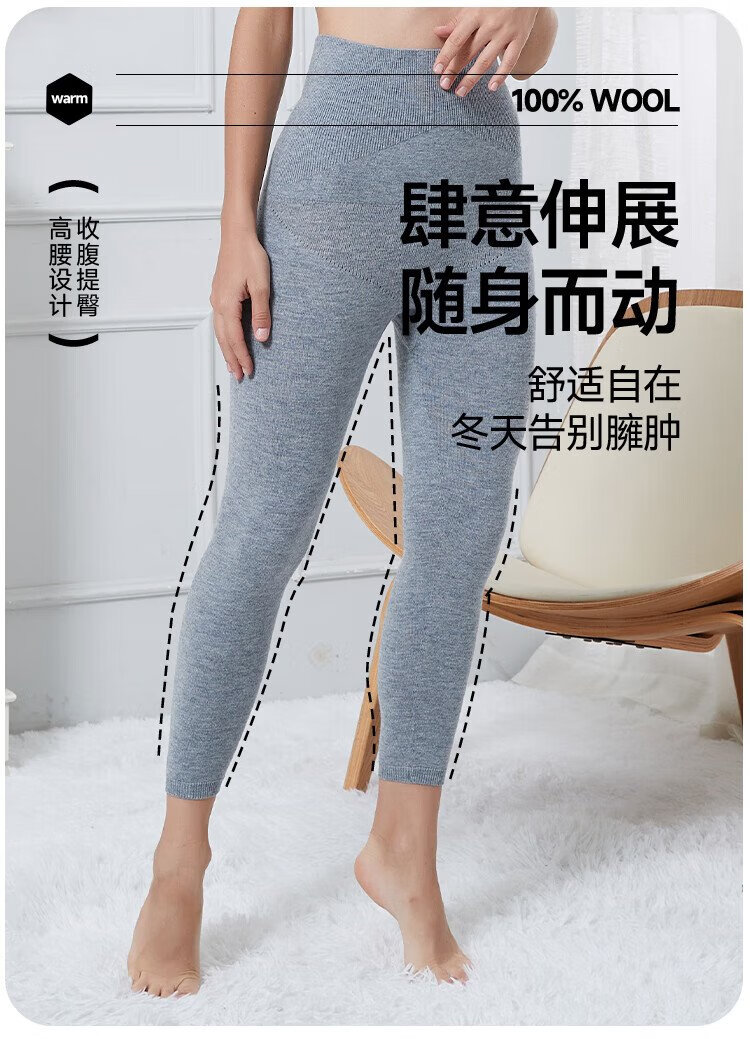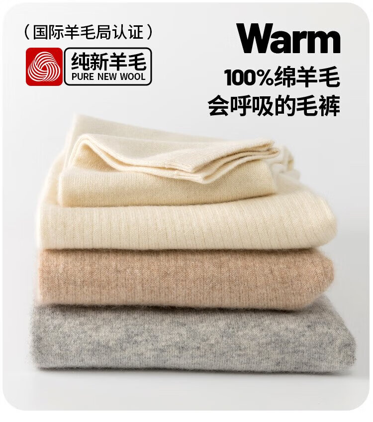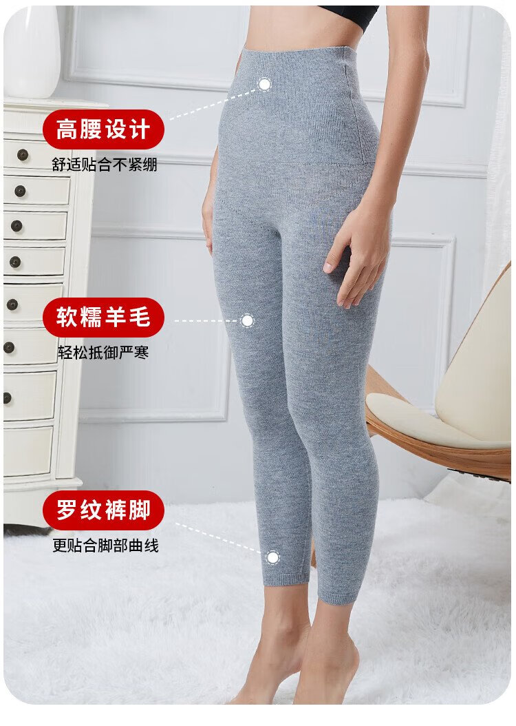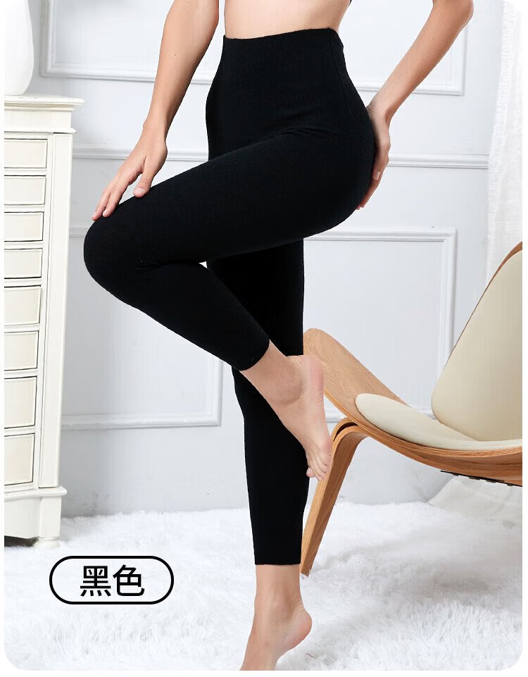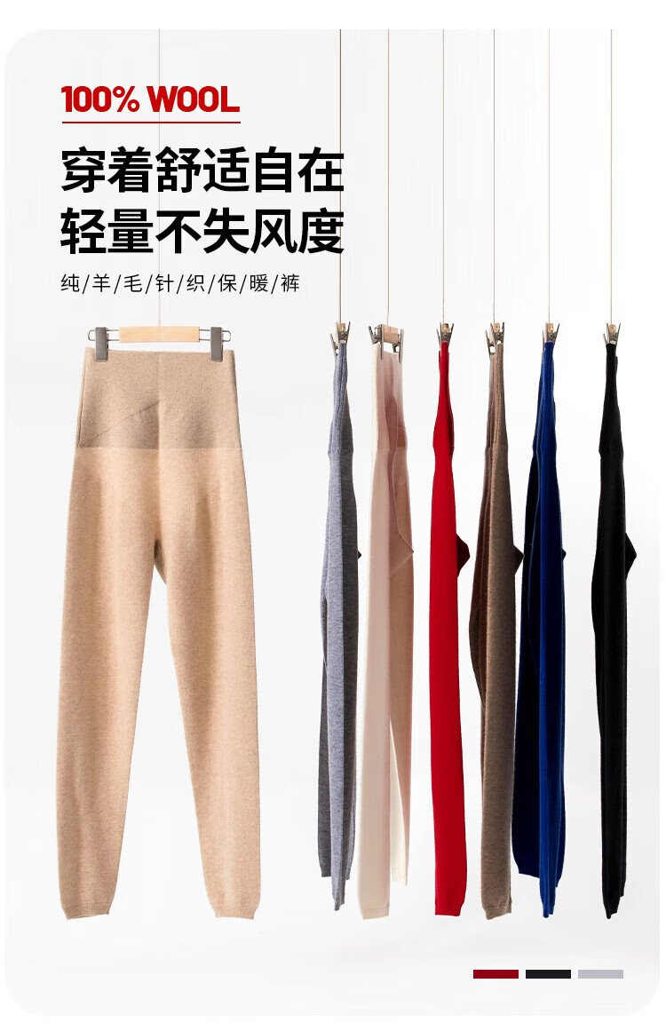 Hengyuanxiang high-waisted belly-slimming butt-lifting 100% wool pants for women pure wool knitted pants autumn and winter warm pants black 170