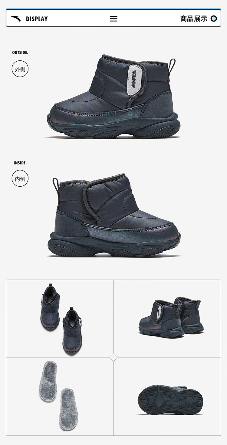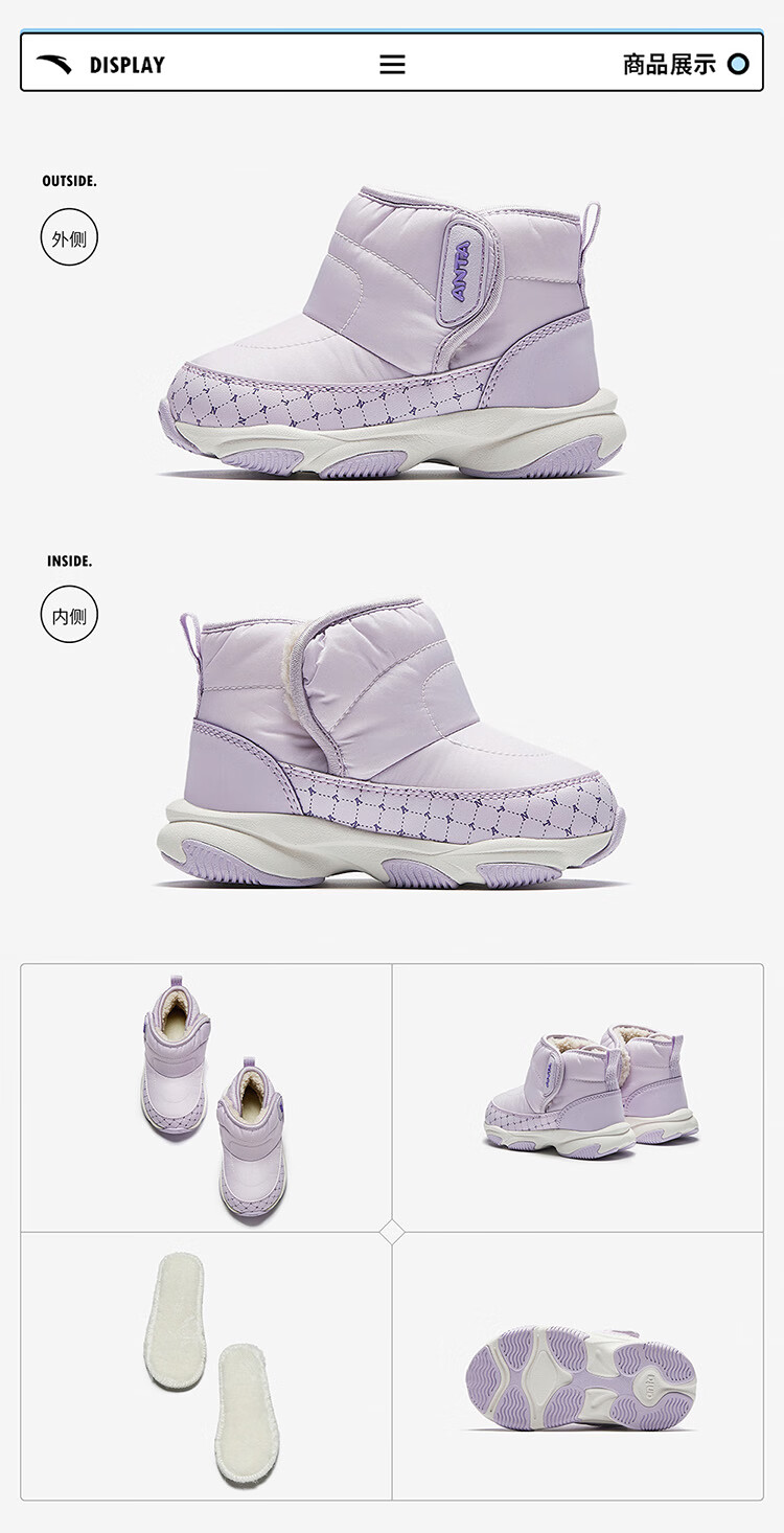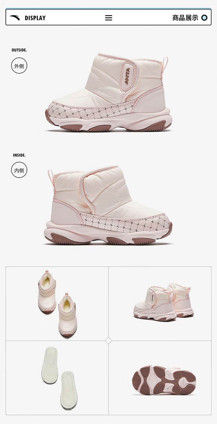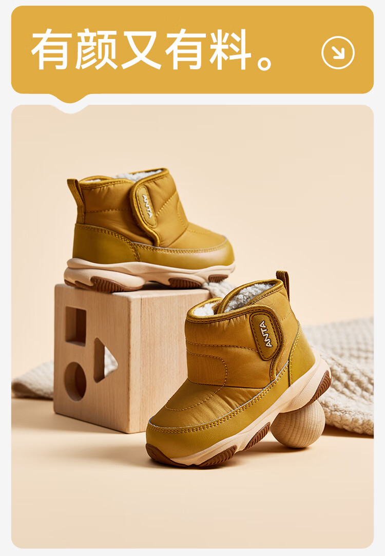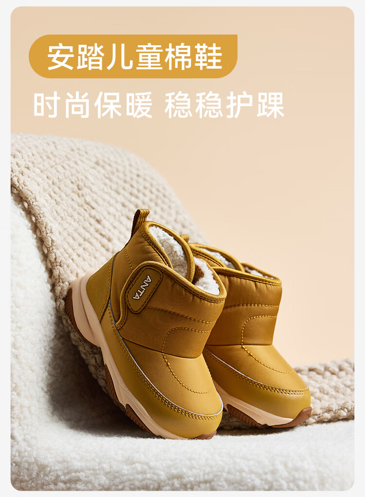ANTA children's boys and girls infant cotton shoes warm boots to keep out the cold infants and toddlers plus velvet high-top cotton shoes A22440057