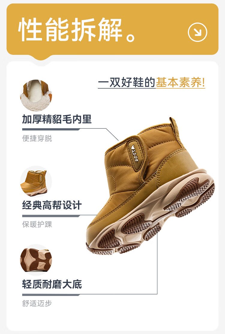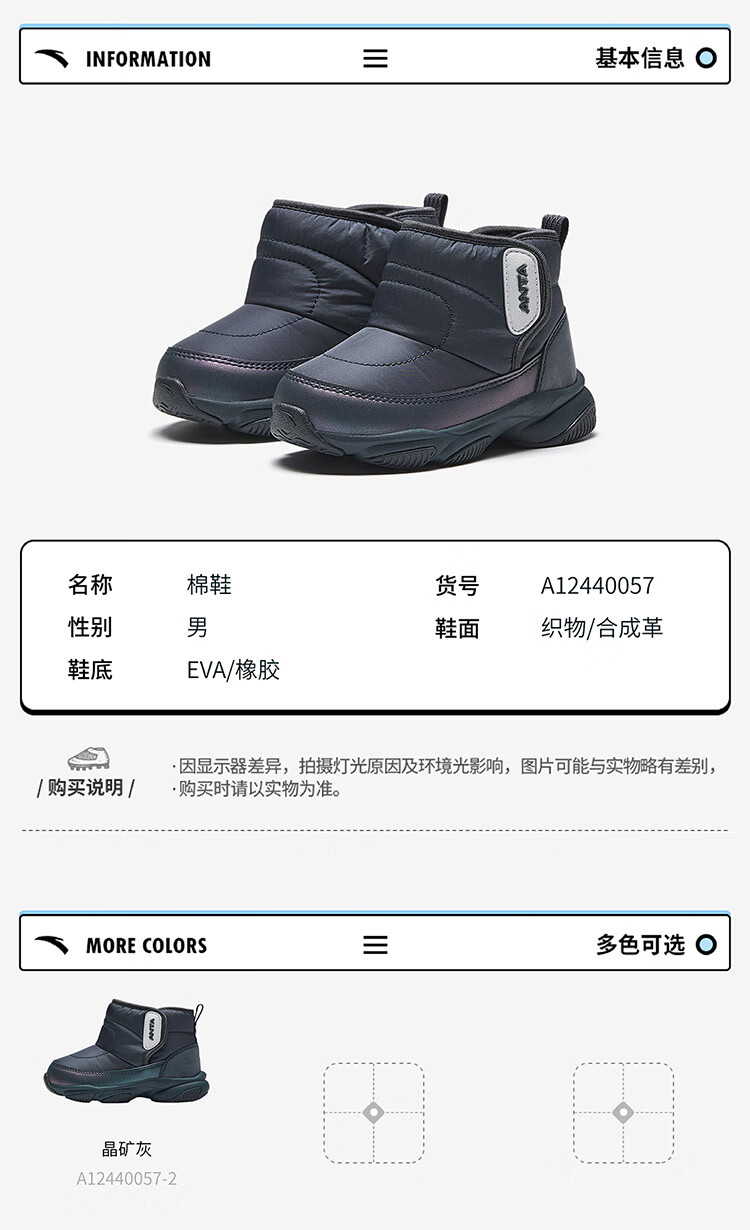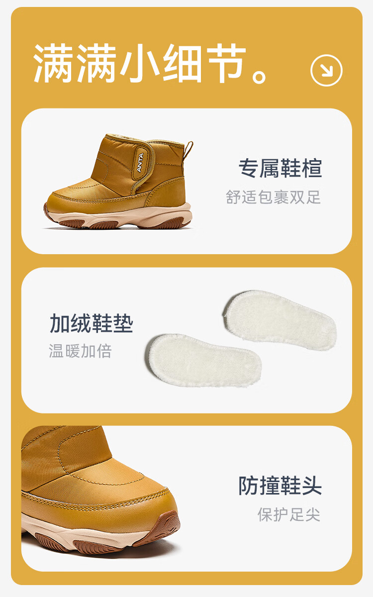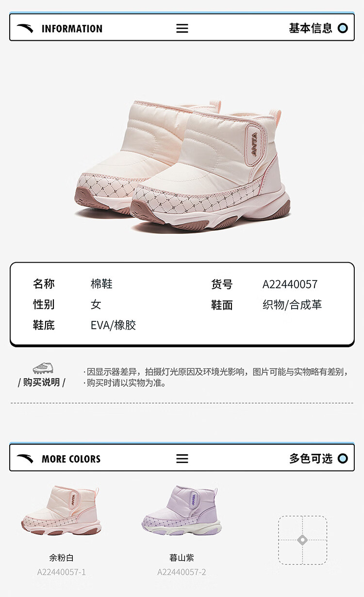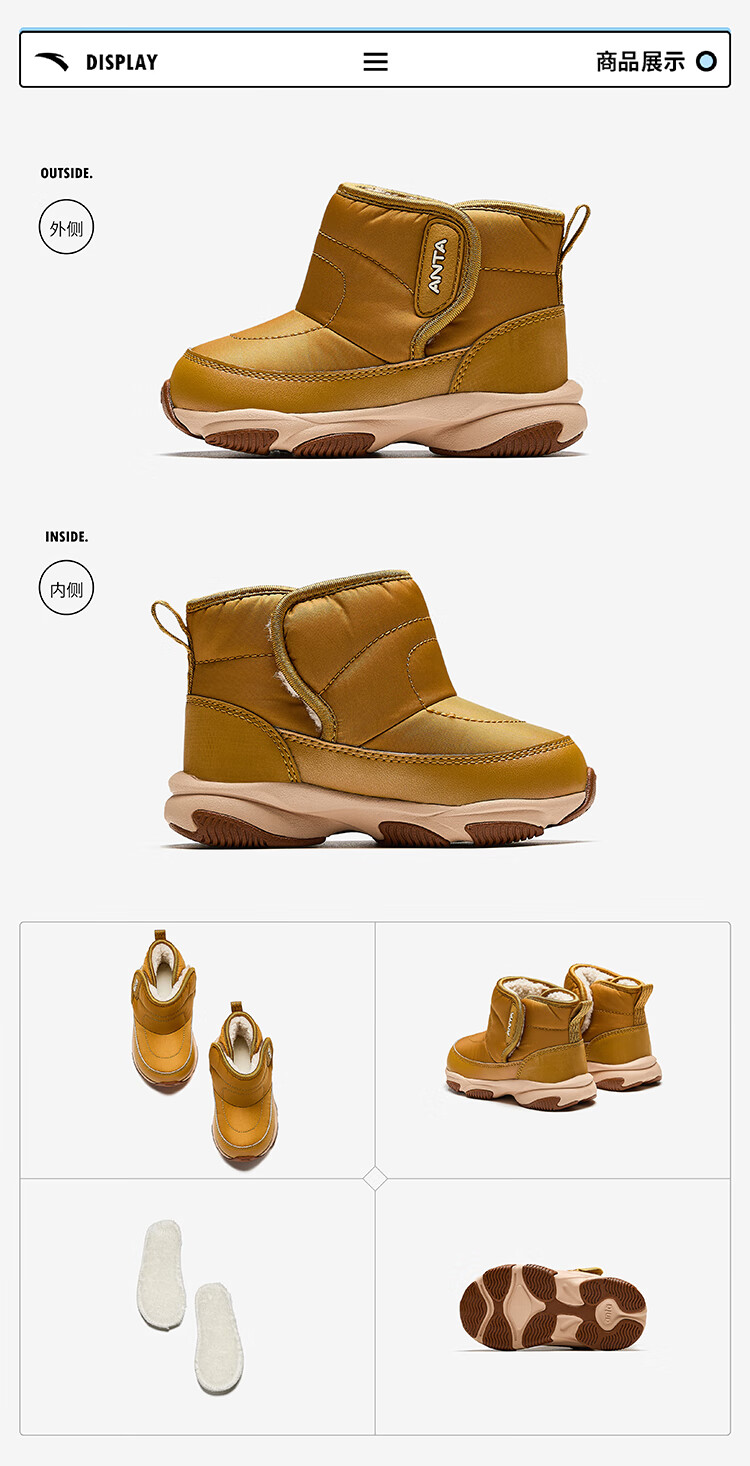 ANTA children's boys and girls infant cotton shoes warm boots to keep out the cold infants and toddlers plus velvet high-top cotton shoes A22440057