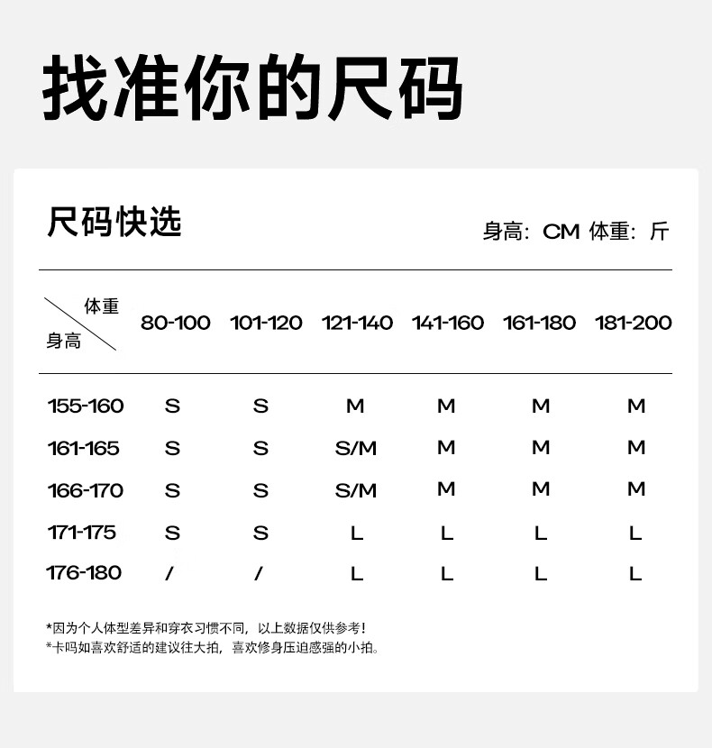 China (cm) 160-165/84-86 165-170 / 88-90 167-172 / 92-96 168-173 / 98-102 170-176 / 106-110
