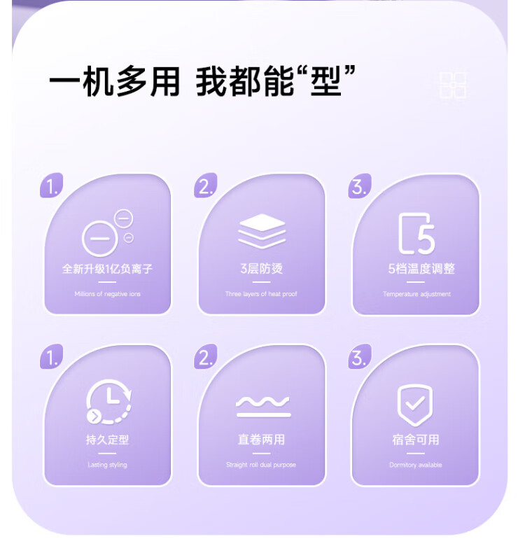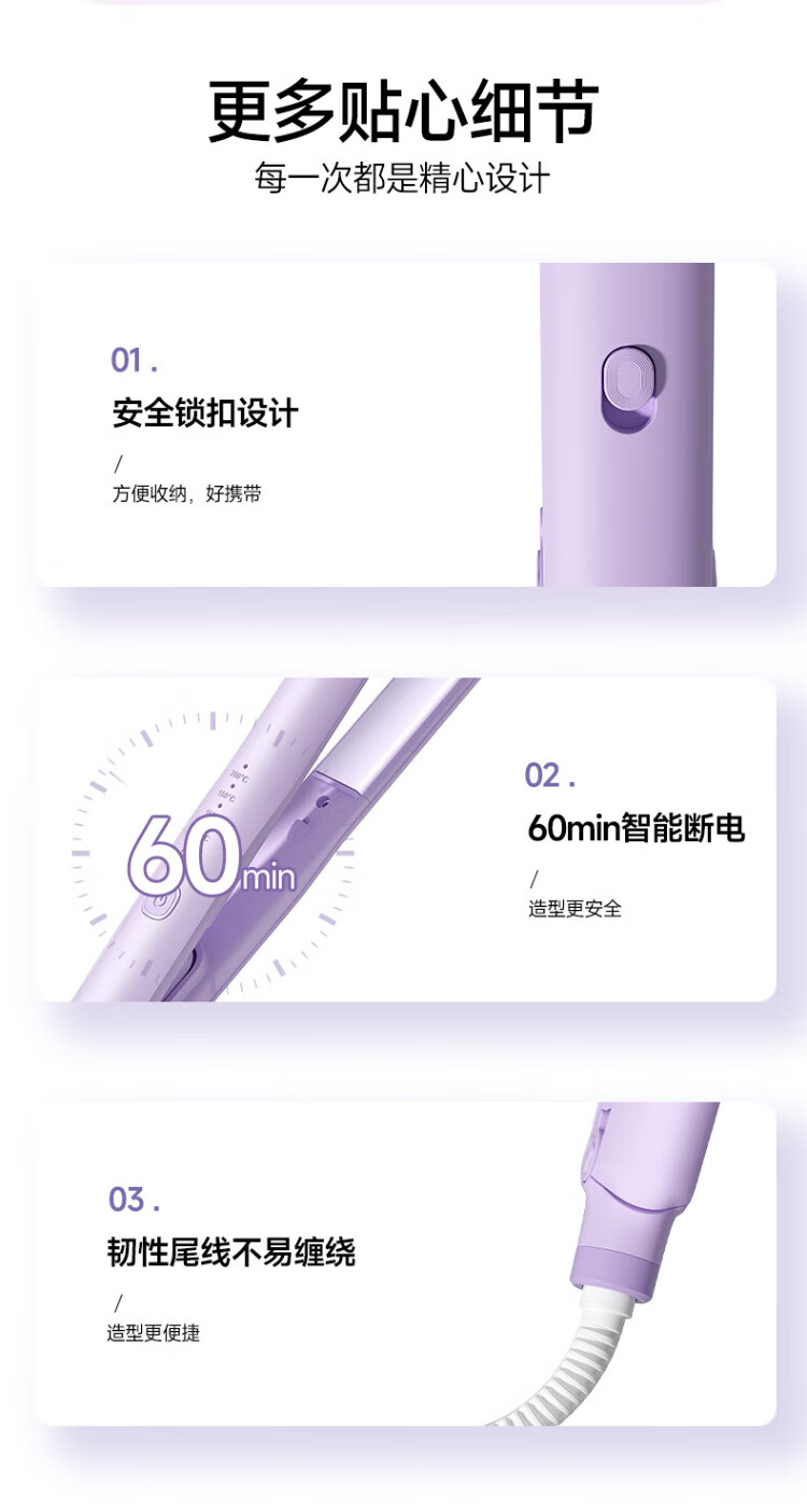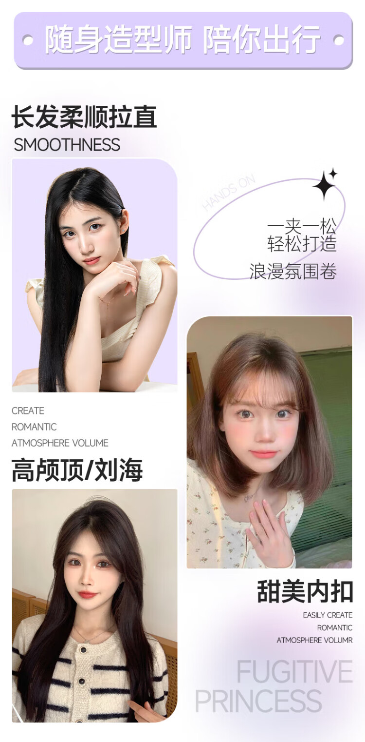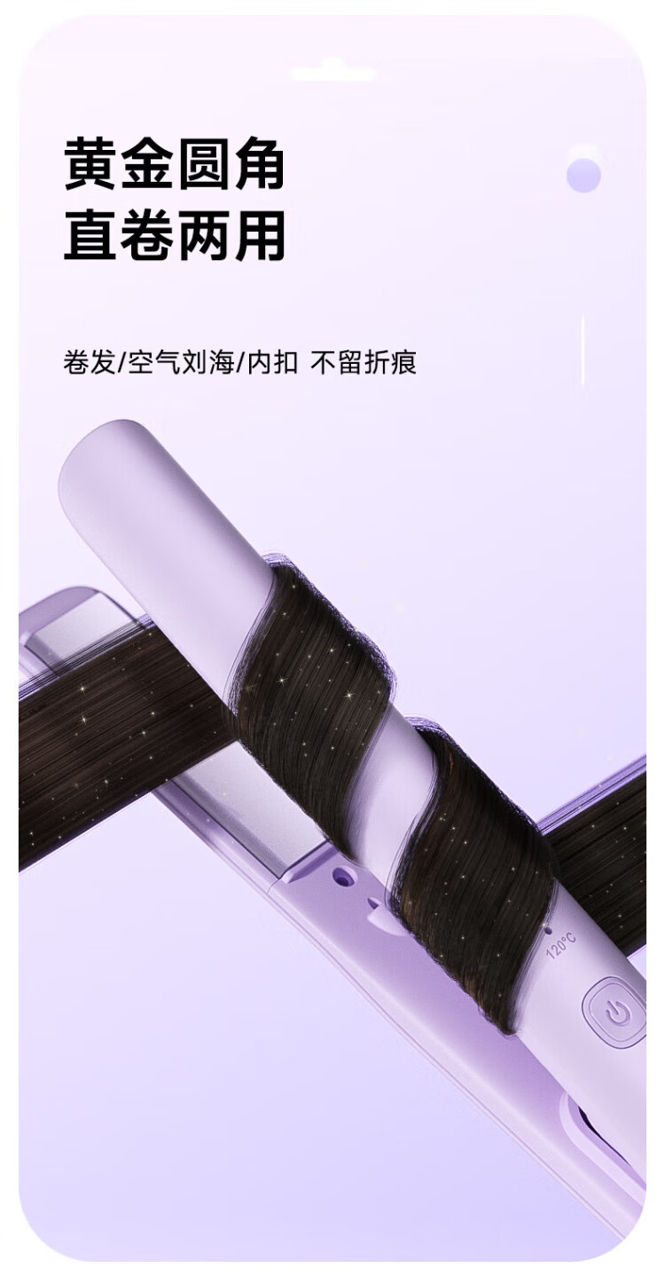 MinHuang (MinHuang) Government Subsidy Splint Straight Hair Curling Dual-Purpose Straight Plate Clip Negative Ion Curling Iron Mini Small Dormitory Portable Artifact H5 Purple