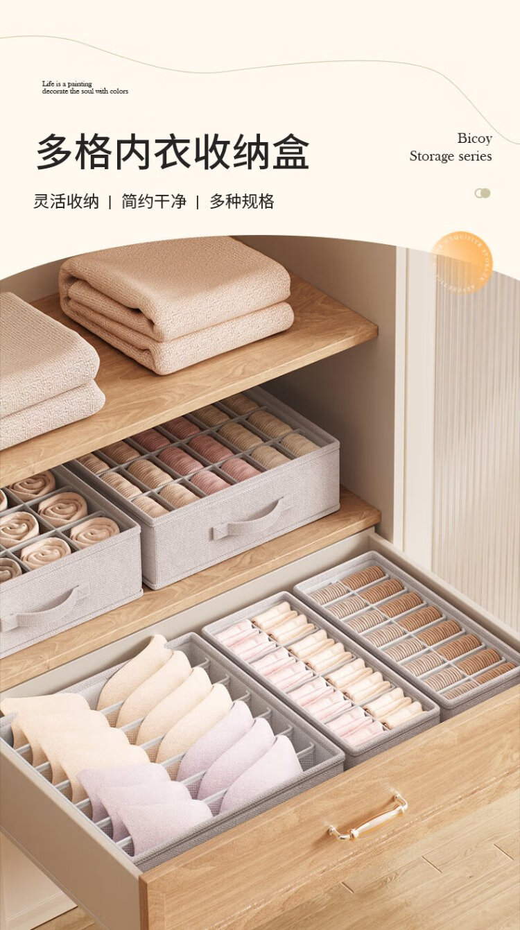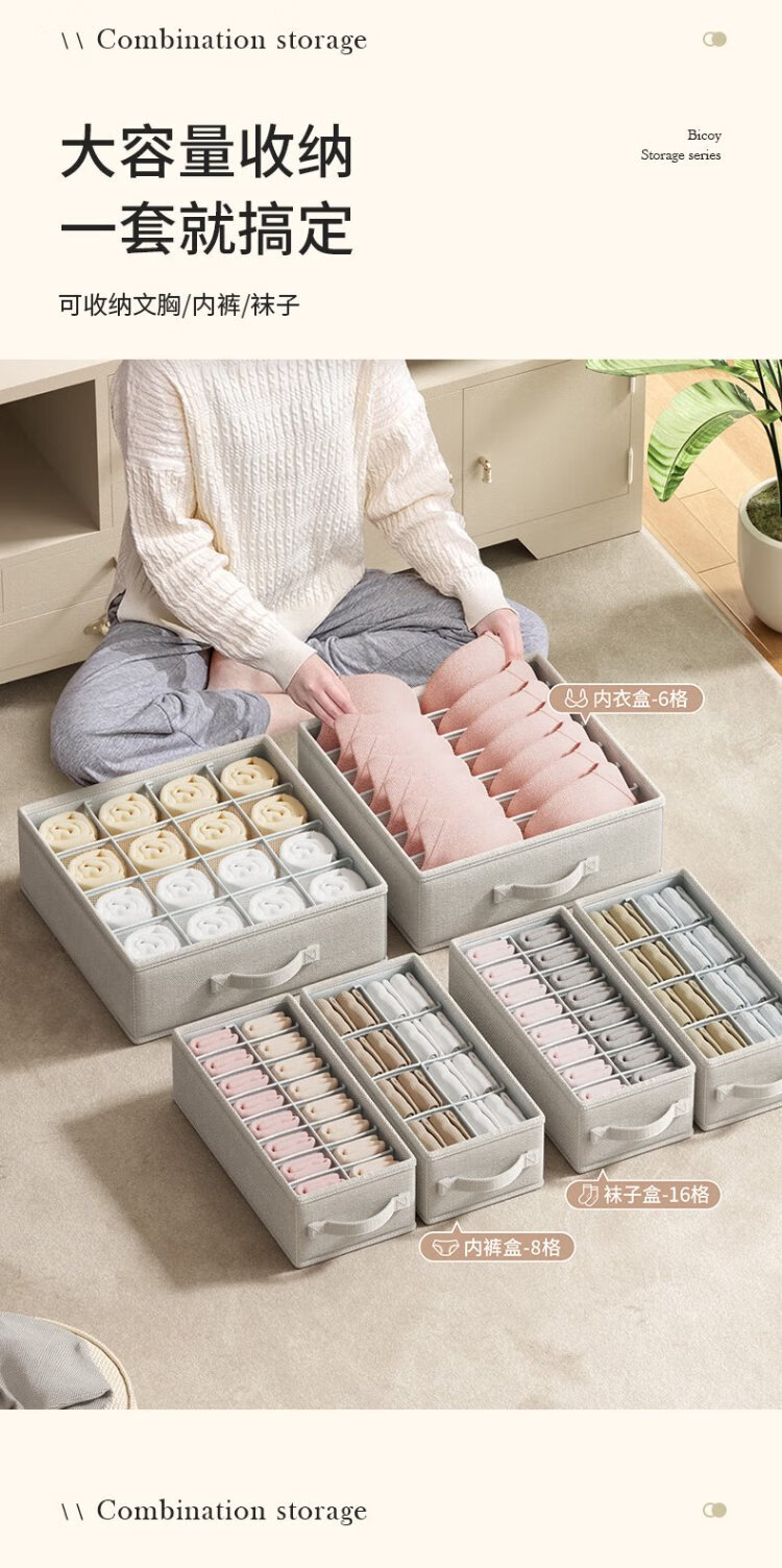 Baicaoyuan underwear storage box bra sock storage box underwear storage box home wardrobe compartment storage box small size 16 grids