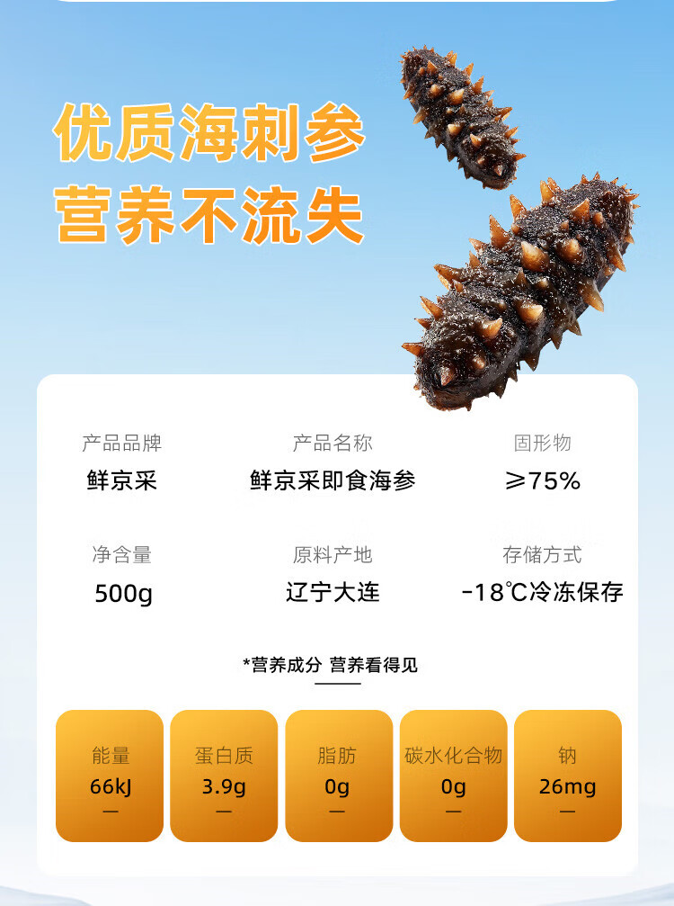 Fresh Dalian ready-to-eat sea cucumbers 1 Jin Jin equals 0.5 kg 10-16 pieces Solids 75% OCC Seafood