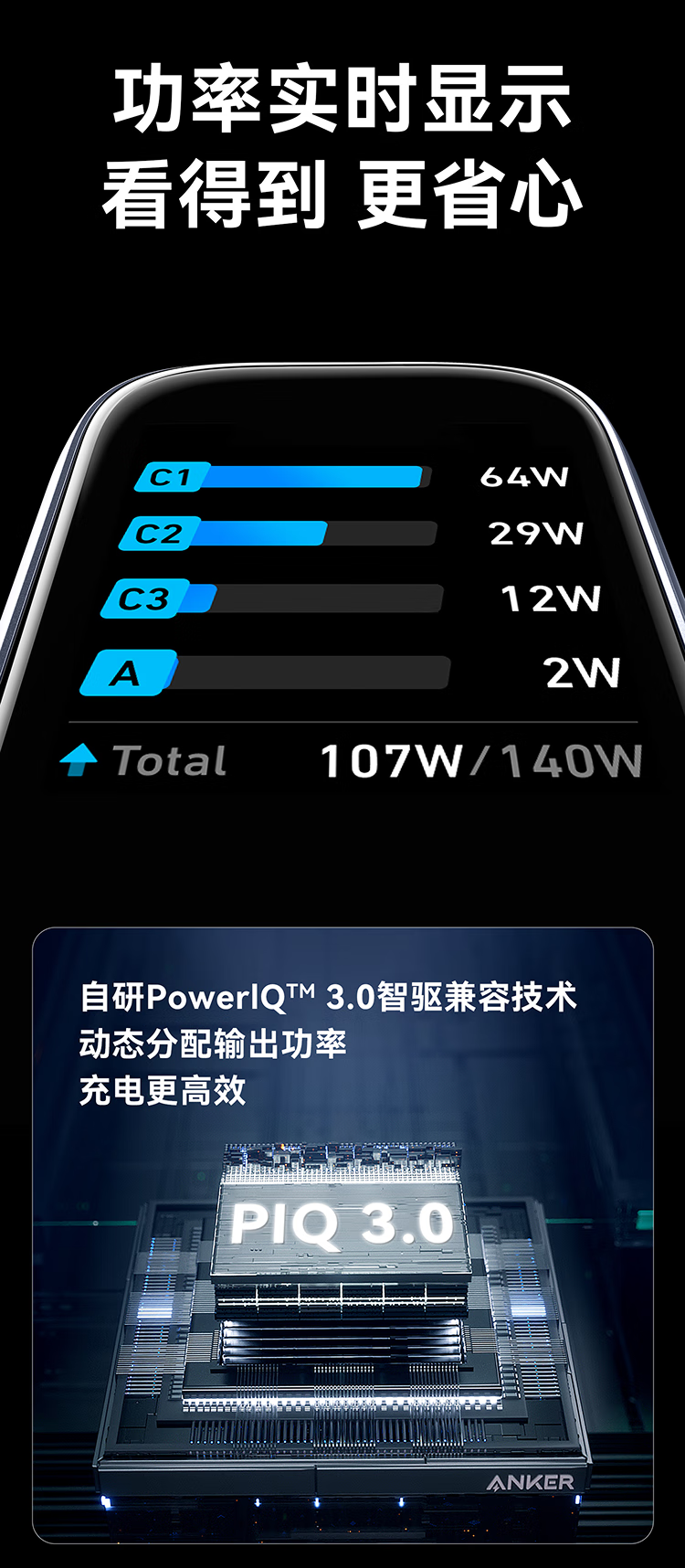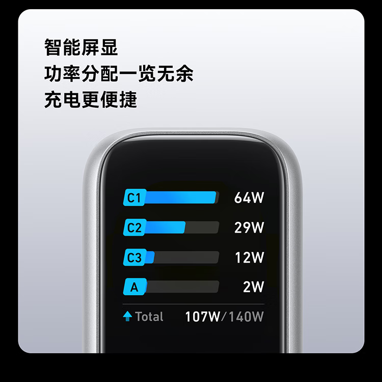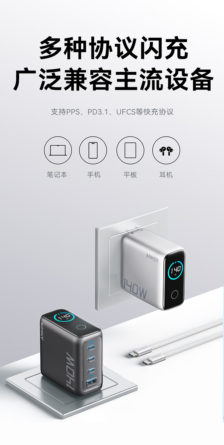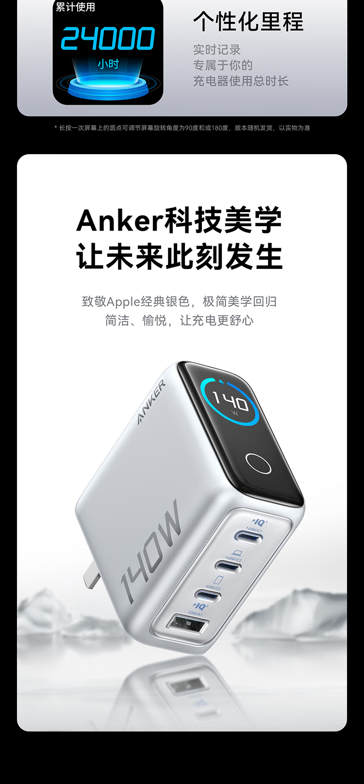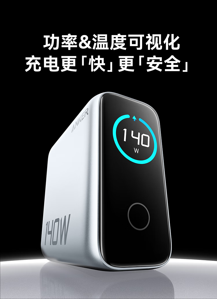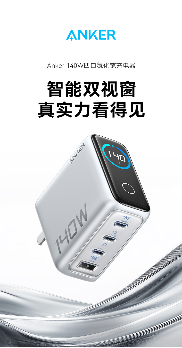 ANKER Anke smart display charging 140W charger set gallium nitride screen display type-c multi-port PD fast charging 100W head suitable for Apple 17 iPhone mobile phone laptop silver