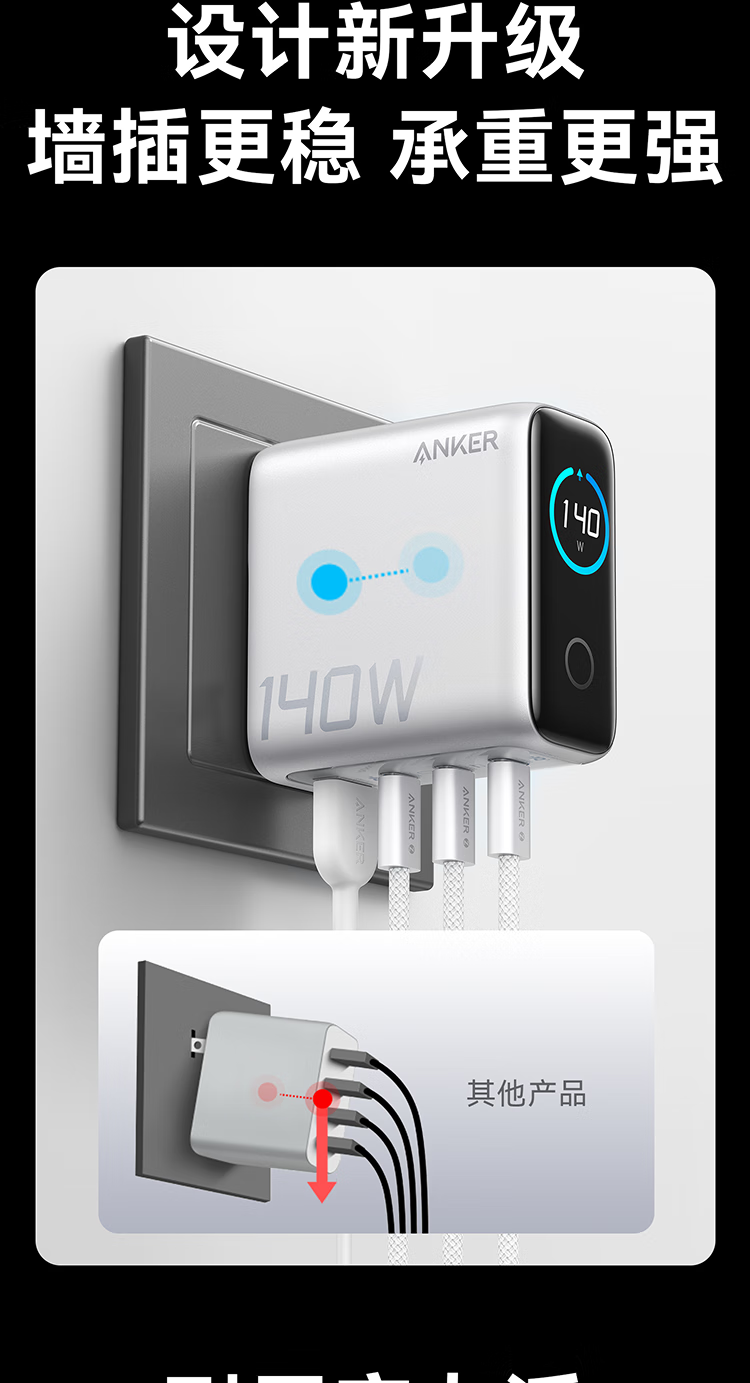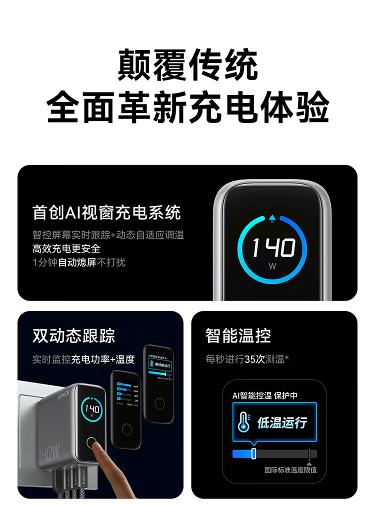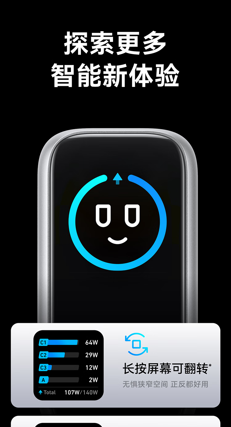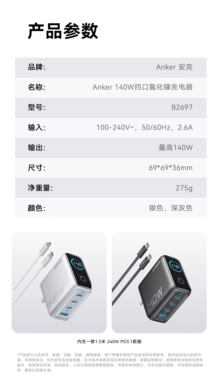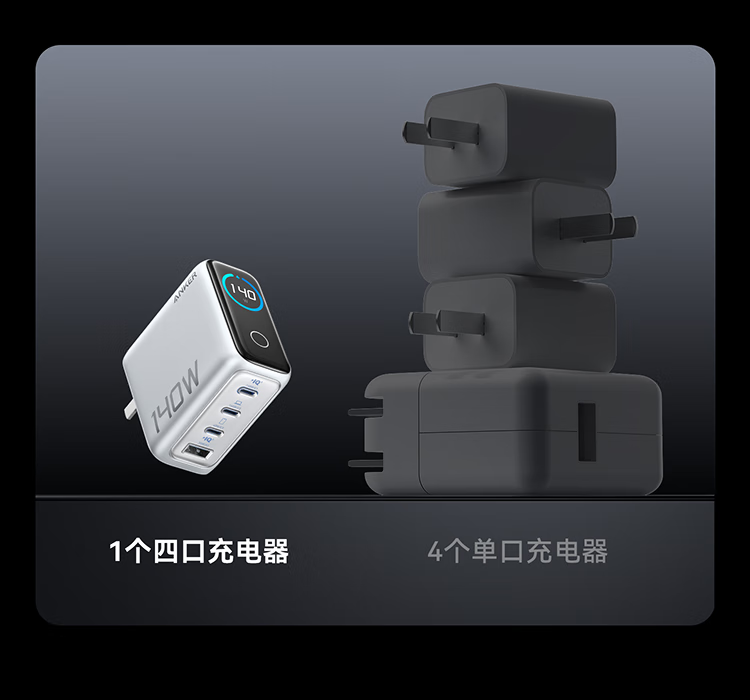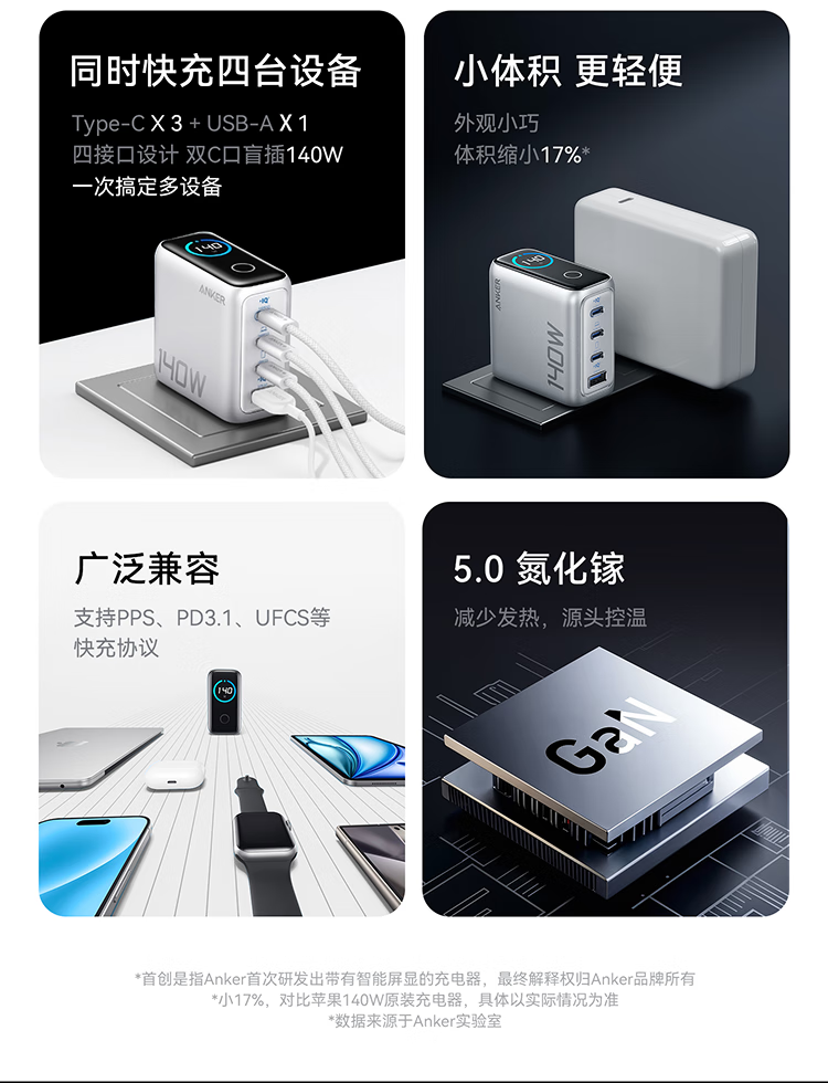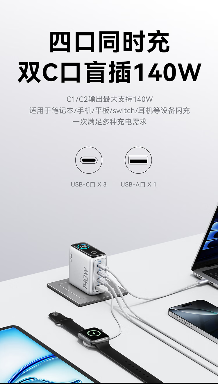 ANKER Anke smart display charging 140W charger set gallium nitride screen display type-c multi-port PD fast charging 100W head suitable for Apple 17 iPhone mobile phone laptop silver
