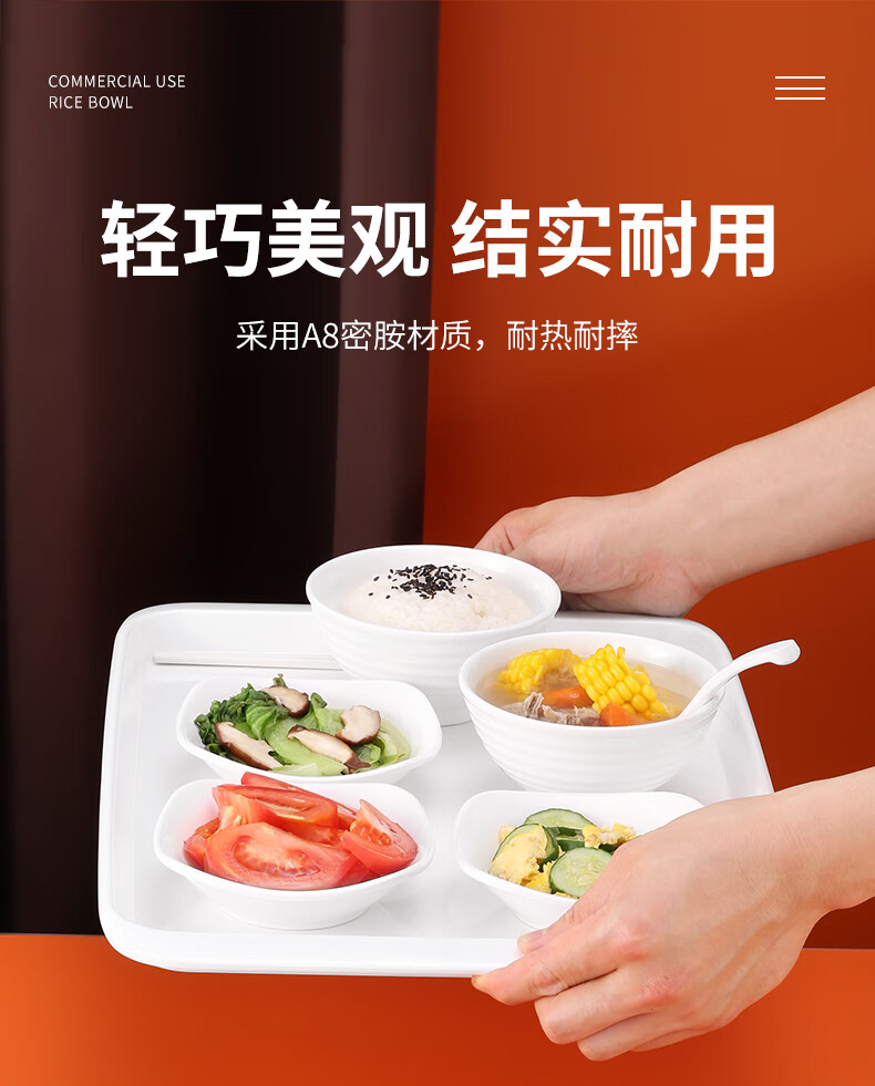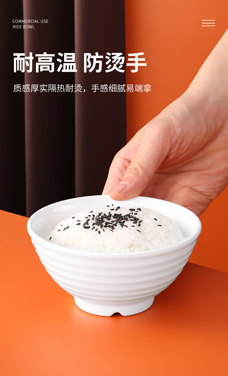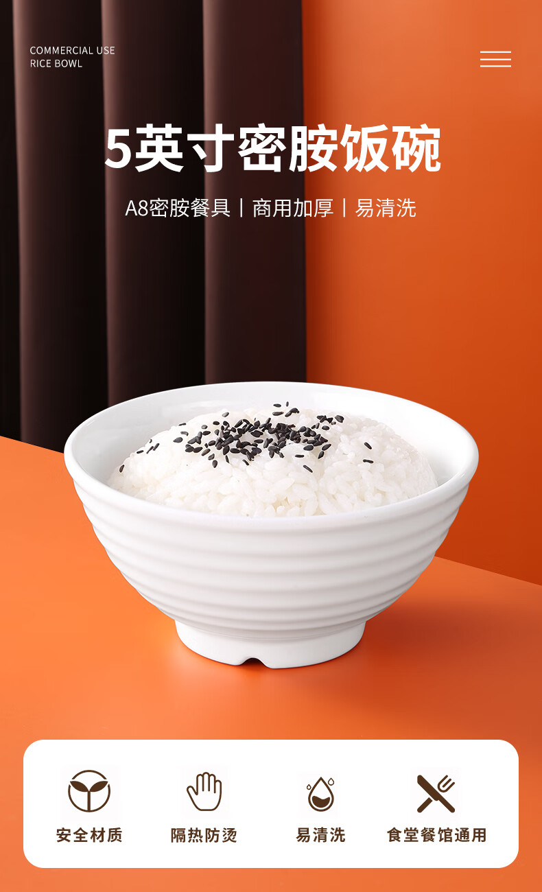 JOBO commercial A8 melamine rice bowl 5-inch 10-pack soup bowl fast food canteen rice bowl