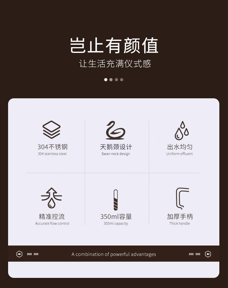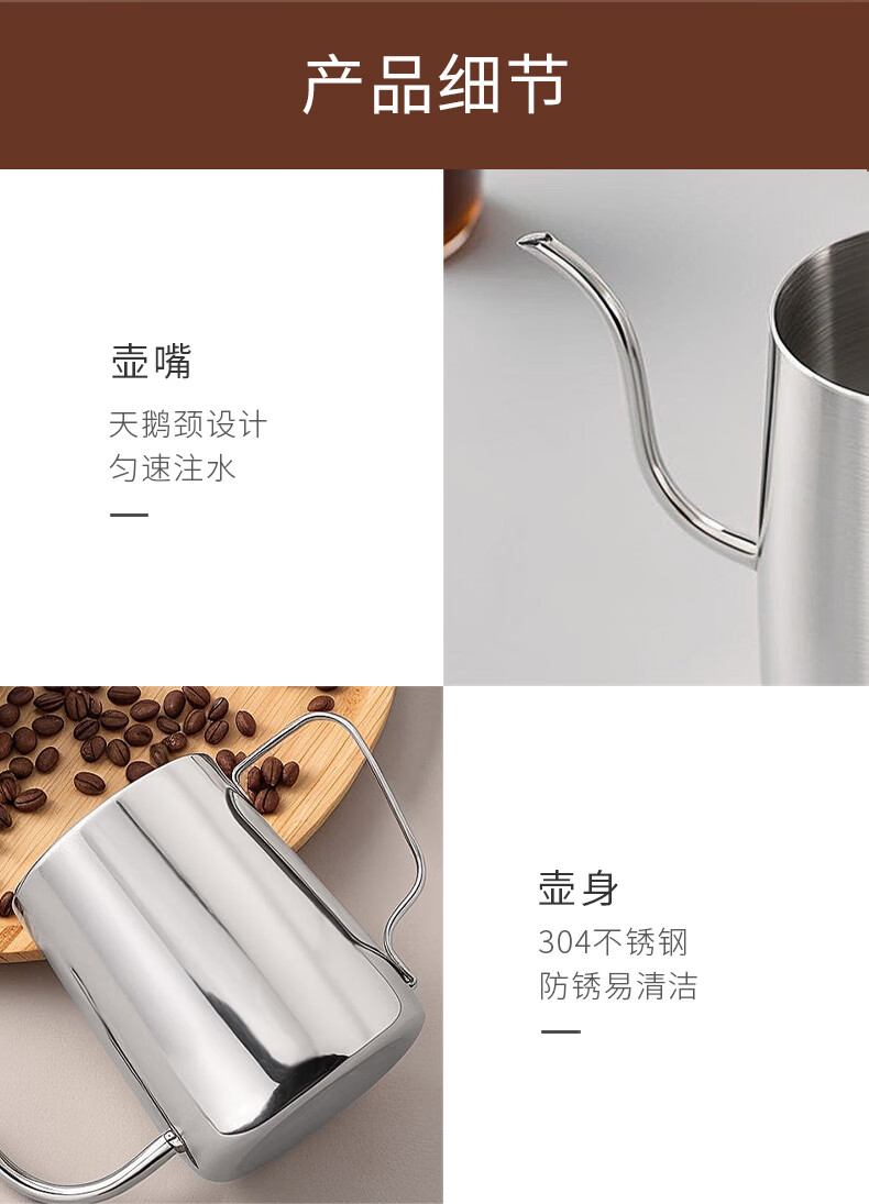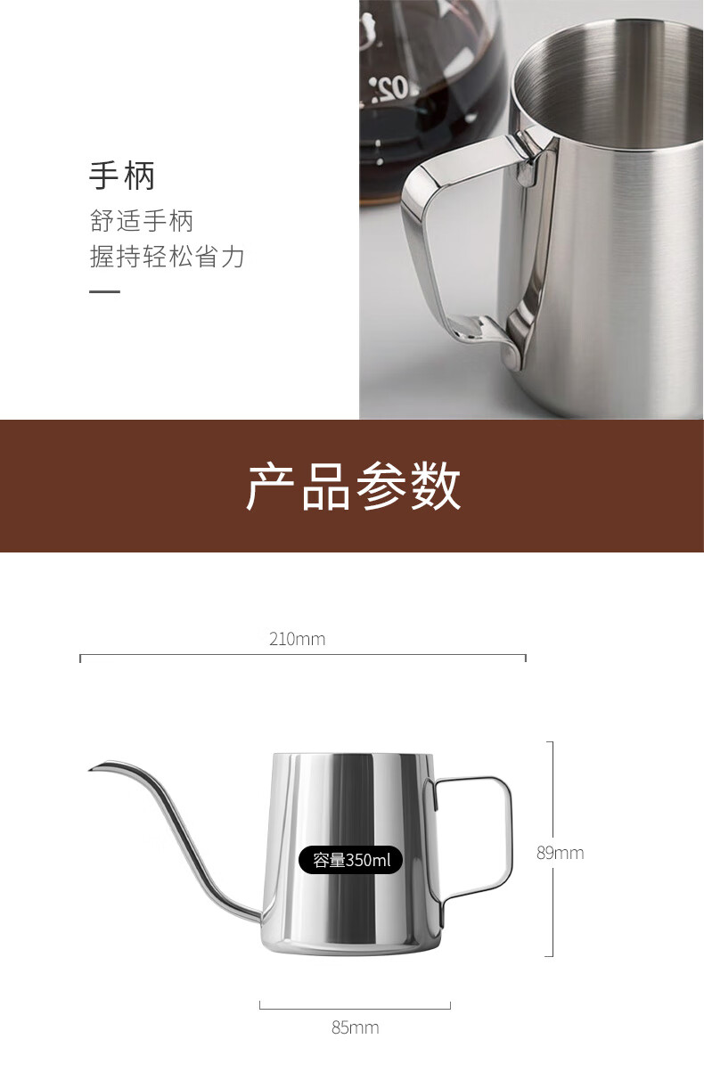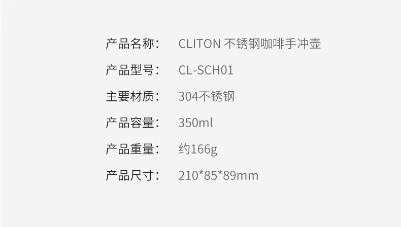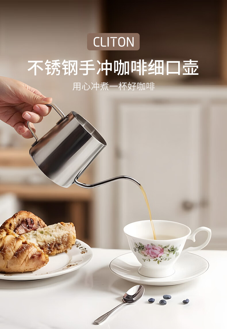 CLITON304 stainless steel hand-brewed coffee pot, travel office home hanging ear coffee pot, long mouth coffee pot, thin mouth pot