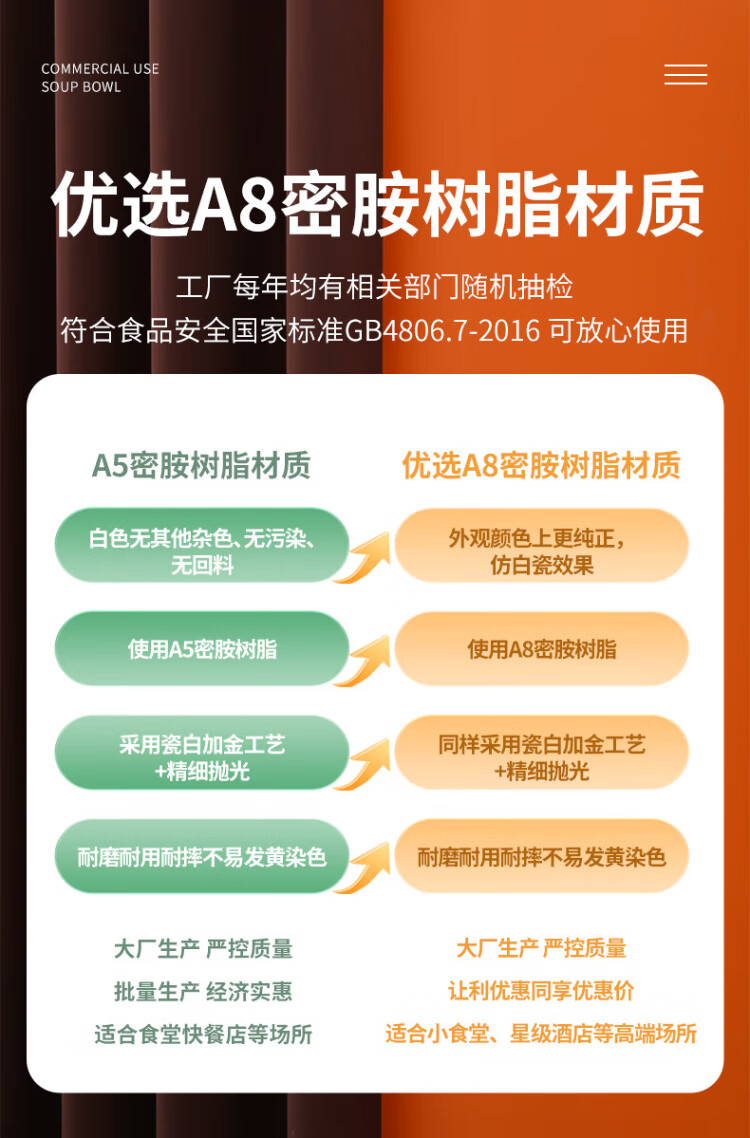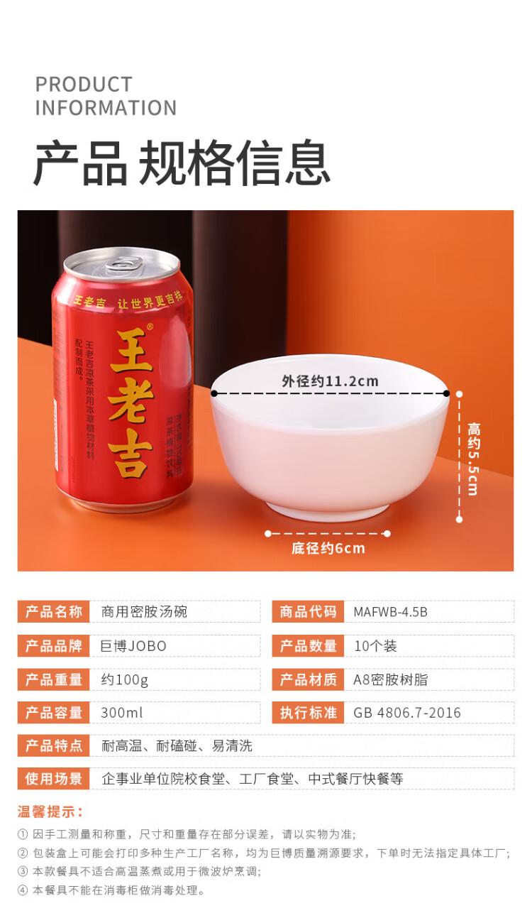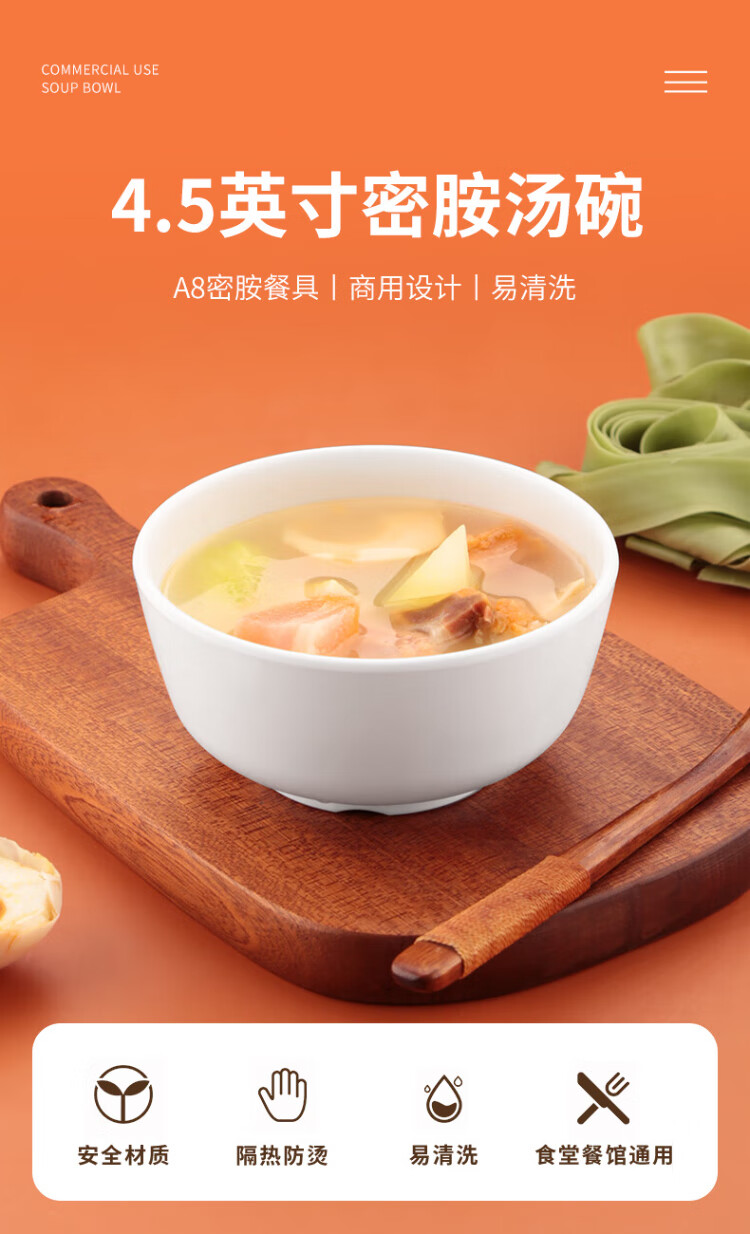 JOBO commercial A8 melamine soup bowl rice bowl 4.5 inches 10 pieces 11.2cm canteen rice bowl