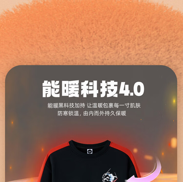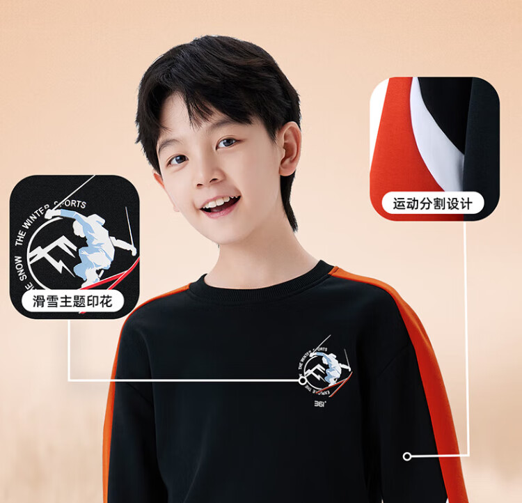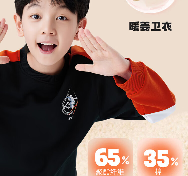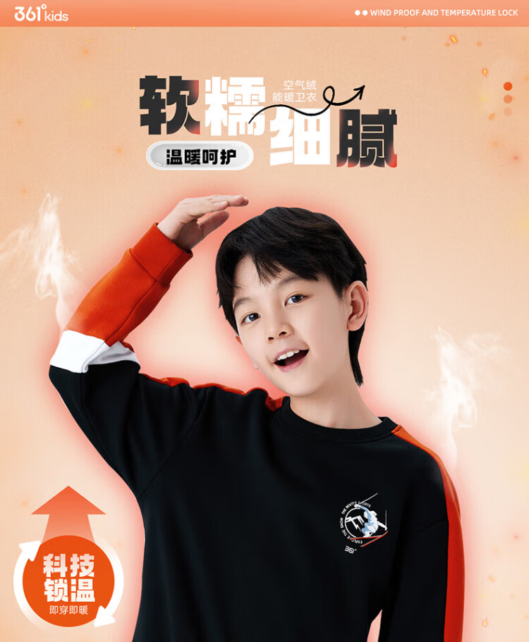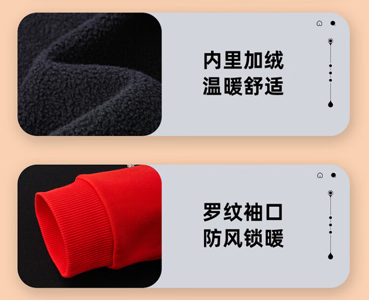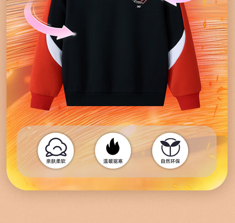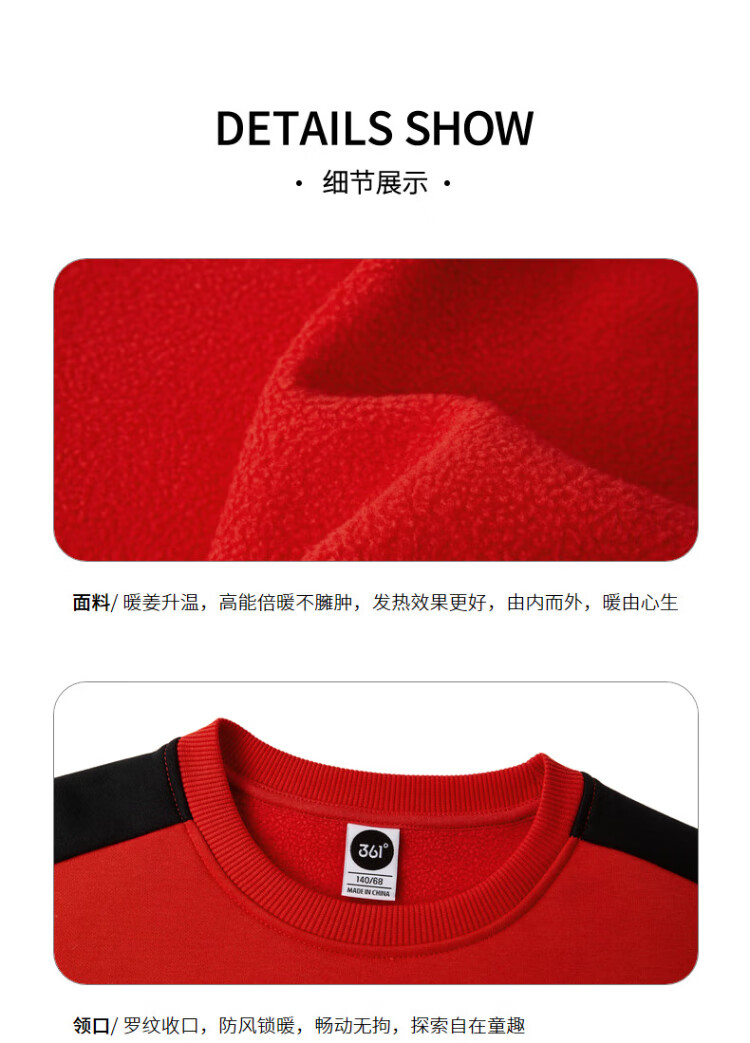 361 Children's Clothing Children's Sweatshirt 25 Winter Boys' Medium and Large Children's Velvet Warm Windproof Pullover Sweatshirt Red 150