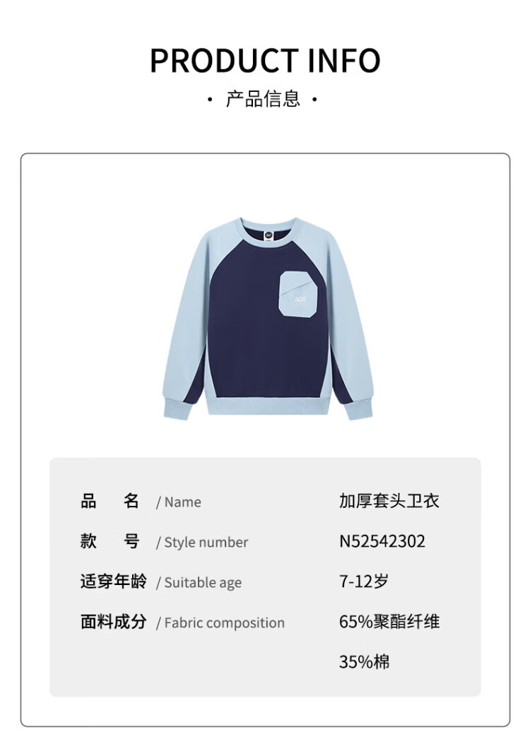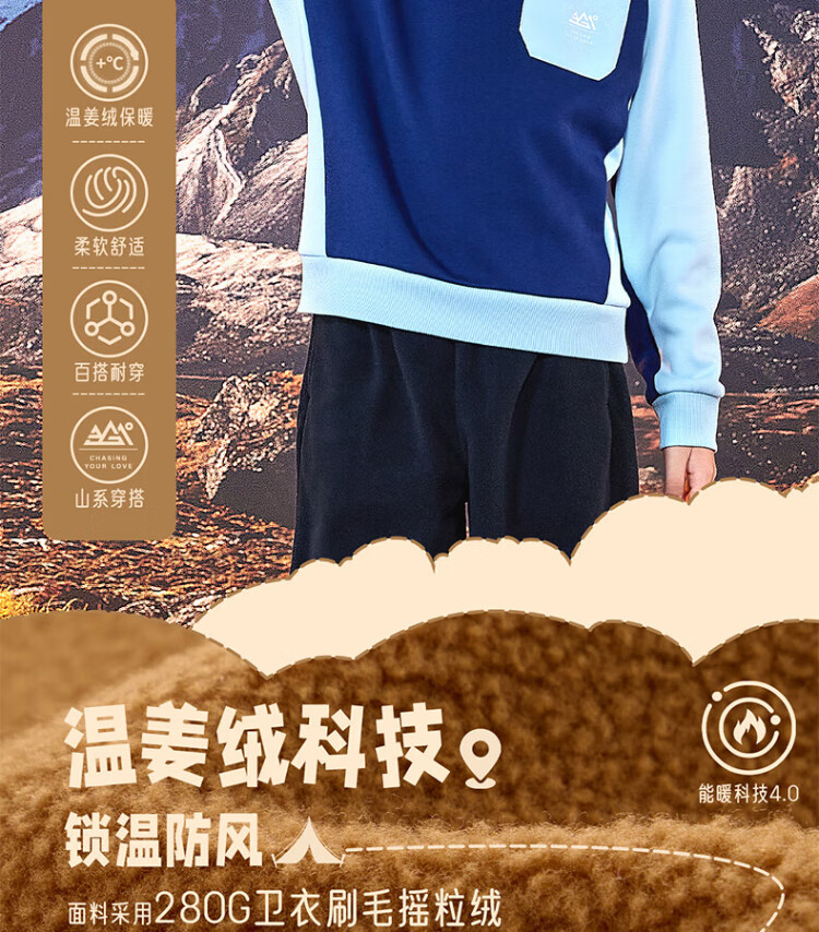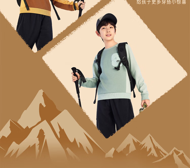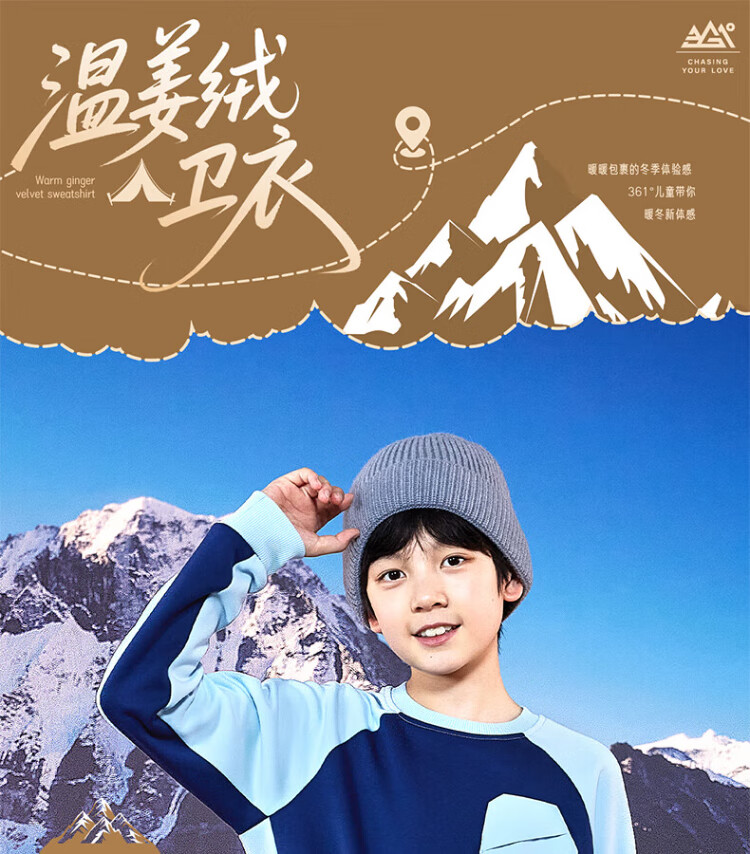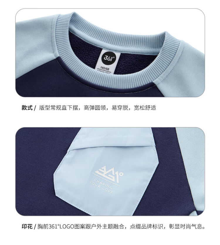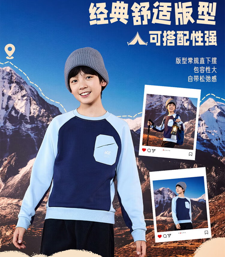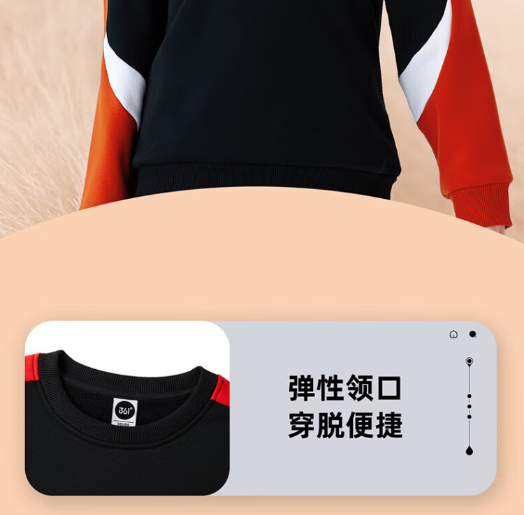 361 Children's Clothing Children's Sweatshirt 25 Winter Boys' Medium and Large Children's Velvet Warm Windproof Pullover Sweatshirt Red 150