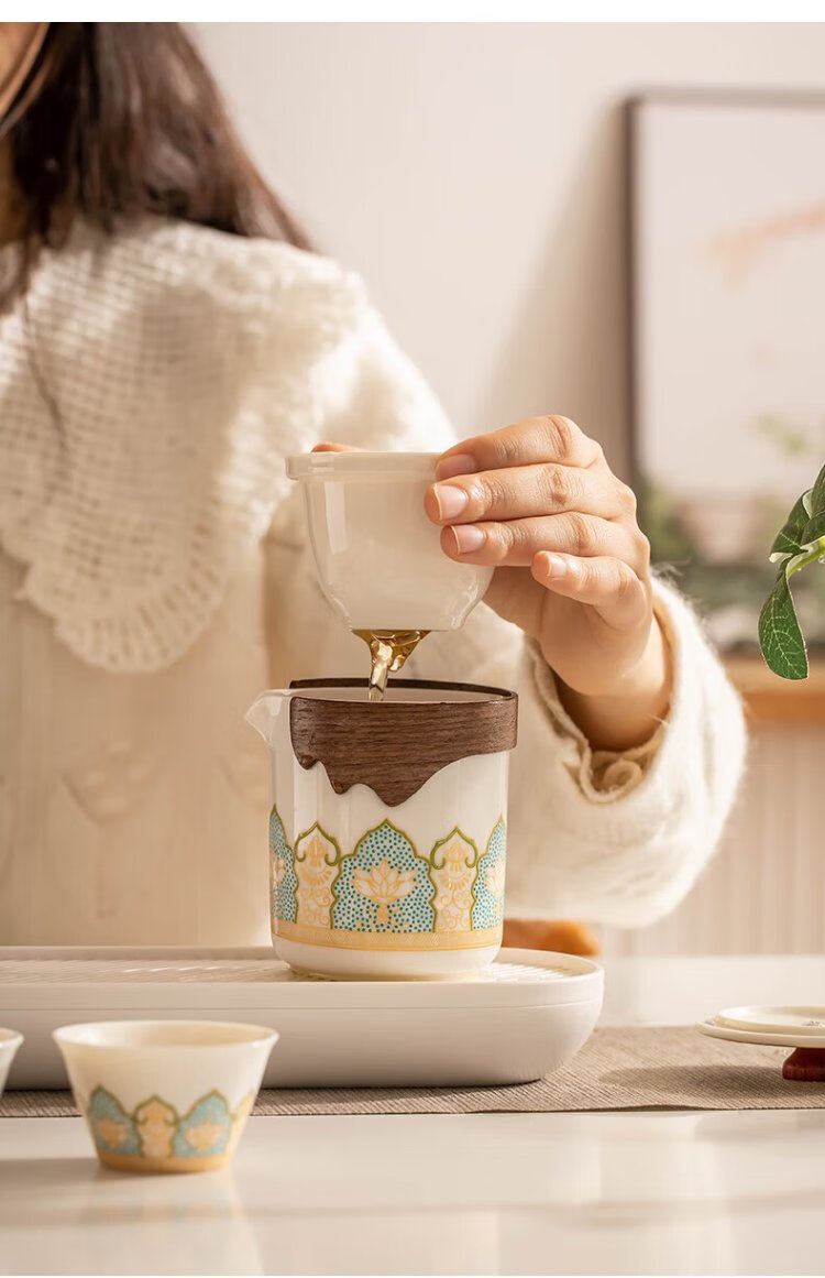 Porcelain brand tea set, travel tea set, outdoor portable ceramic quick cup, holiday souvenir, housewarming gift for elders