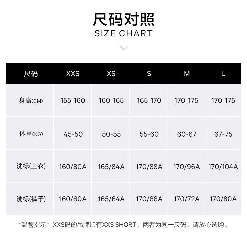 China (cm) 160-165/84-86 165-170 / 88-90 167-172 / 92-96 168-173 / 98-102 170-176 / 106-110