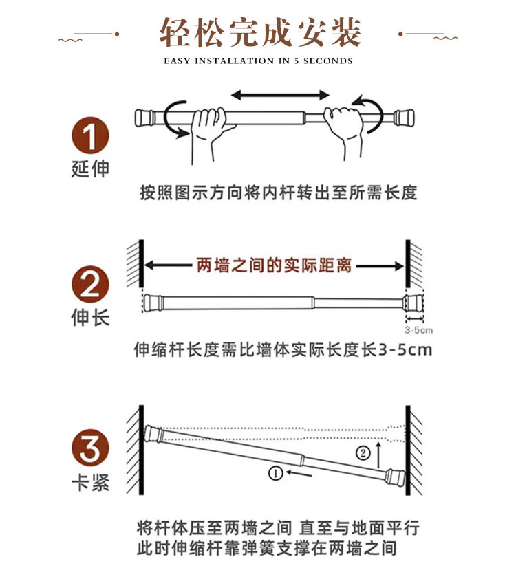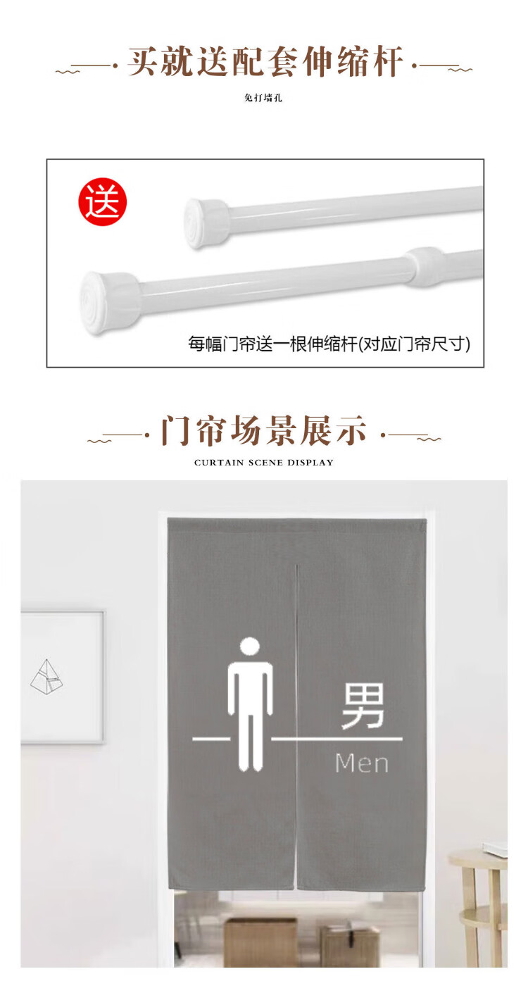 Jingxun bathroom door curtain no punching half curtain partition curtain telescopic rod bathroom toilet curtain 85*120cm