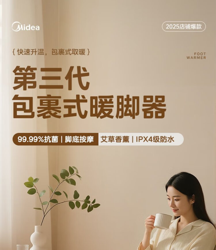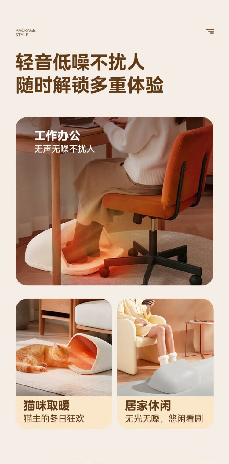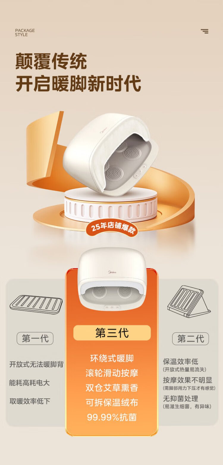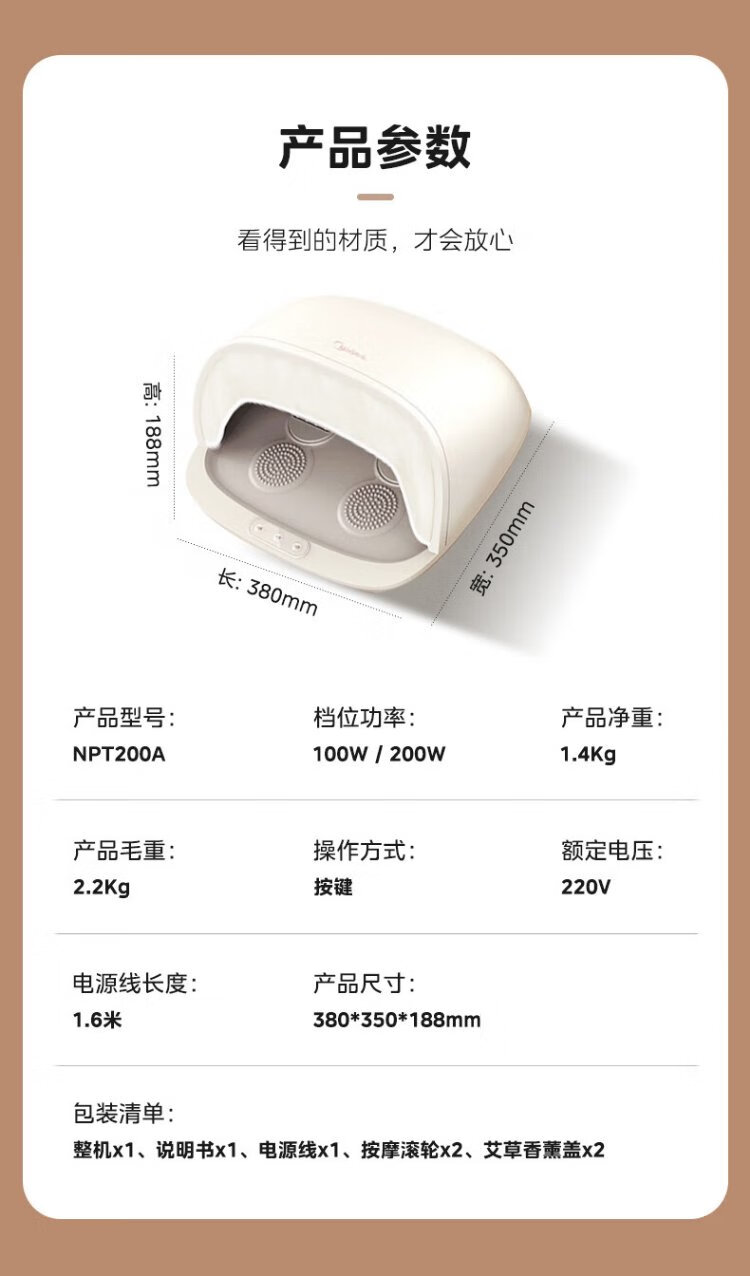 Midea foot warmer heater home electric heater office under desk heating foot pad wrapped with temperature locking mugwort massage 99.99% antibacterial foot warmer NPT200A