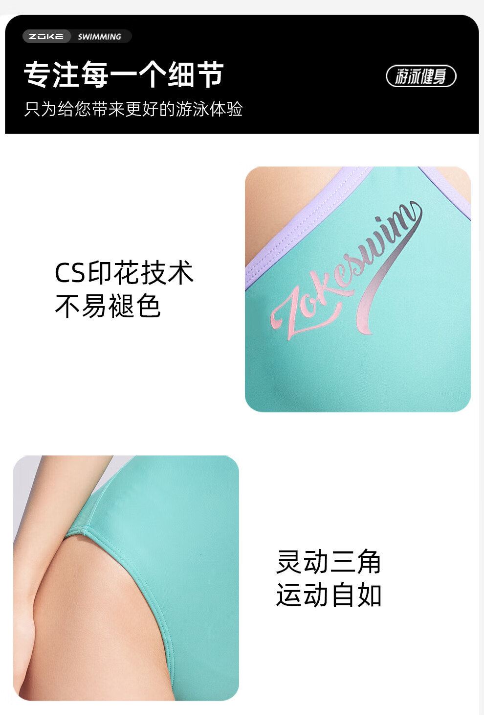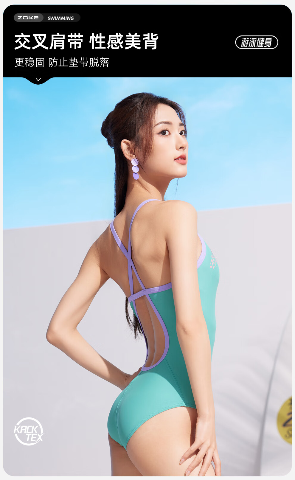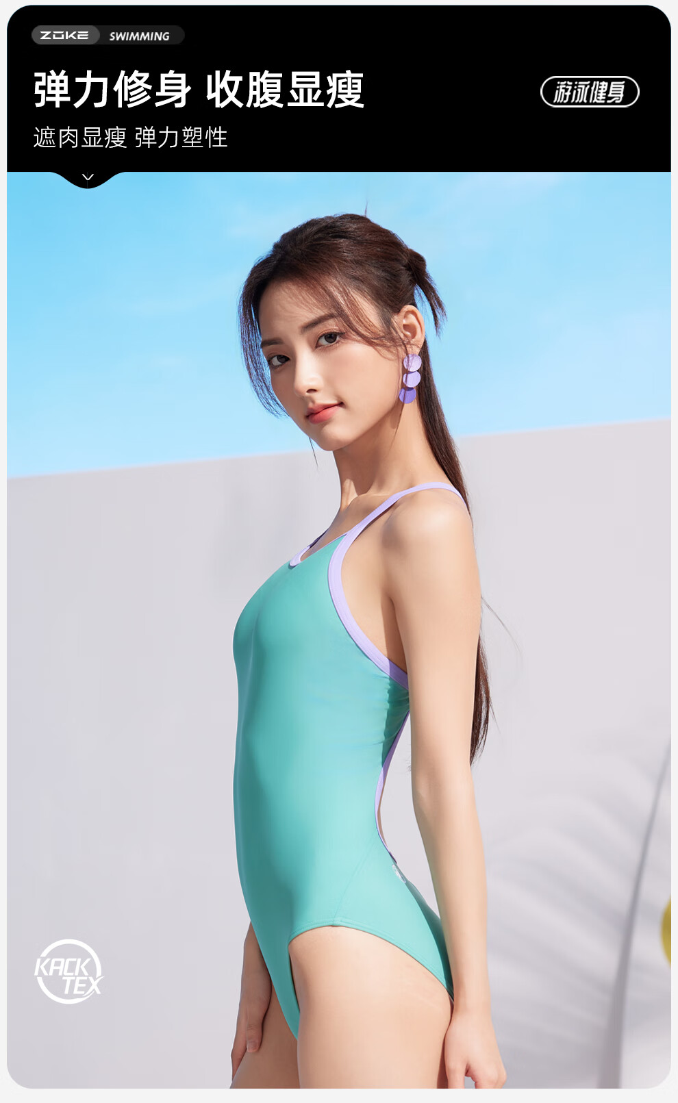 ZOKE swimsuit women's one-piece triangle professional racing sports training swimsuit 124601120-1 green/purple L