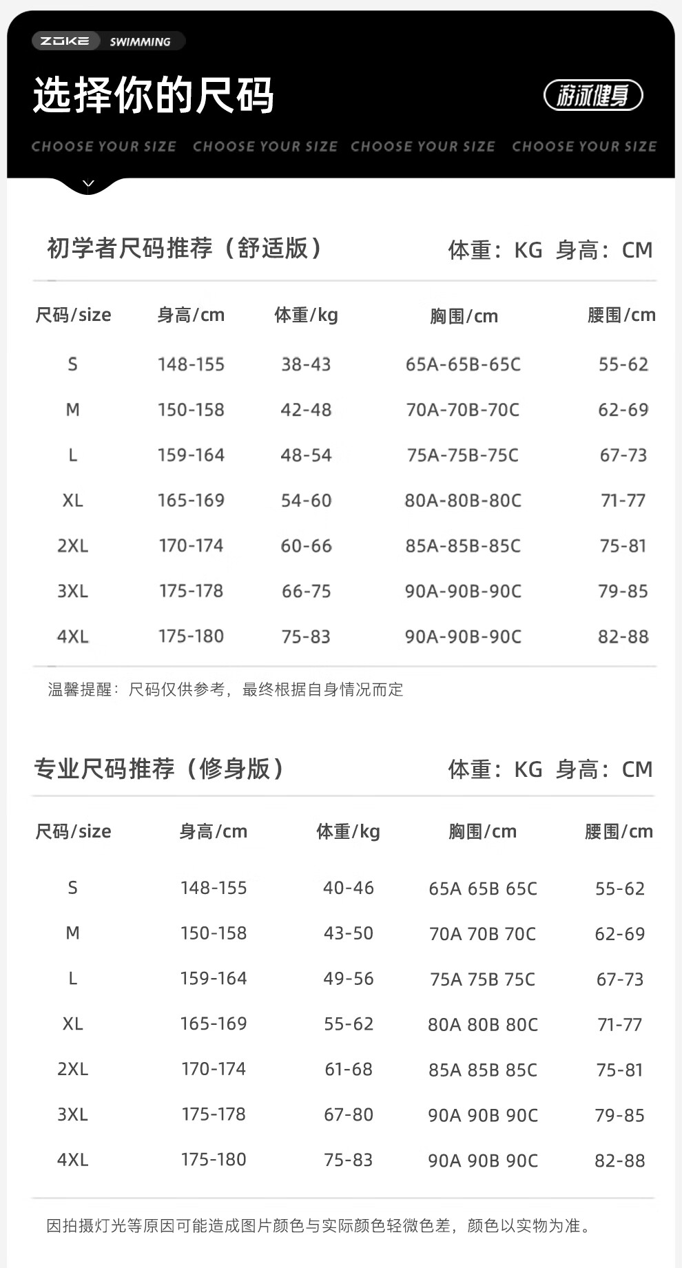 China (cm) 160-165/84-86 165-170 / 88-90 167-172 / 92-96 168-173 / 98-102 170-176 / 106-110