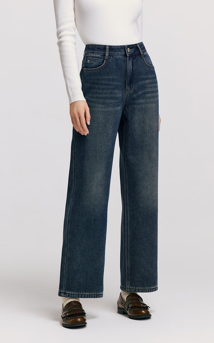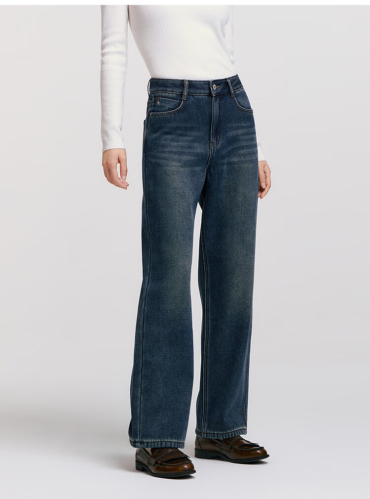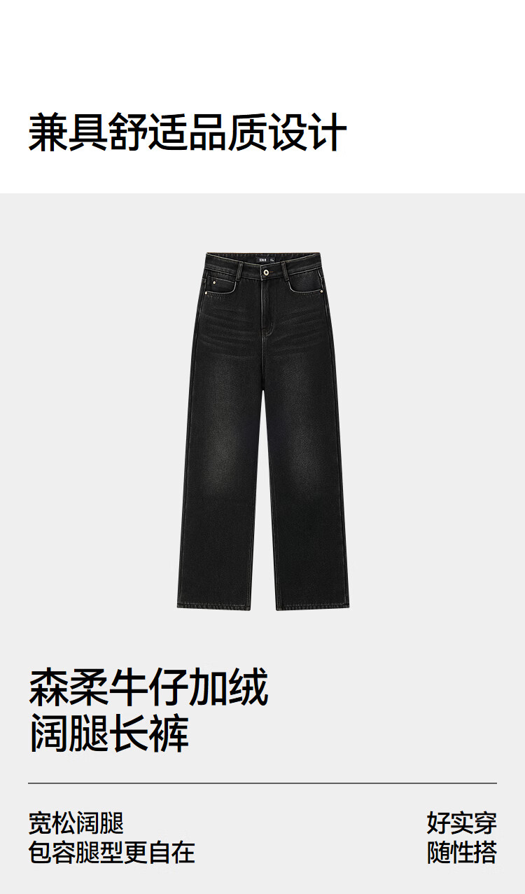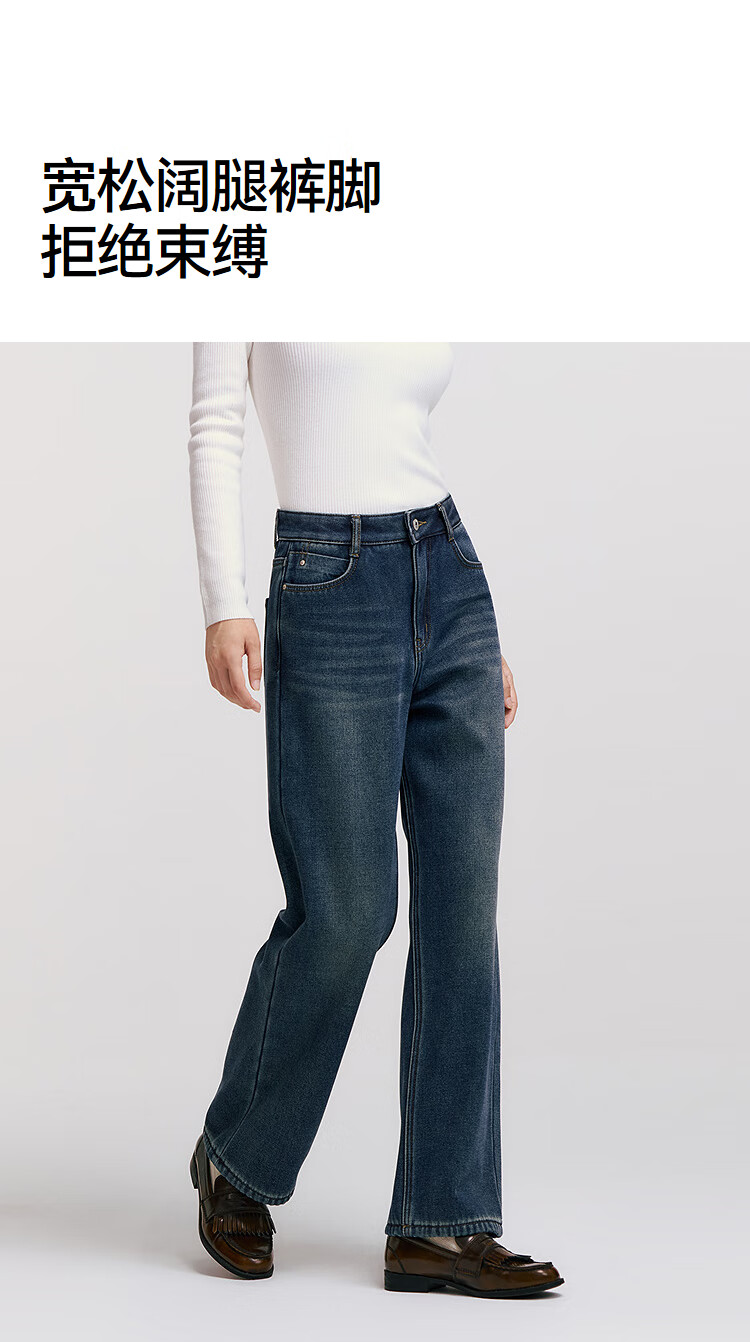 Semir Senrou|Jeans women's winter plus velvet loose trousers simple ins trend versatile wide leg pants 103724124005A
