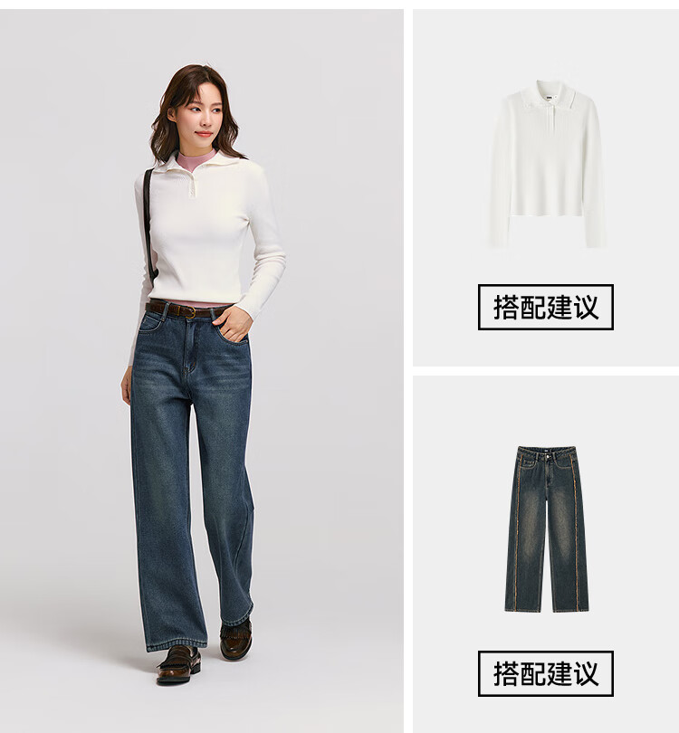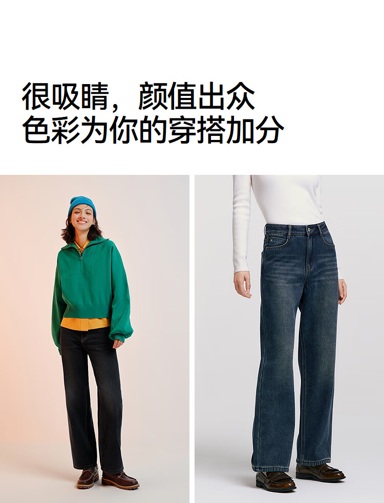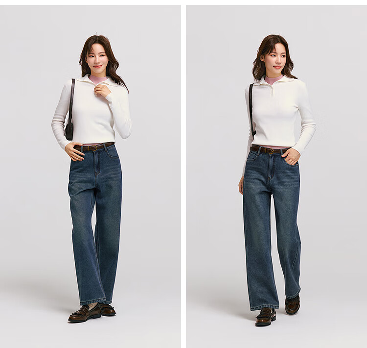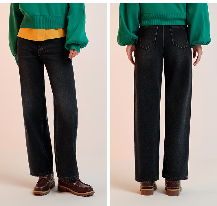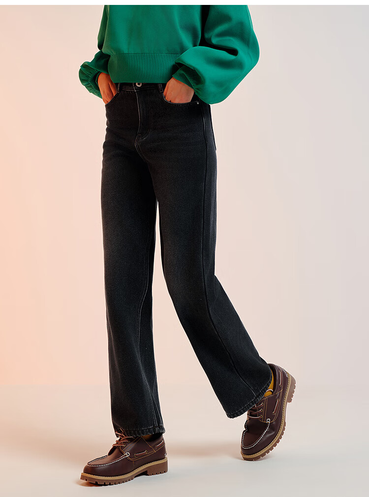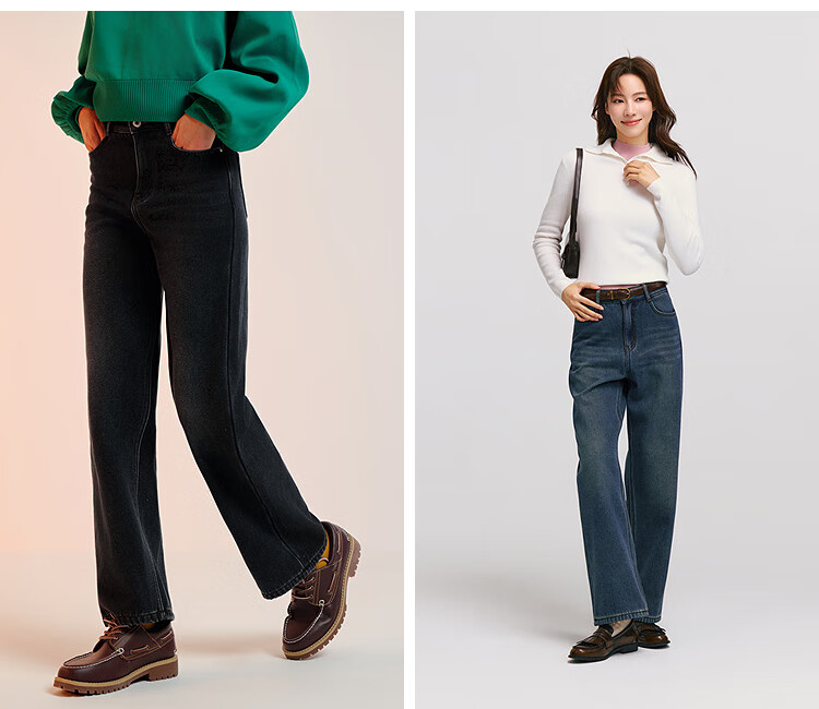 Semir Senrou|Jeans women's winter plus velvet loose trousers simple ins trend versatile wide leg pants 103724124005A