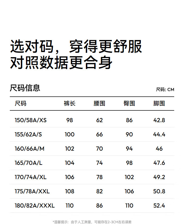 China (cm) 160-165/84-86 165-170 / 88-90 167-172 / 92-96 168-173 / 98-102 170-176 / 106-110