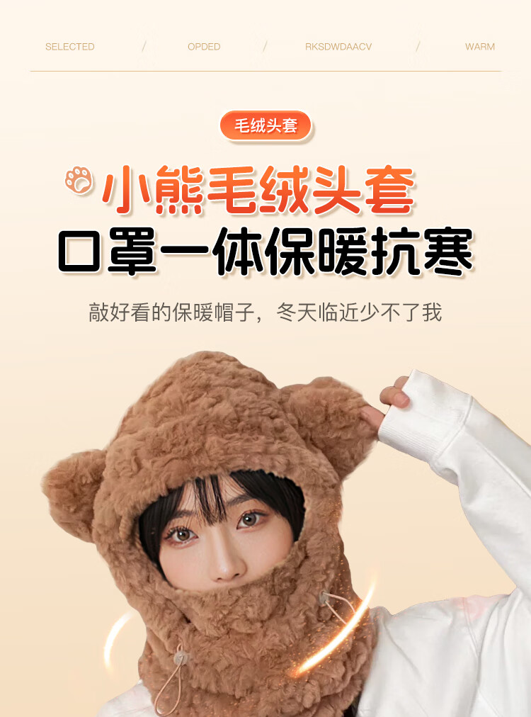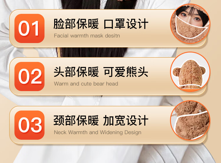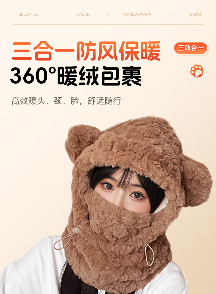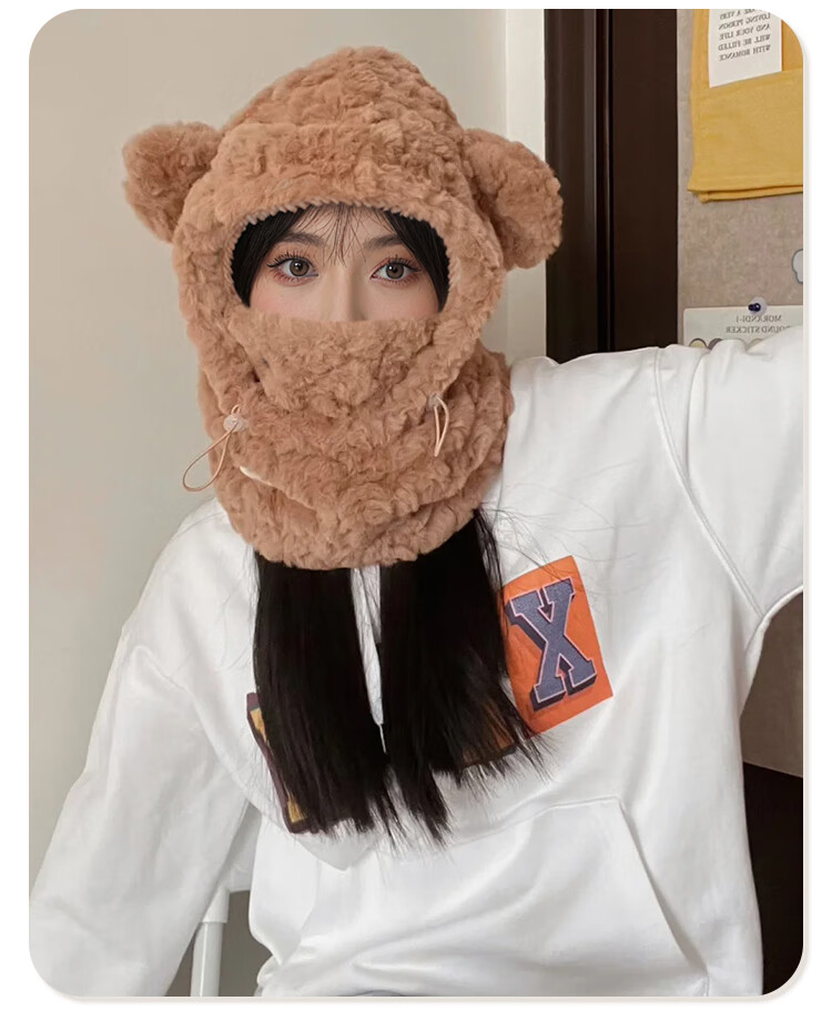 XTEP hat, men's and women's scarf and mask, one-piece three-piece set, men's and women's winter velvet thickened dustproof hooded warm and windproof hat