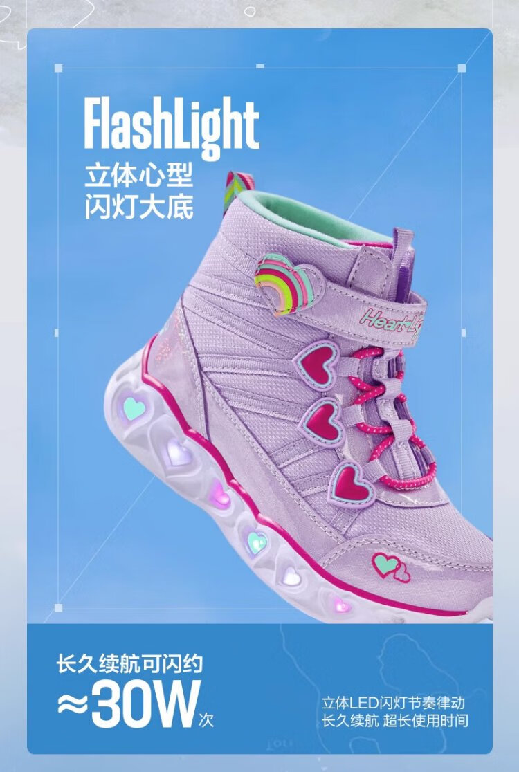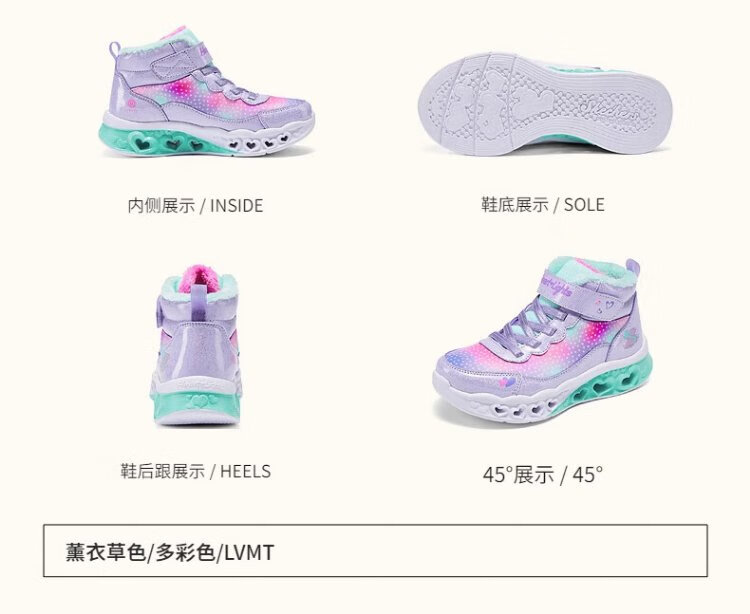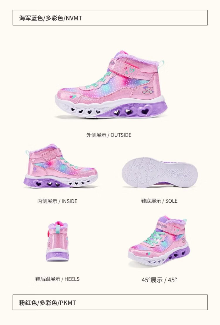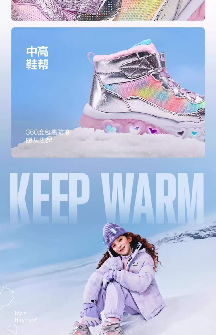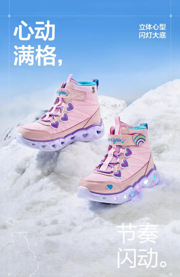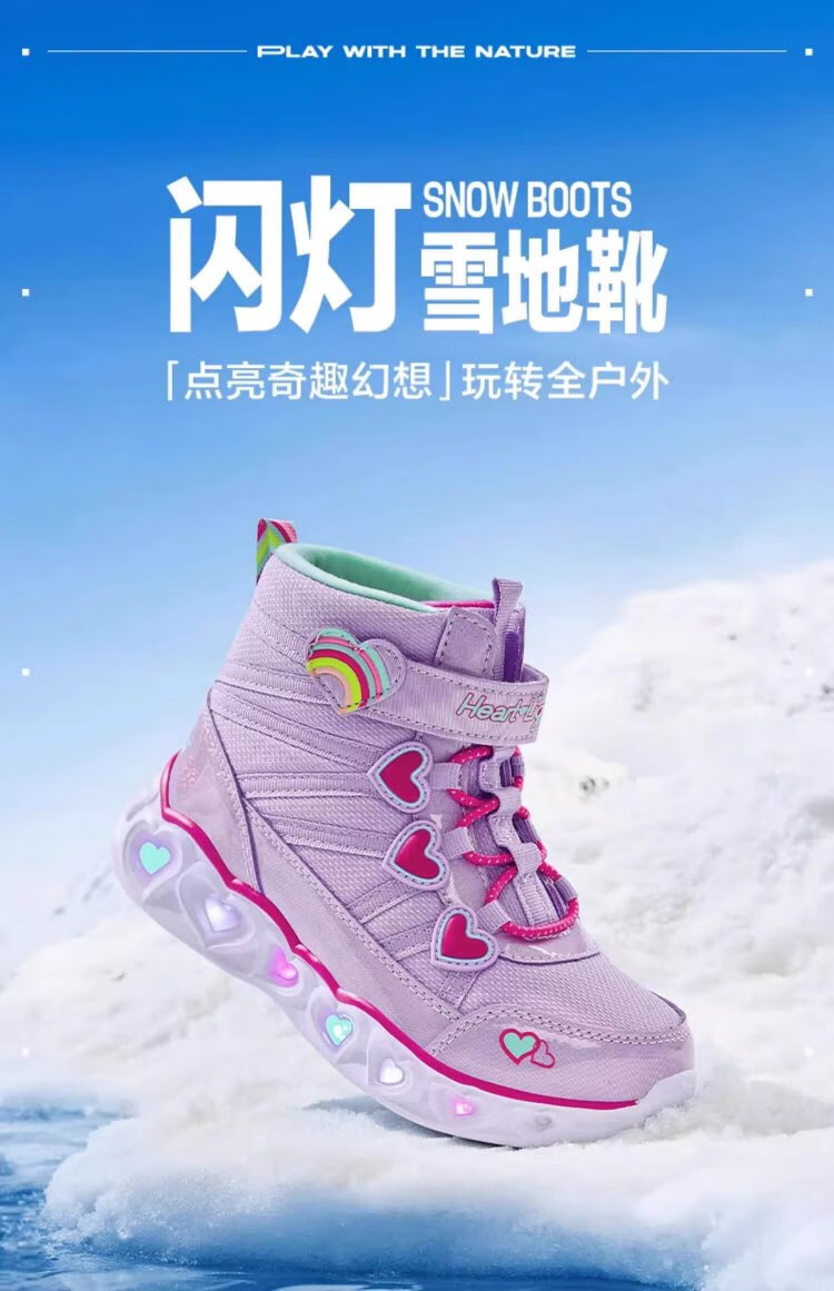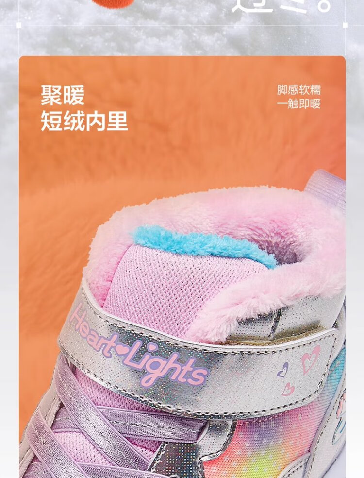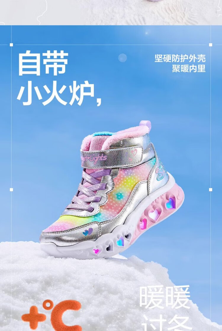 Skechers children's snow boots autumn and winter warm sports shoes girls comfortable flashing casual cotton boots 302677L