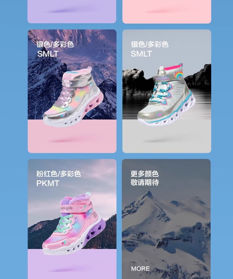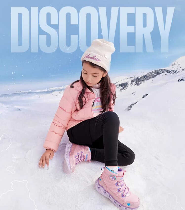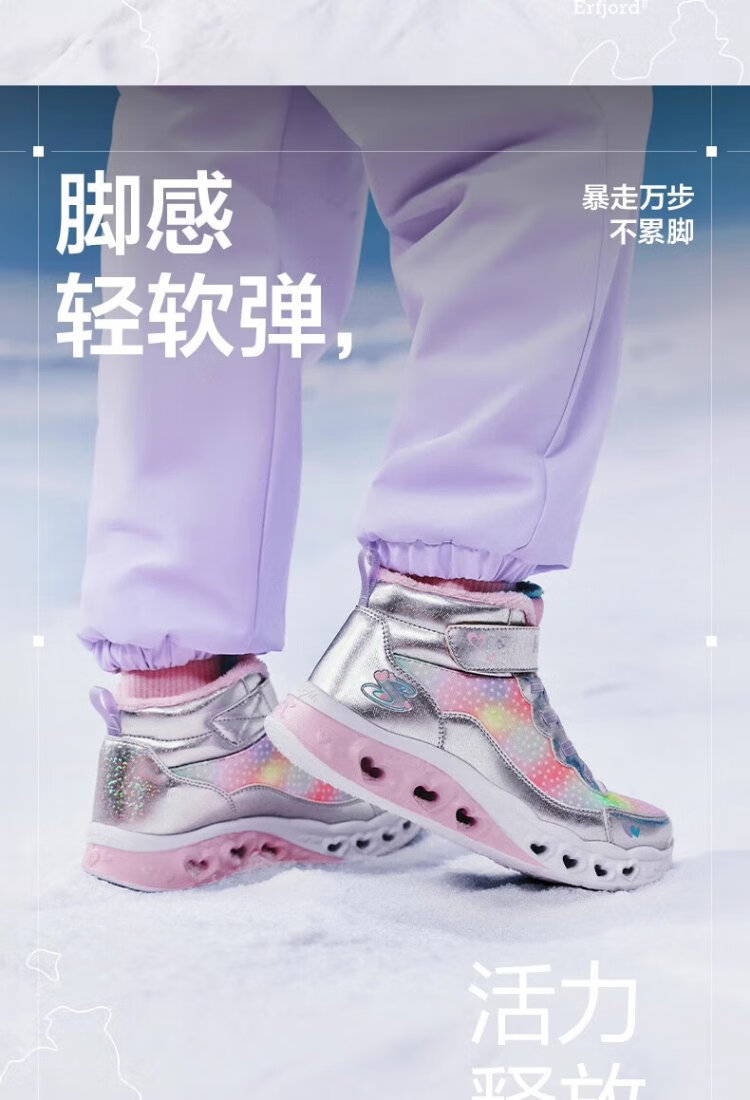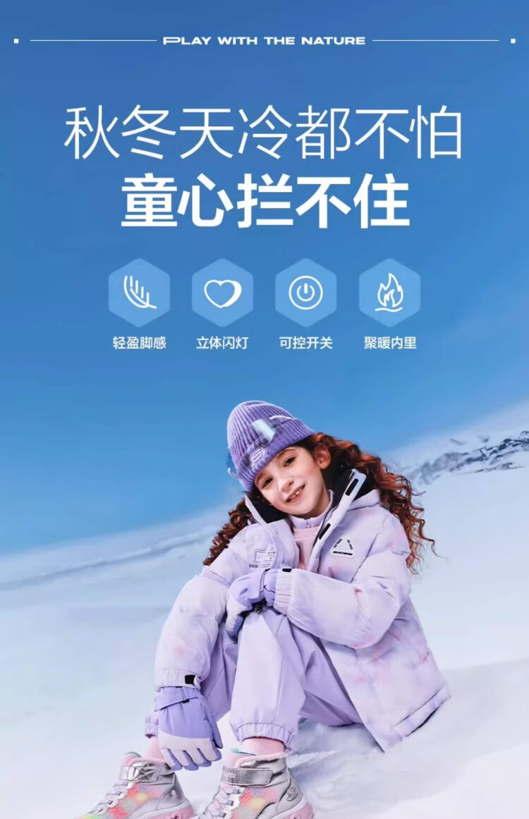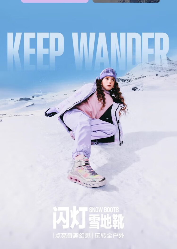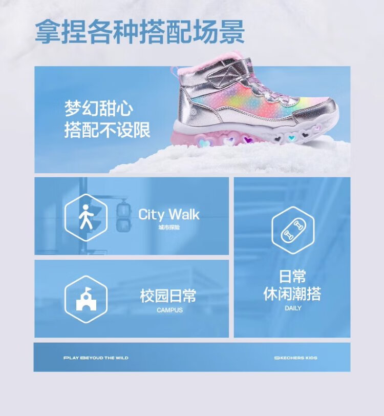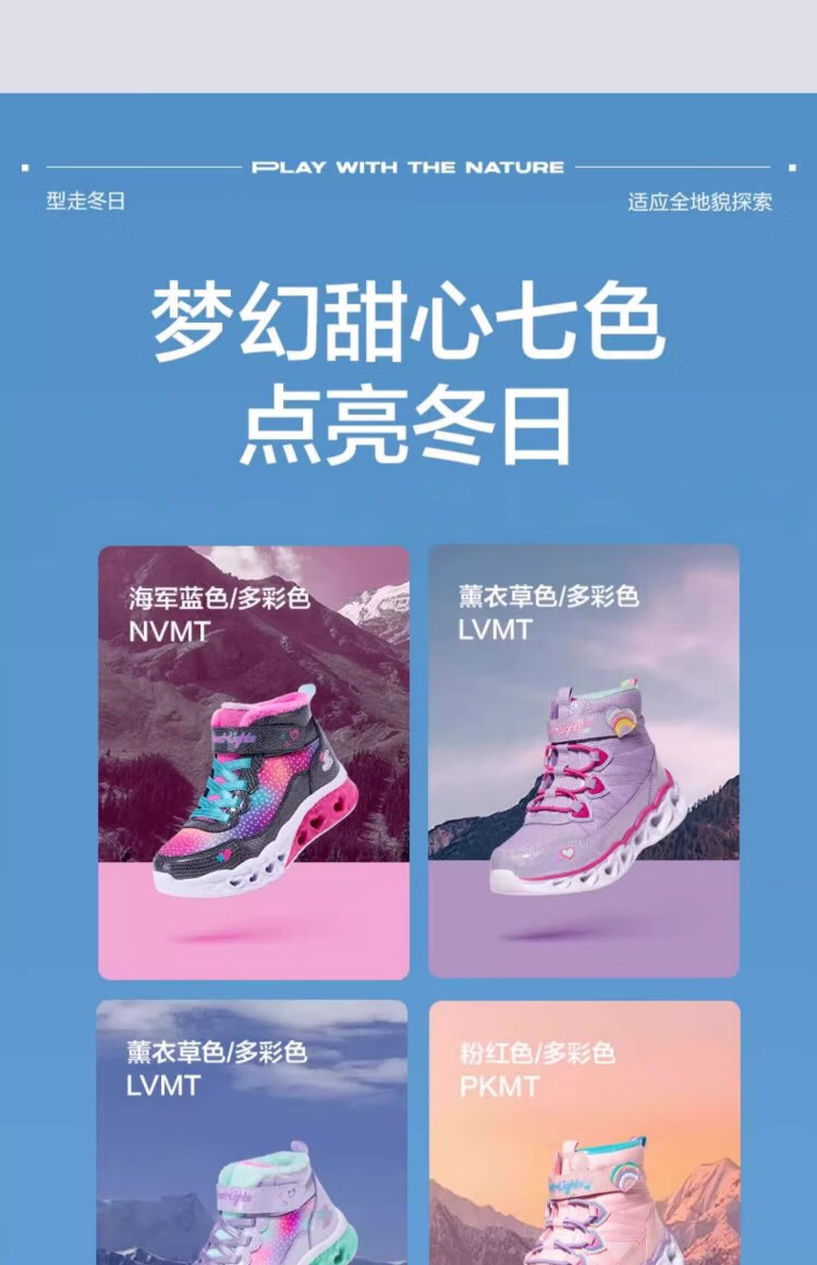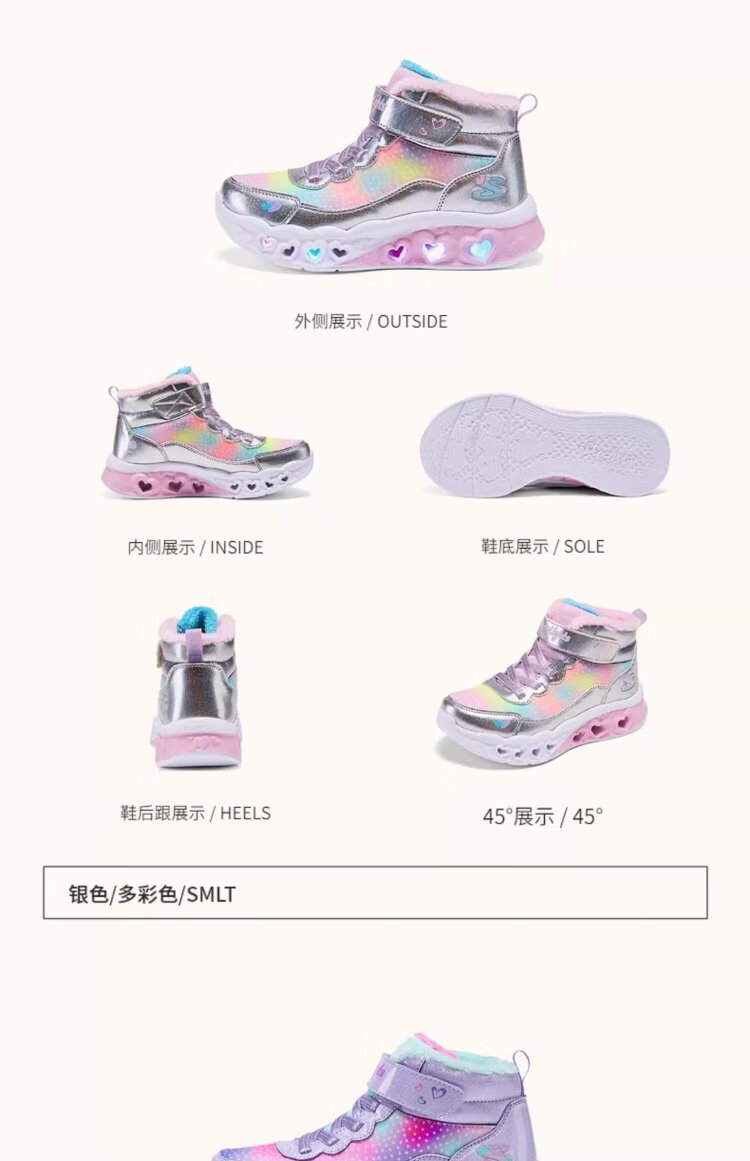 Skechers children's snow boots autumn and winter warm sports shoes girls comfortable flashing casual cotton boots 302677L