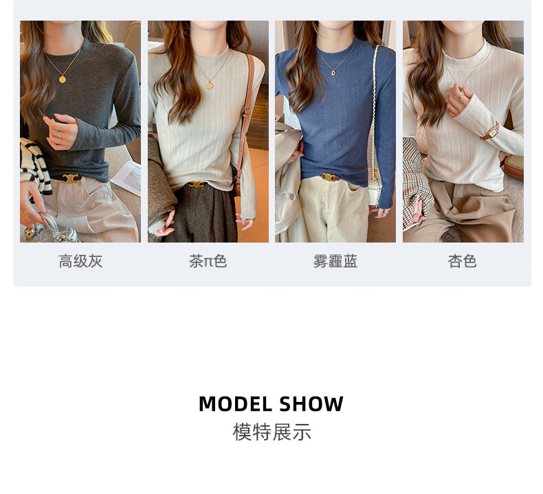 Langsha temperament bottoming shirt, new mid-collar, autumn coat, can be worn outside, brushed German velvet women's long-sleeved top