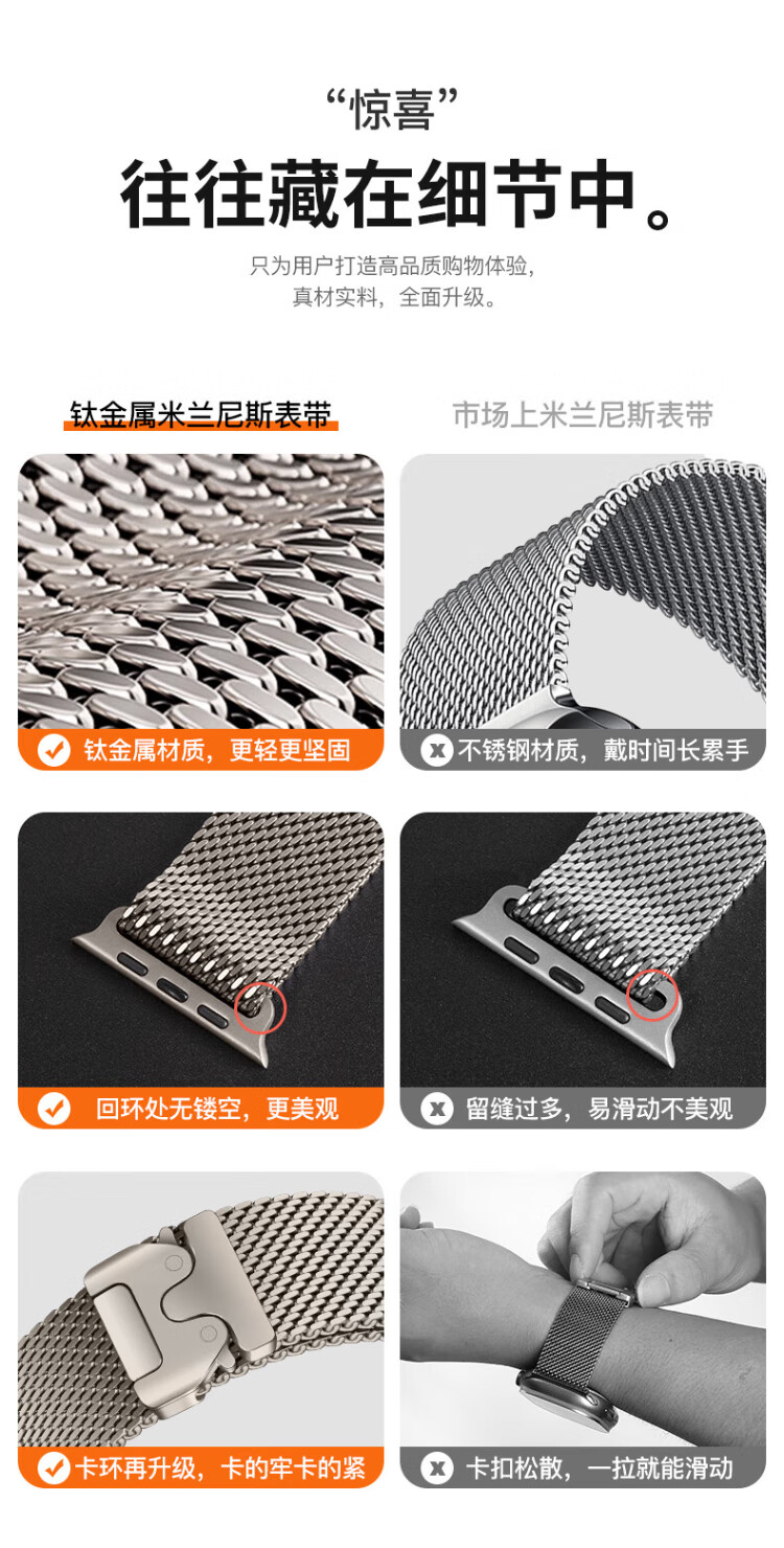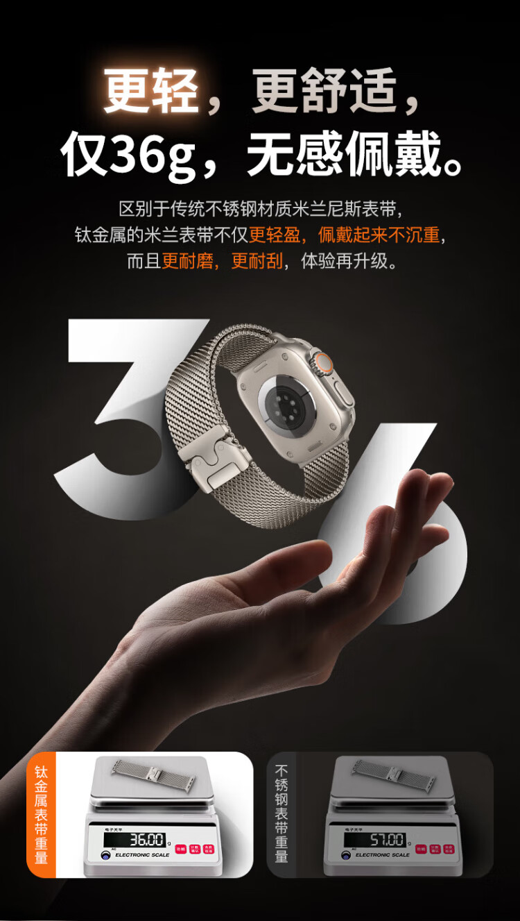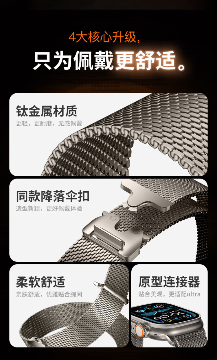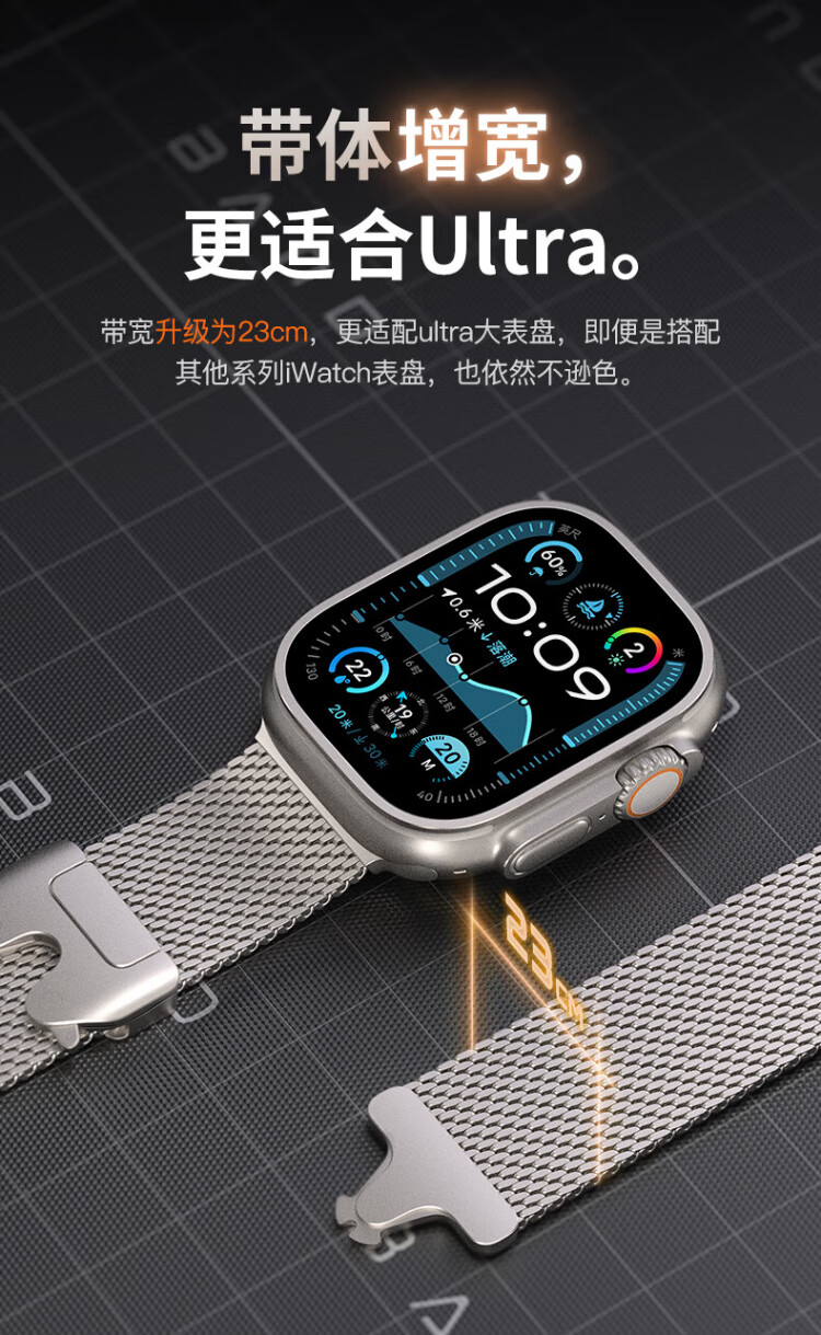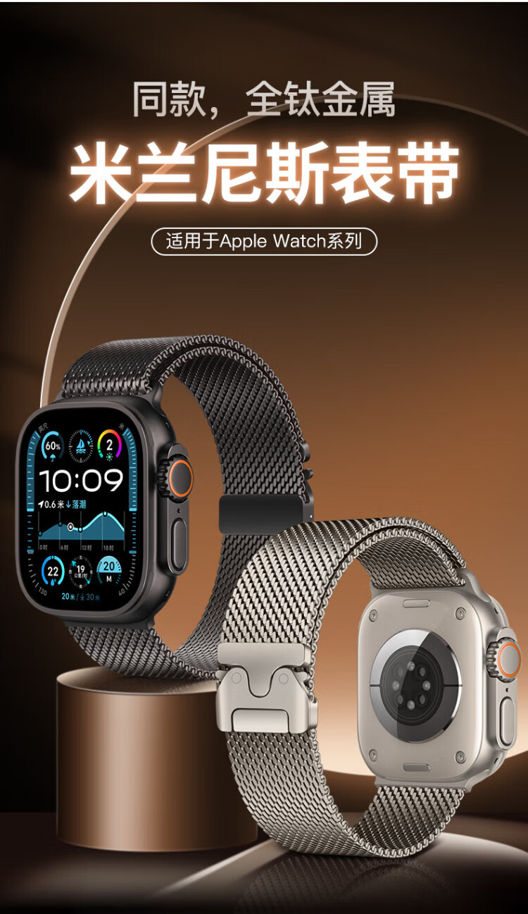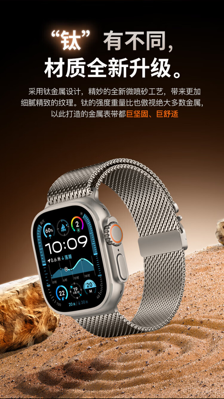 BHO is suitable for Apple watch strap Apple Watch S11/Ultra3 titanium Milanese strap iwach S10/9/8/7/SE3 parachute buckle strap