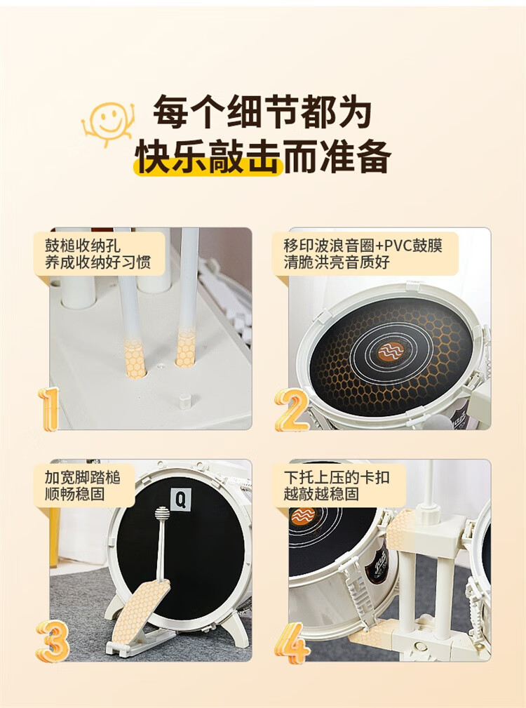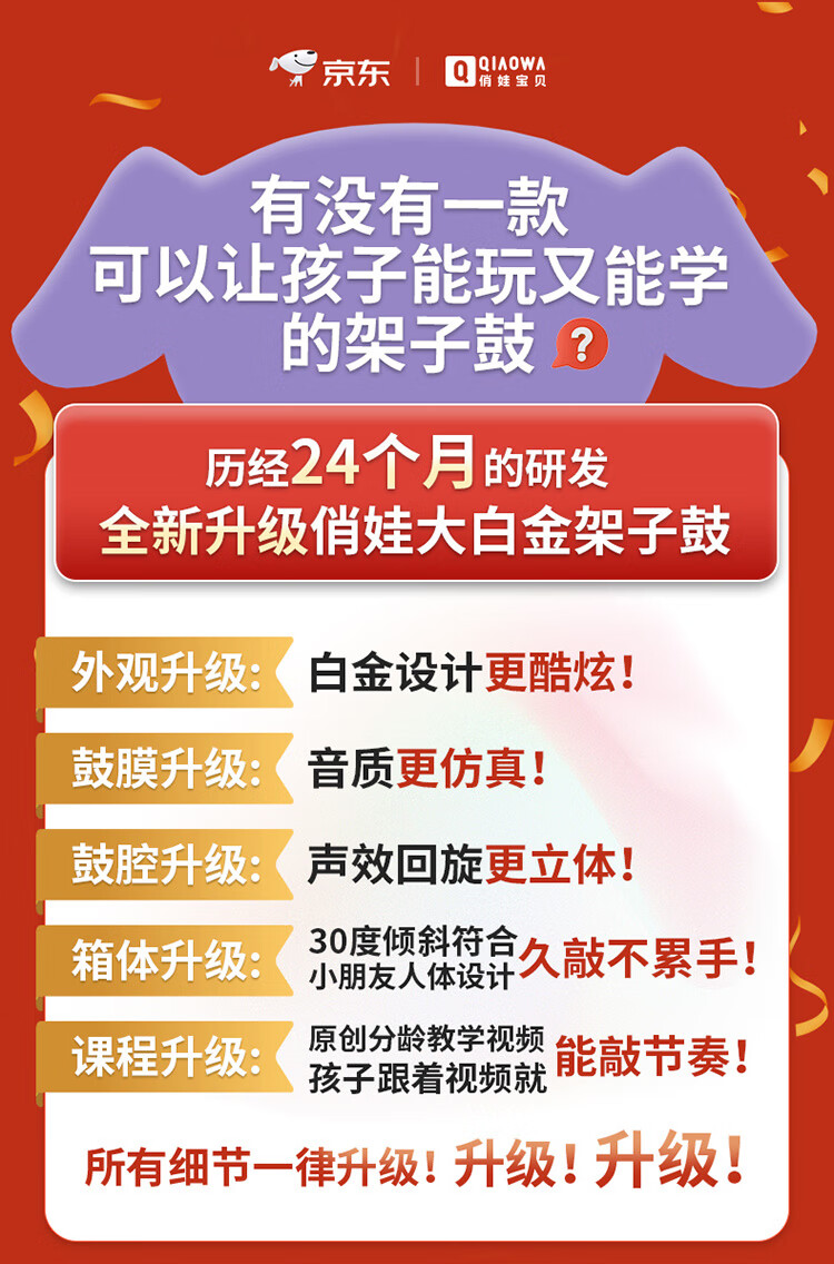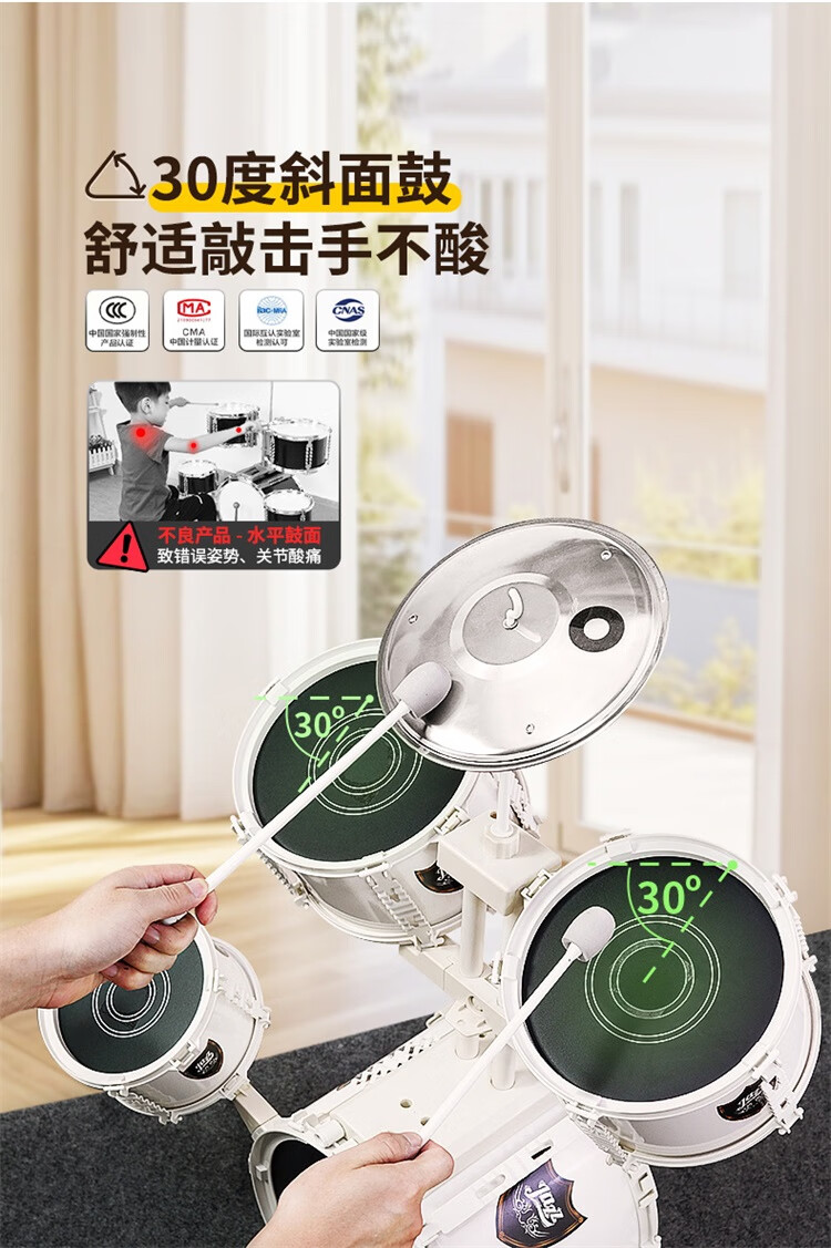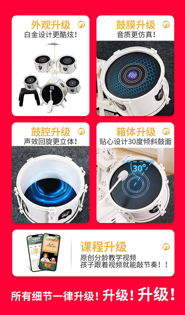 QIAO WA BAO BEI large platinum drum set children's toy for beginners 3-6 years old entry-level jazz drum drumming instrument birthday gift Christmas