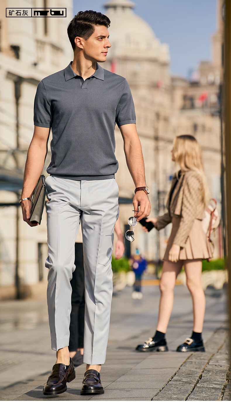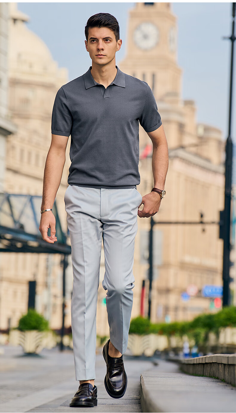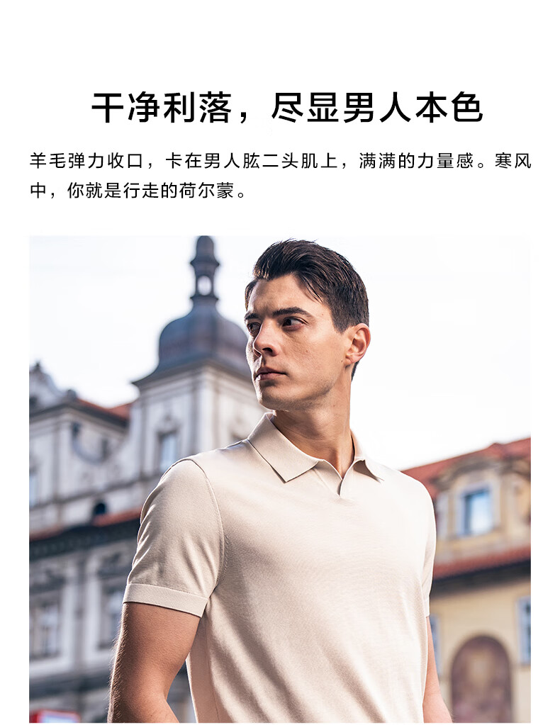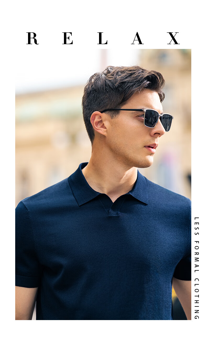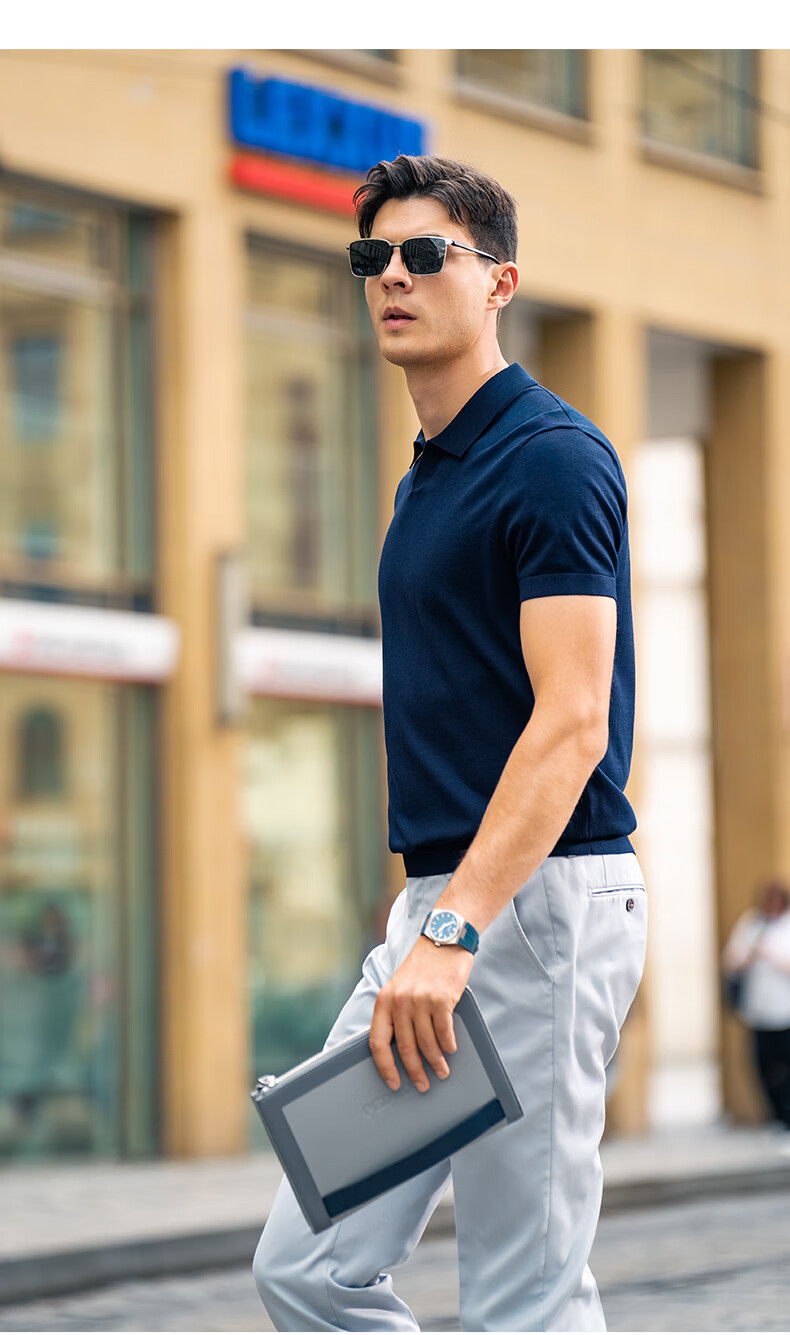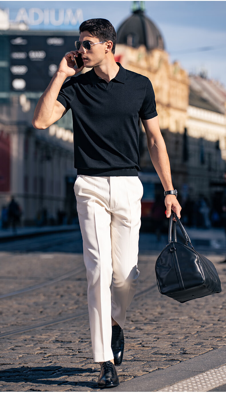 布先生翻领短袖羊毛t恤男时尚高级可机洗针织衫上衣 钢琴黑 L/175