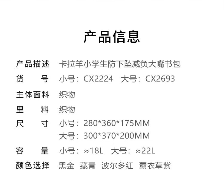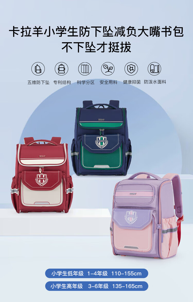 Kara Sheep primary school bag 4-6 grade children's decompression shoulder pads ultra-light large capacity boys and girls backpack backpack