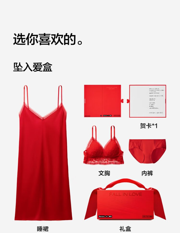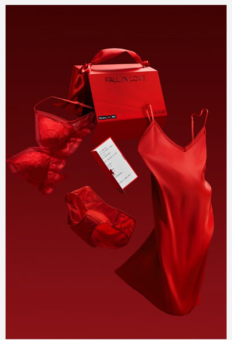 Jiao Nei Falling in Love Box 303A Sexy Lace Bra Women's Red Underwear Home Clothes Pajamas Skirt 3-piece Gift Box