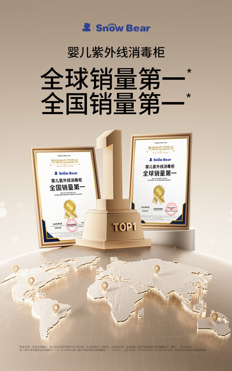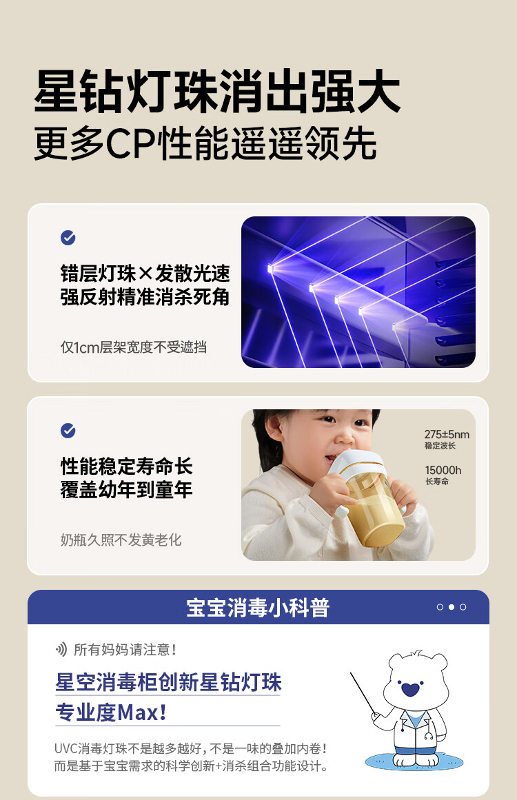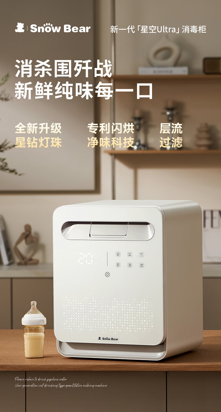 Little White Bear SnowBear disinfection cabinet baby bottle disinfection belt dryer all-in-one machine UV 34 lamp beads negative ions 25L-2030