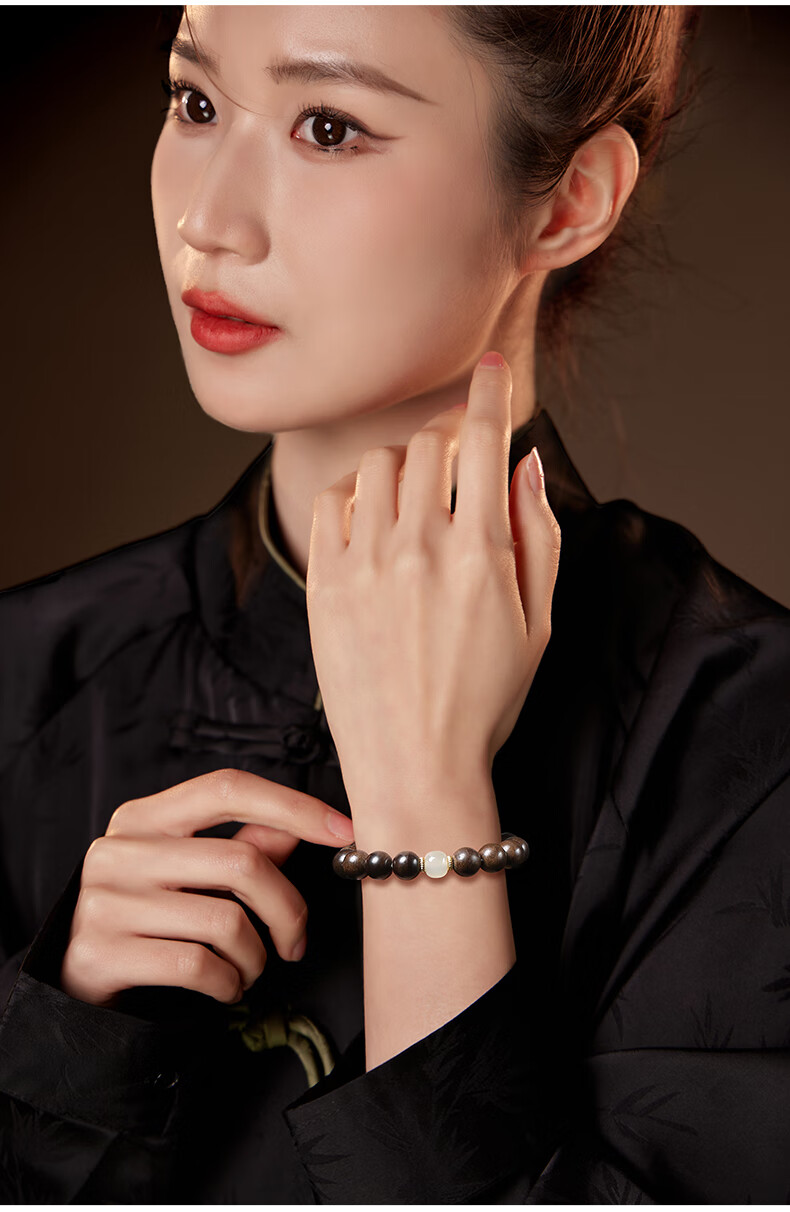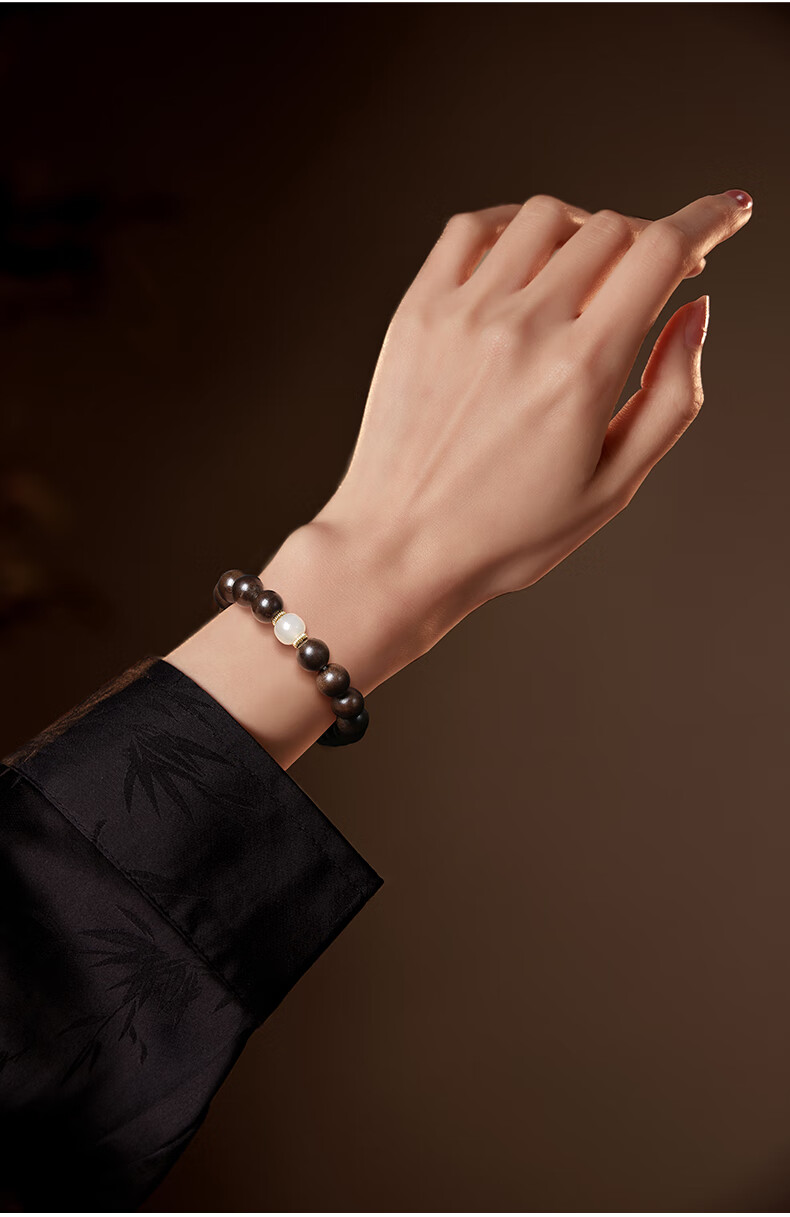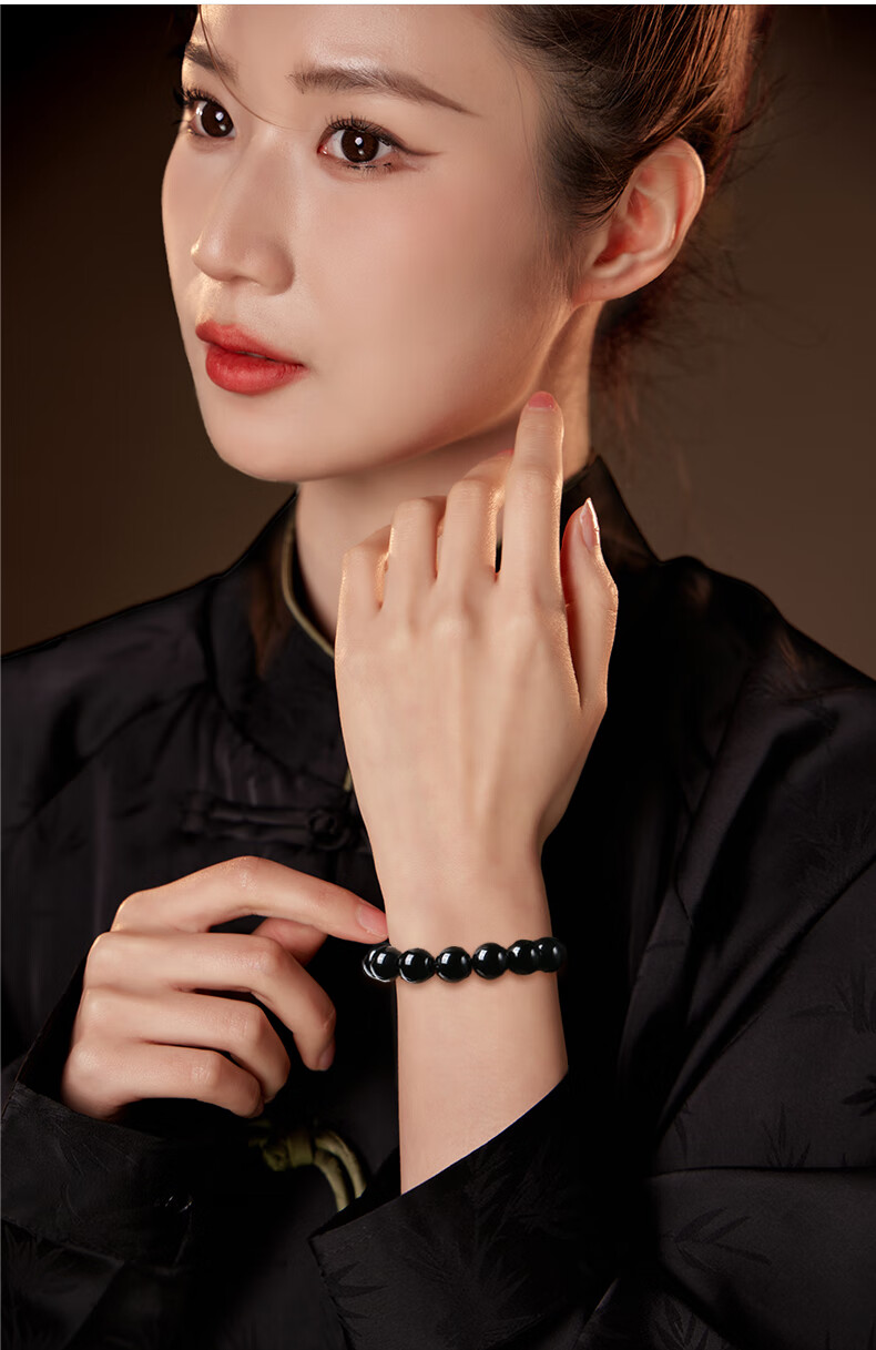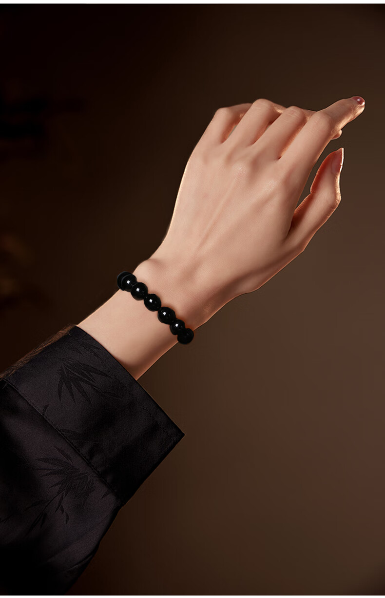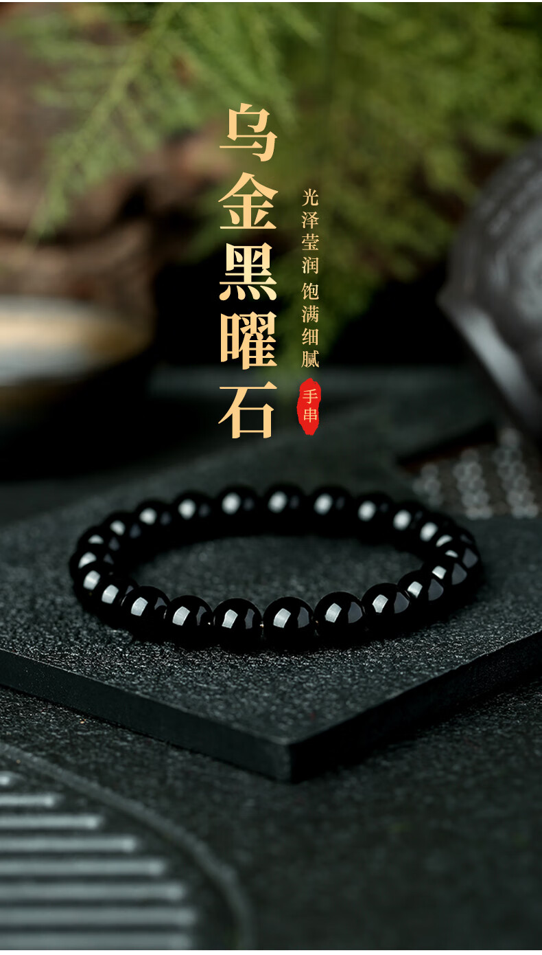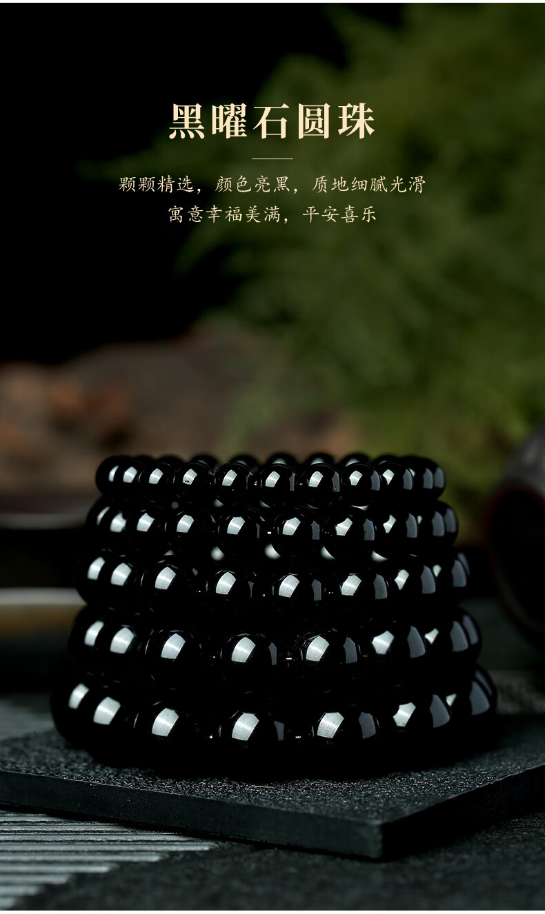 Putuo Mountain Bracelet en obsidienne en or noir pour homme, bracelet de protection hydratant pour homme et femme, amulette de couple, cadeau d'anniversaire