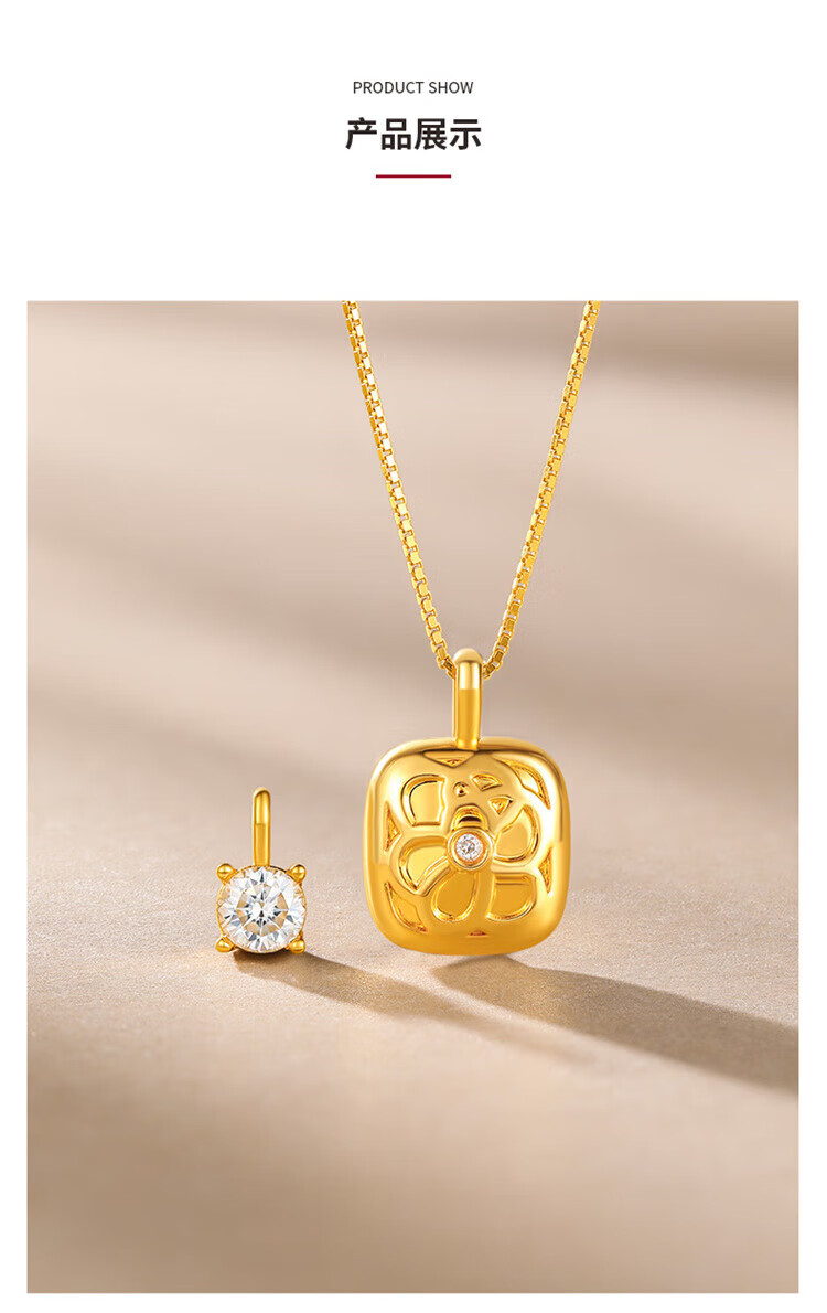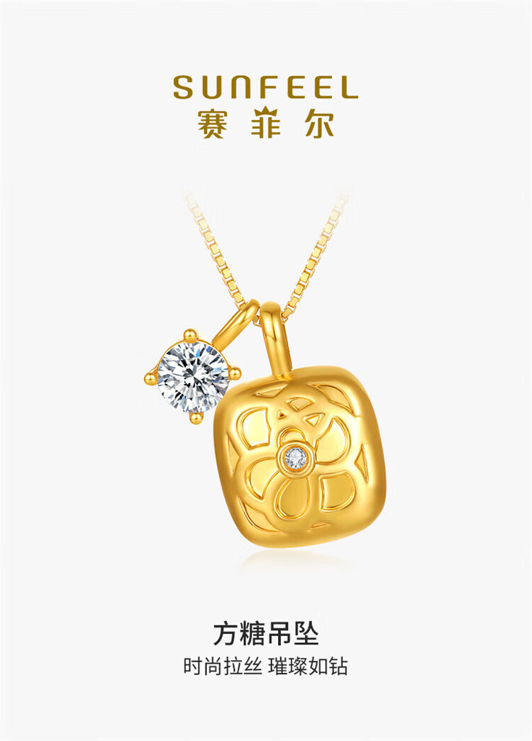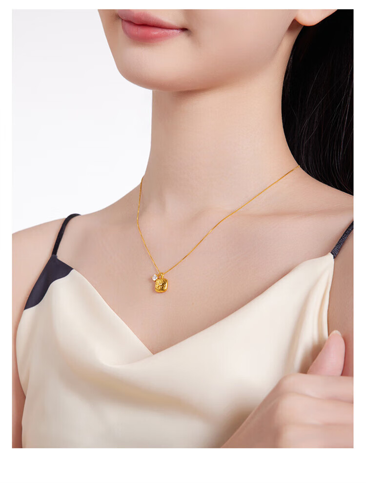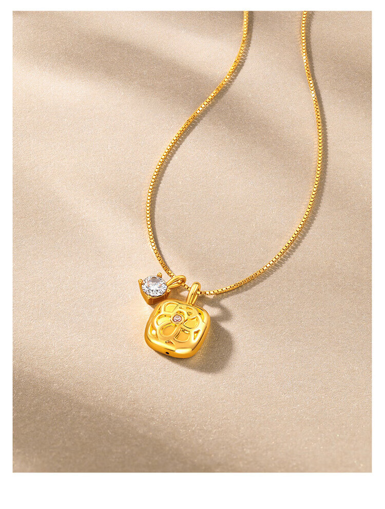 Saphire 18K gold pendant for girlfriend as a birthday gift, gold-plated silver chain, moissanite small sugar cube, single